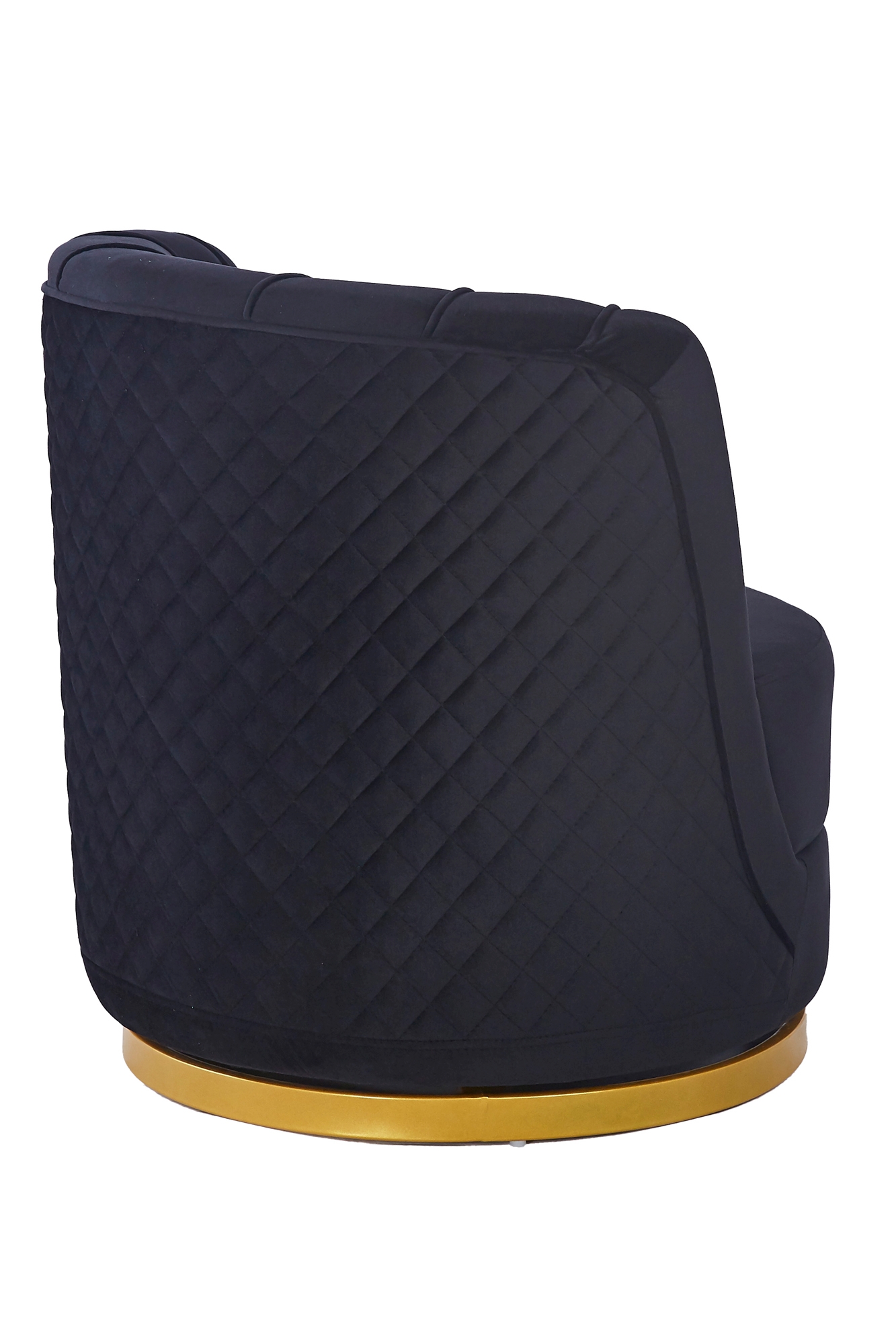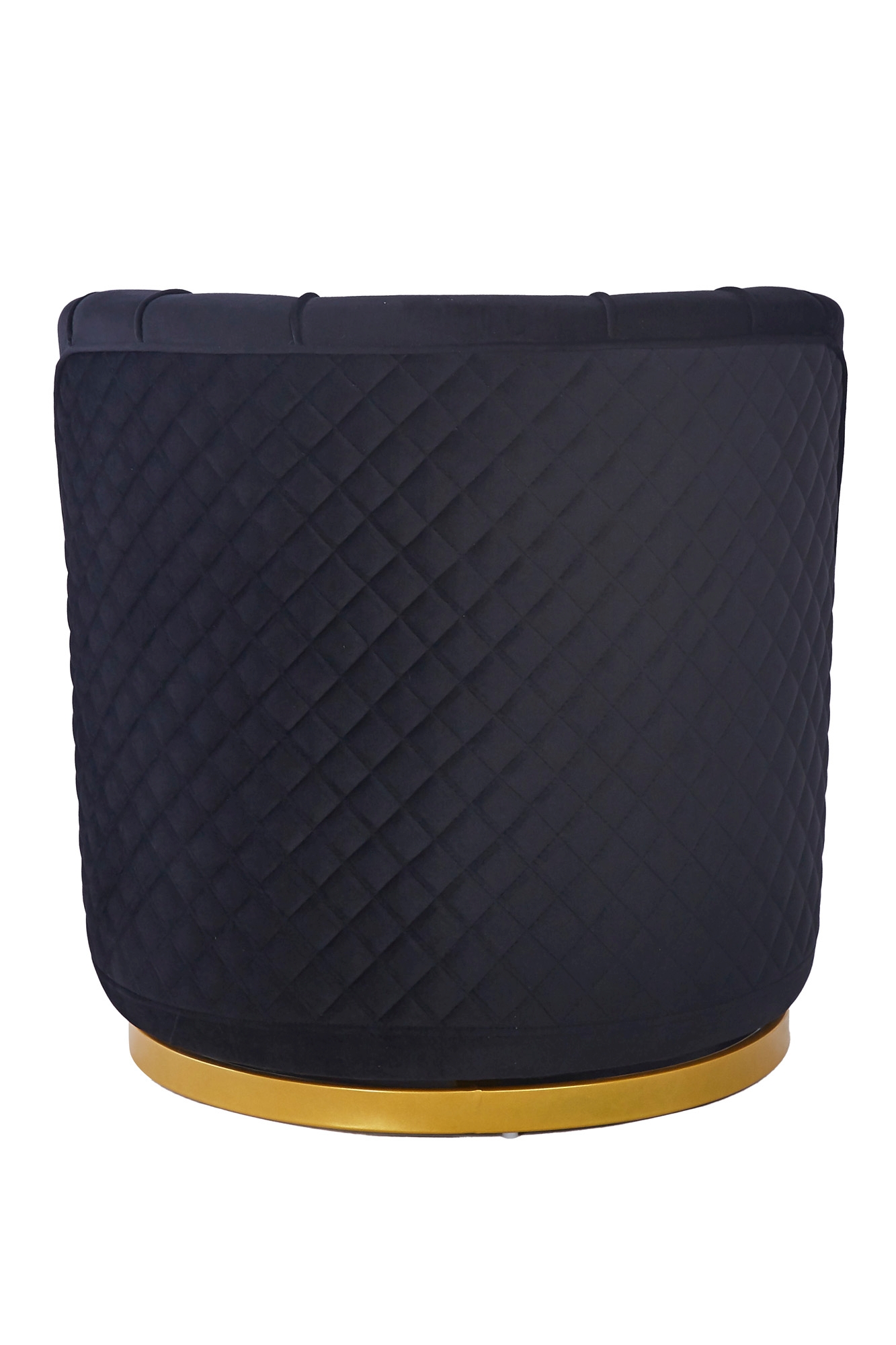 Extravaganter Drehsessel im modernen Design – Der Sessel mit Rautensteppung auf der Rückseite und goldfarbenem Metallsockel mit Drehfunktion wird garantiert zum Hingucker im Wohnbereich. Der schimmernde Samtbezug und vertikale Steppnähte im Rücken runden das glamouröse Bild gekonnt ab. Das üppig gepolsterte Sitzkissen sorgt für optimalen Sitzkomfort. Egal ob in der Leseecke, am Schreibtisch oder an der Schminkkommode – Der 360°-Drehsessel wird zum edlen Designkompagnon in Ihrem Zuhause. Erhältlich ist das Sitzmöbel in 5 edlen Farbvariationen.