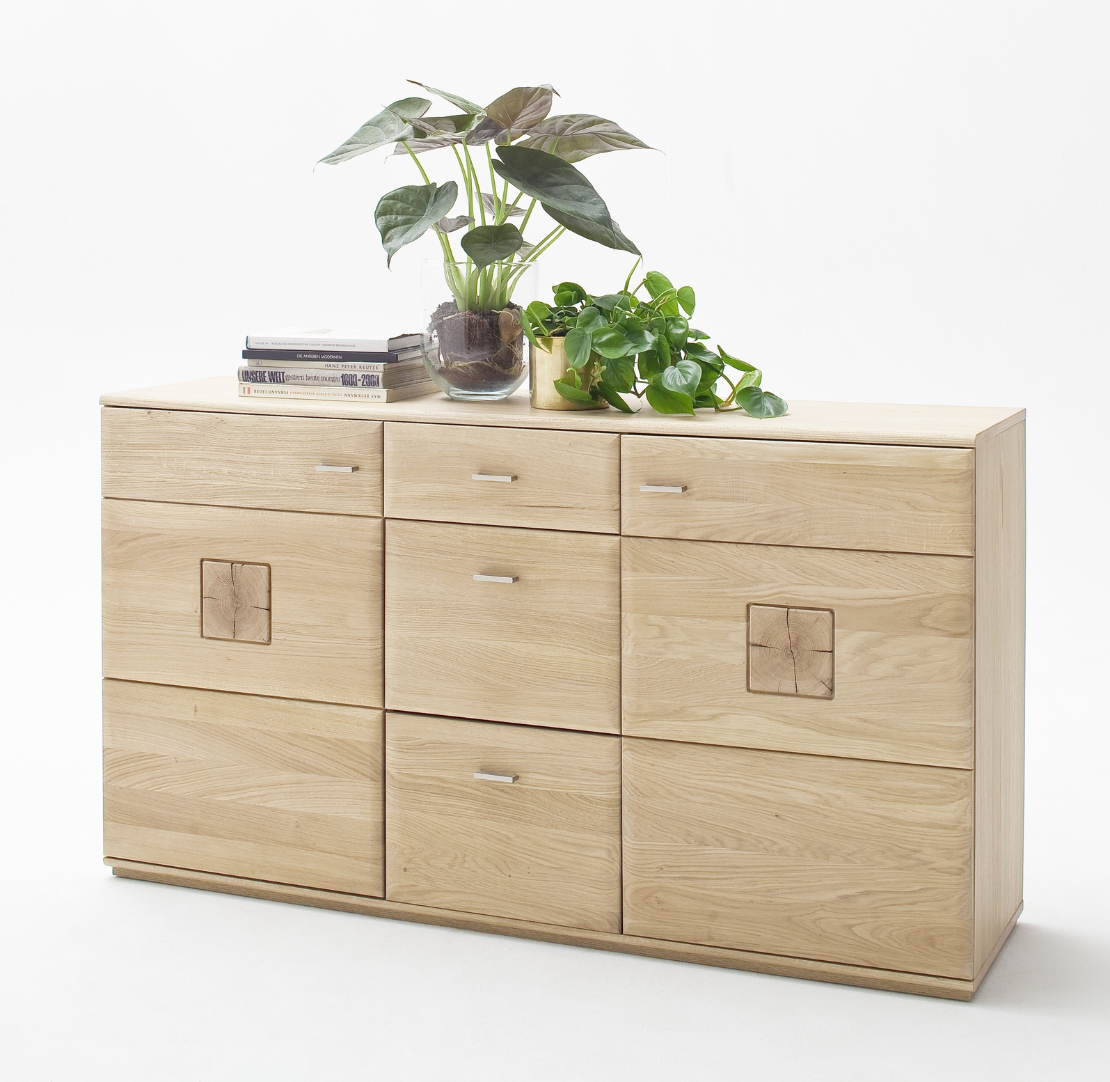 Front: Eiche Bianco massiv (Kroatien) DL (Durchgehende Lamellen) mit Hirnholz Applikationen, Oberfläche geölt