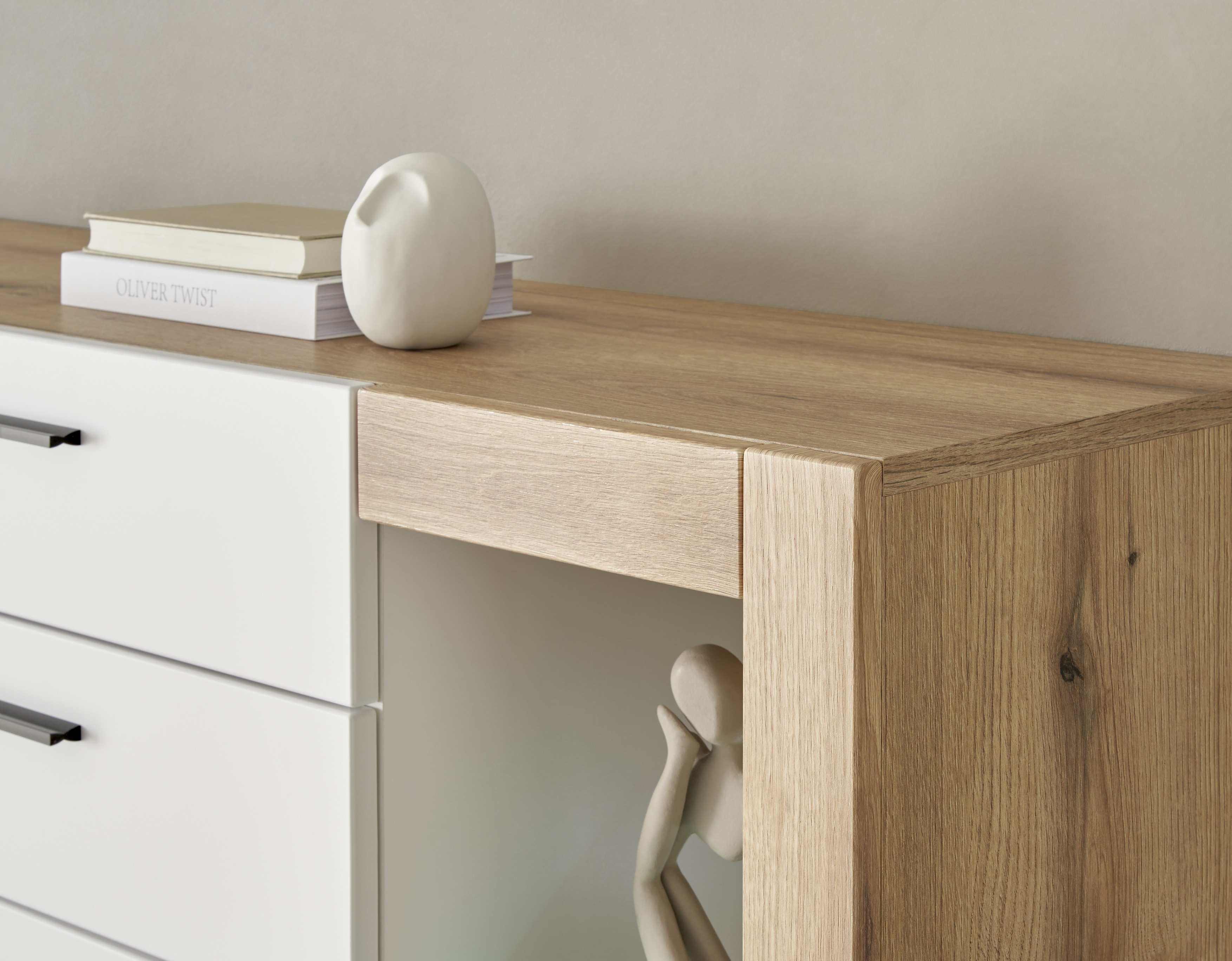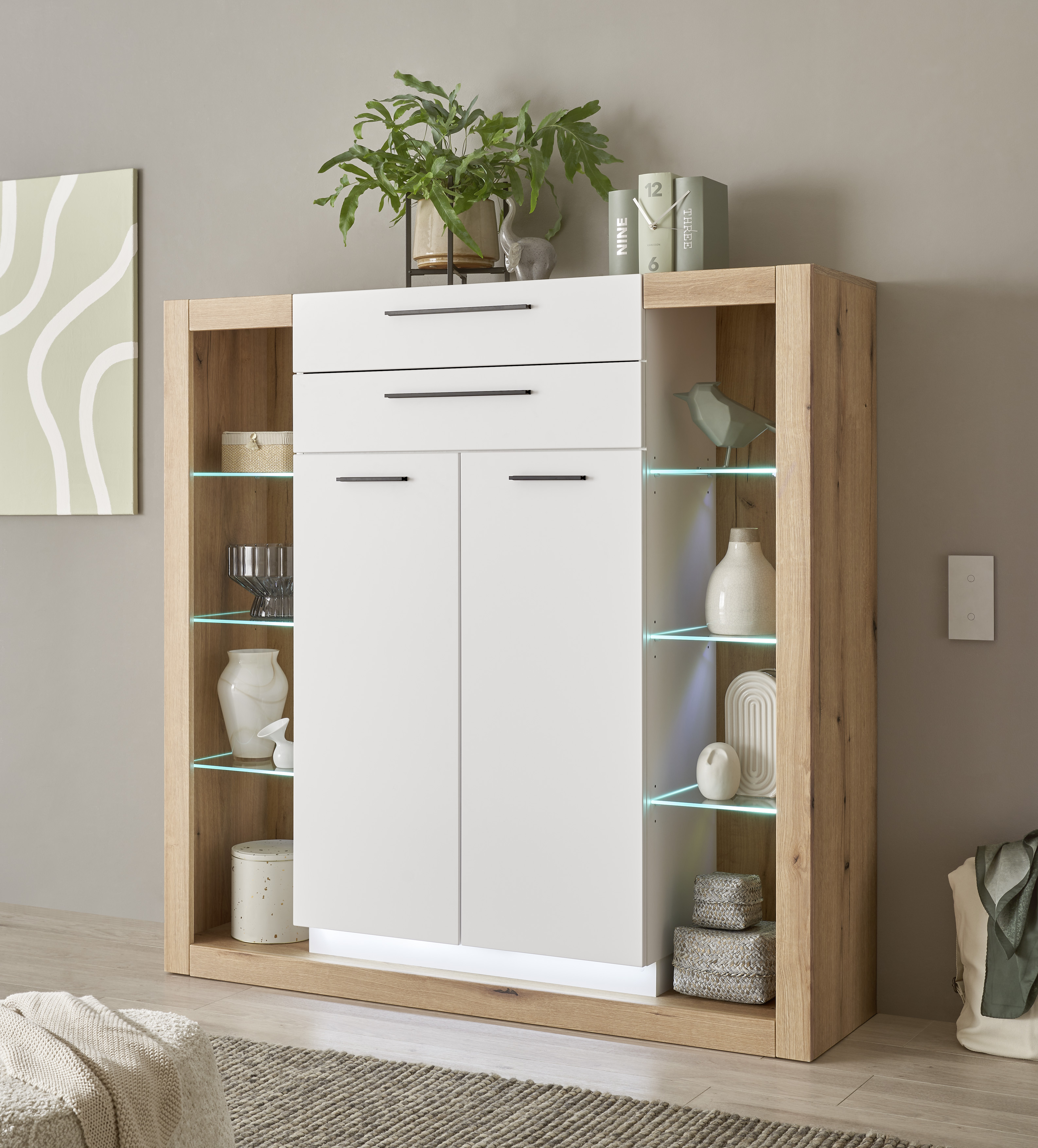 | Ausstattung Kommoden Phono Büro Regal: | Offene Fächer, Schublade(n), Türe(n) | ||