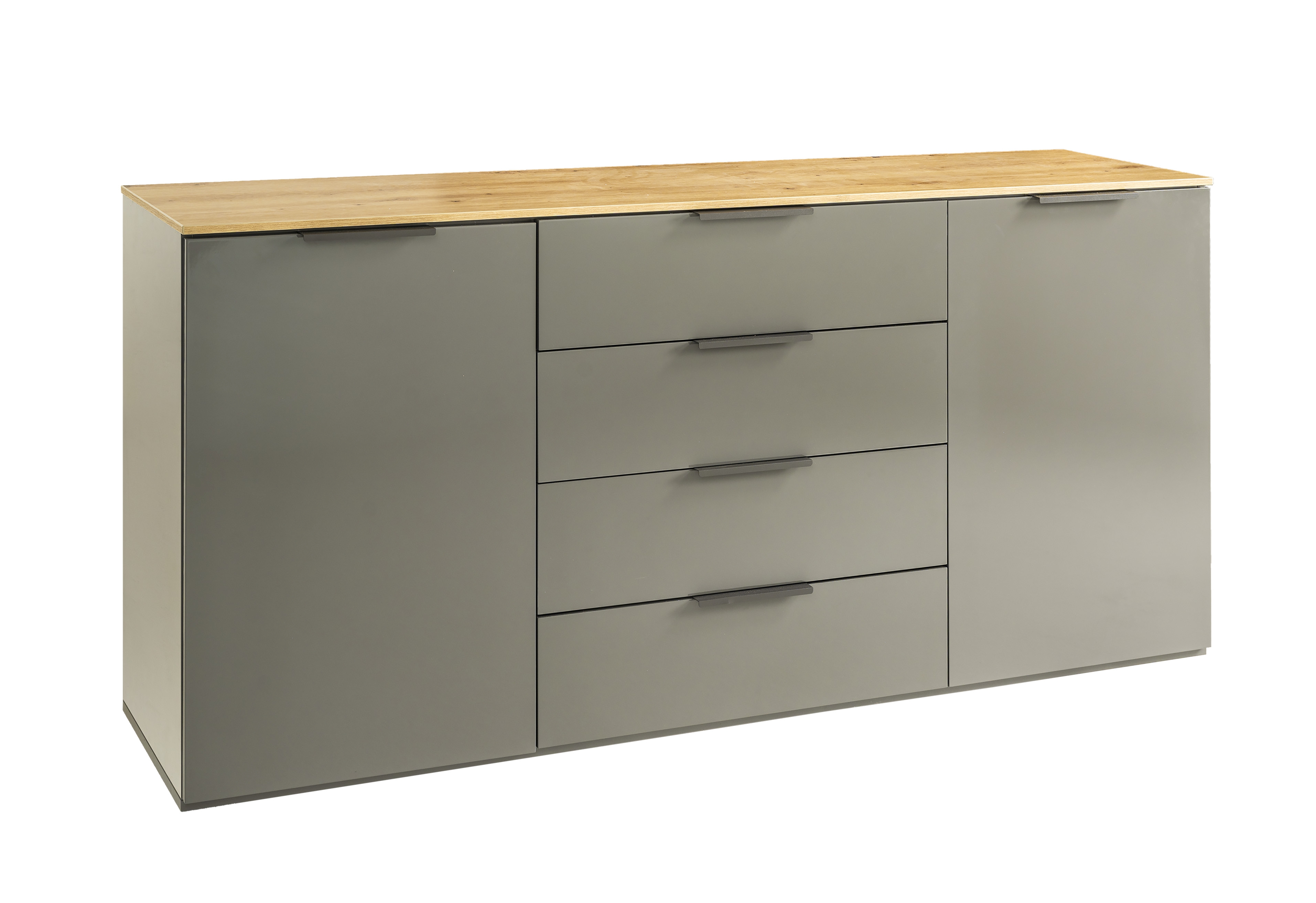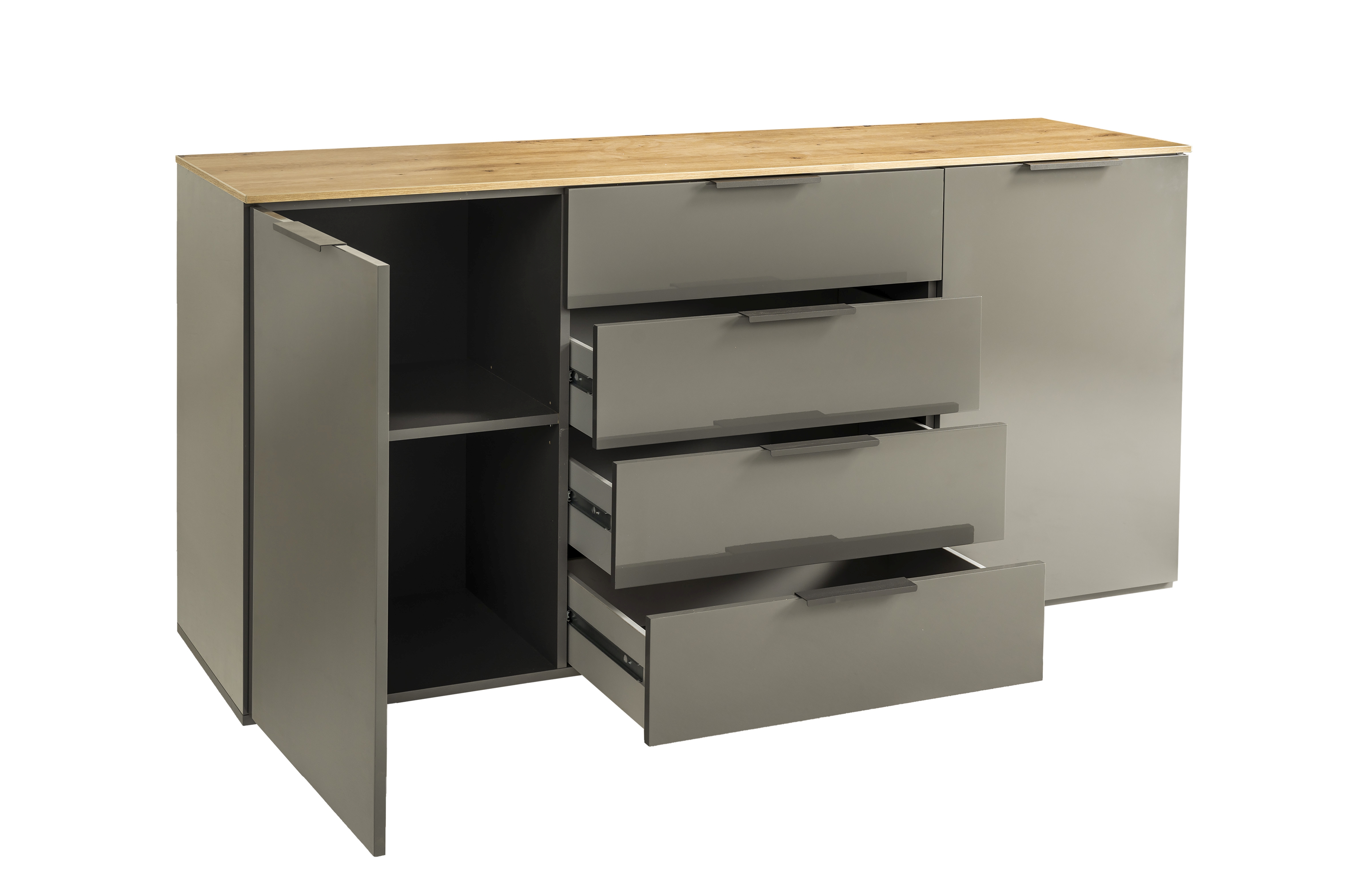 Korpus und Front: Artisan Eiche Holznachbildung kombiniert mit Hochglanz Titanium Grau