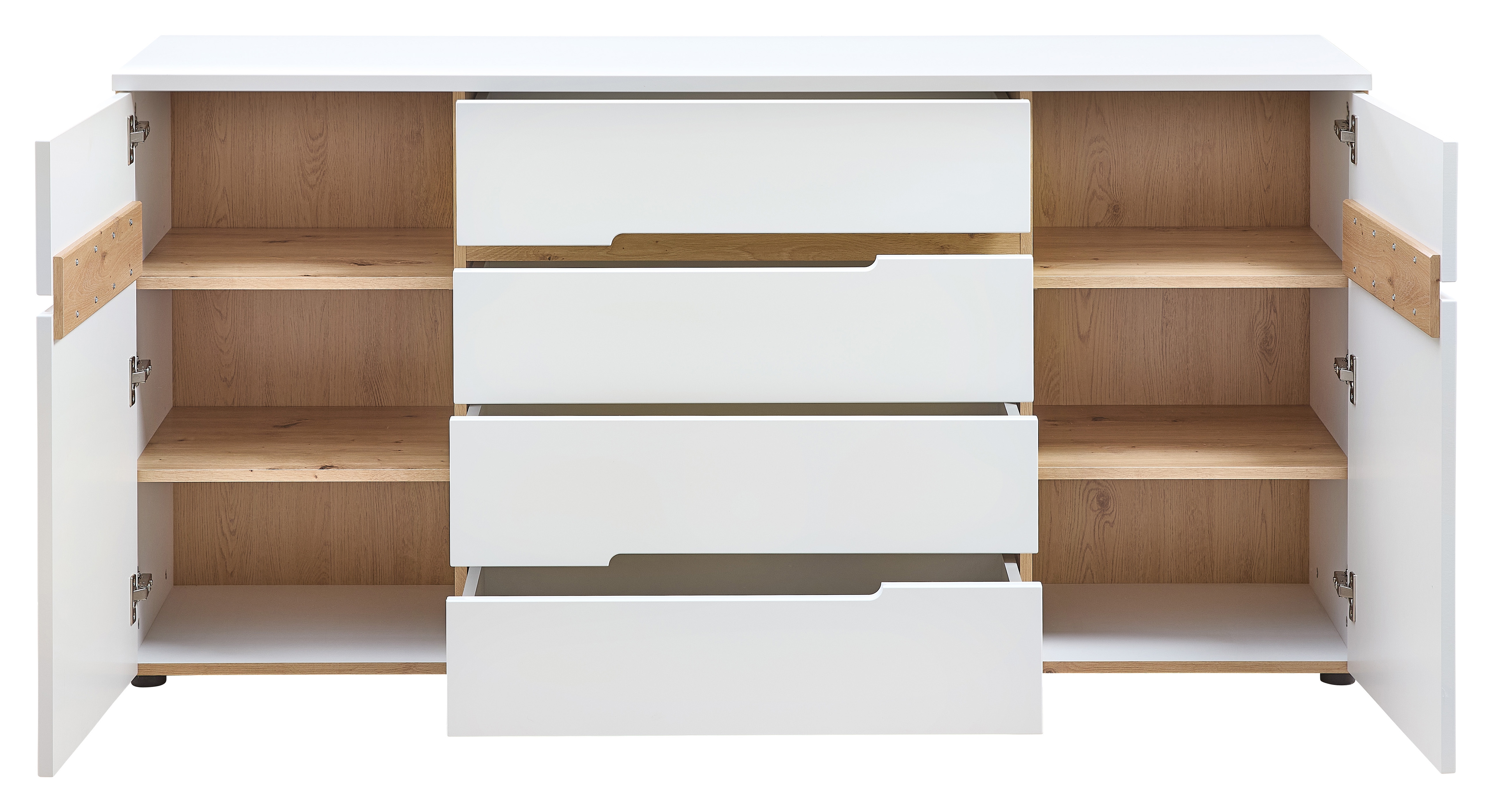 Korpus: Außen in Weiß, innen in Artisan Eiche Holznachbildung