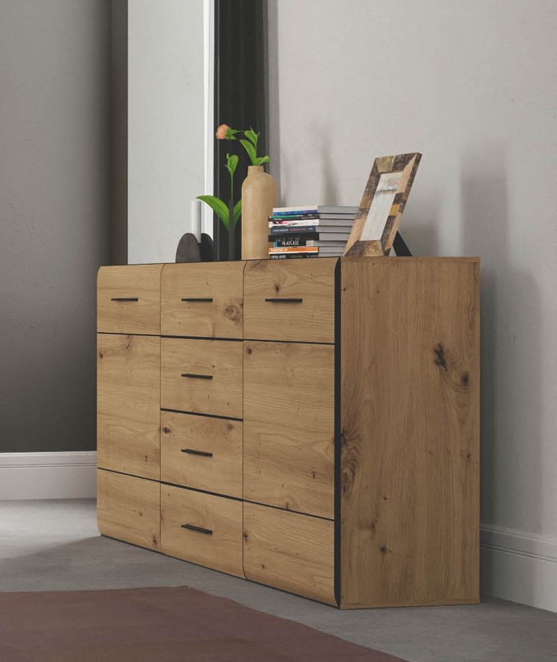 Korpus und Front: Artisan Holznachbildung kombiniert mit Absetzungen in Schwarz