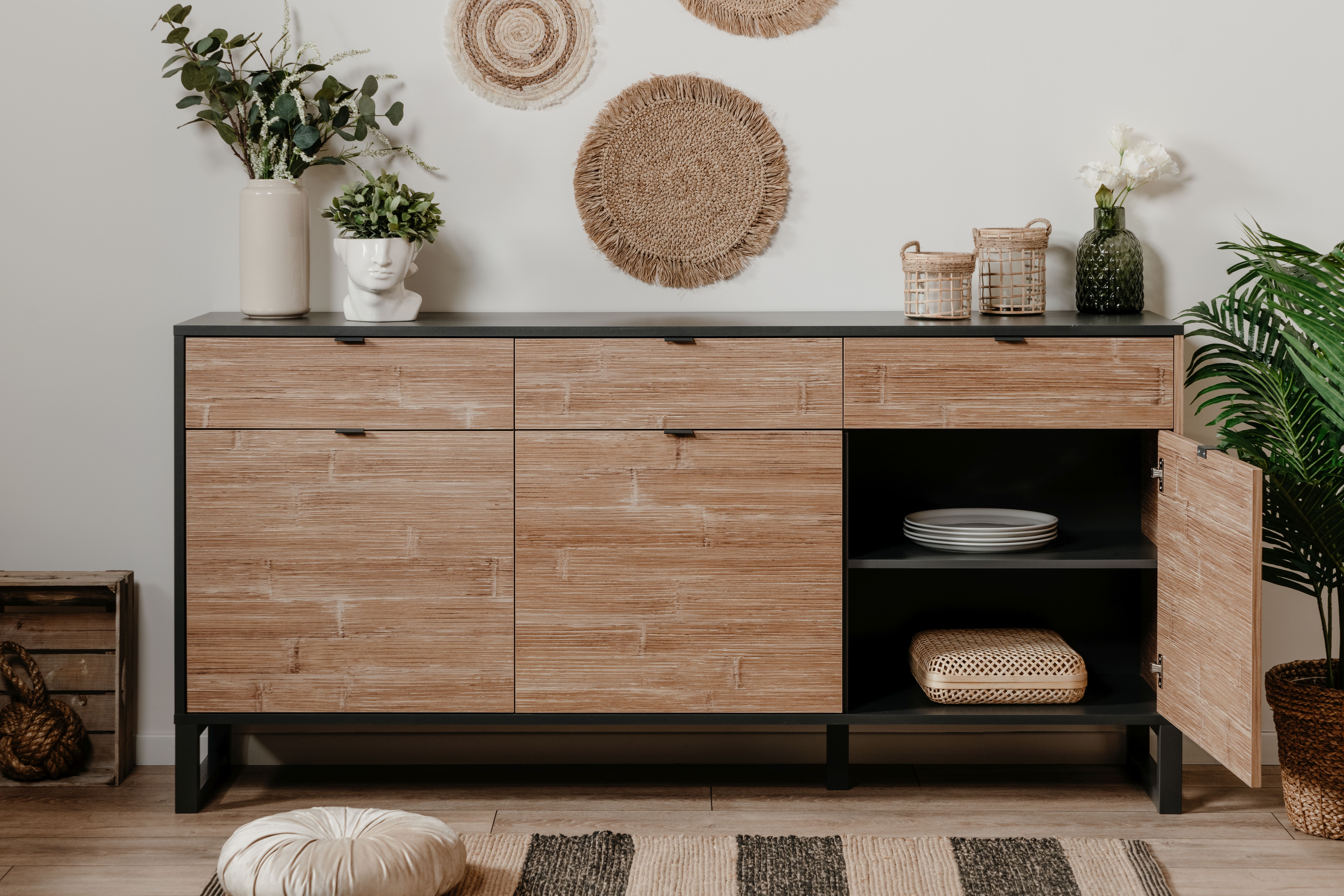 Bambus Holznachbildung kombiniert mit MDF (Mitteldichte Holzfaserplatte) in Anthrazit