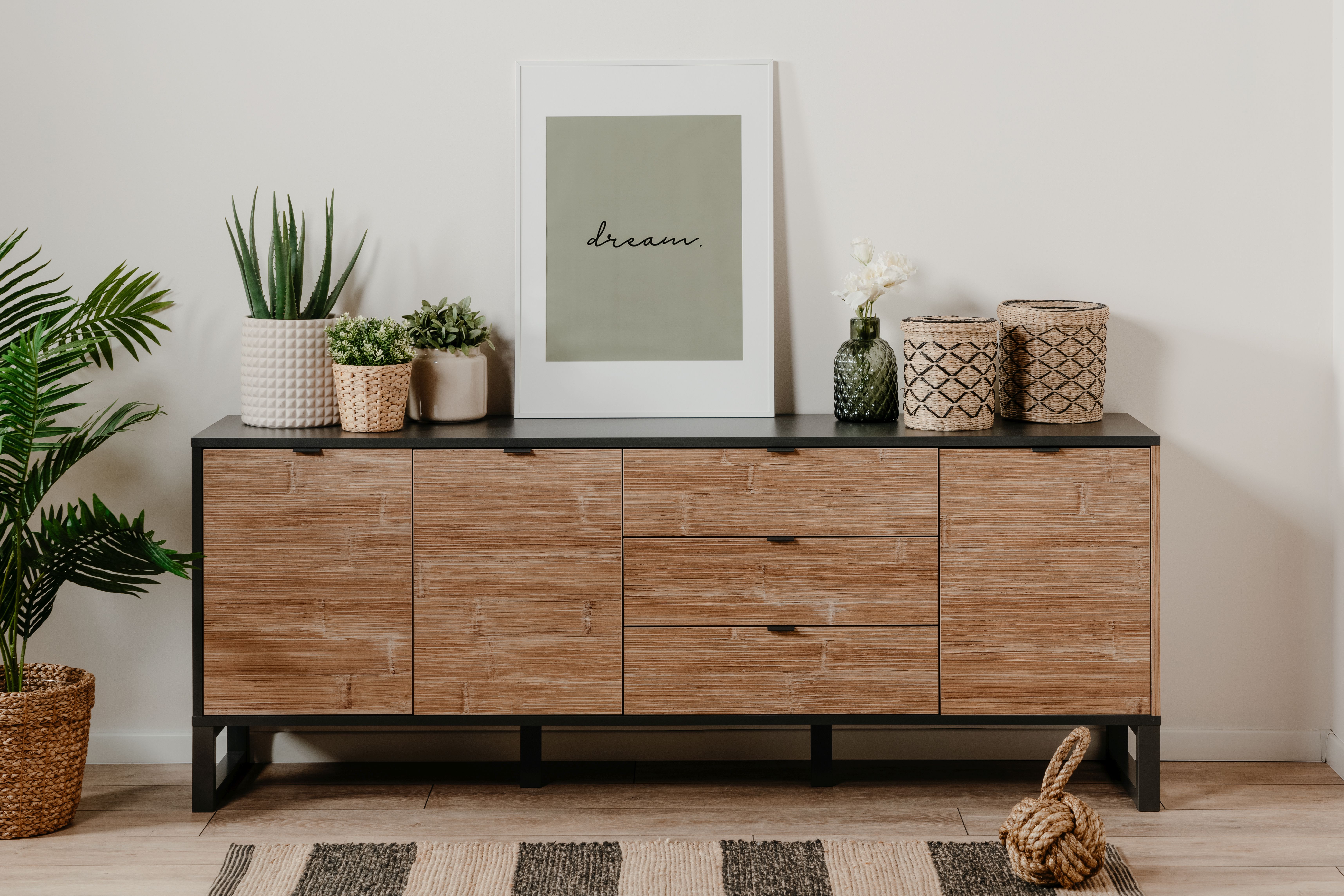 Bambus Holznachbildung kombiniert mit MDF (Mitteldichte Holzfaserplatte) in Anthrazit