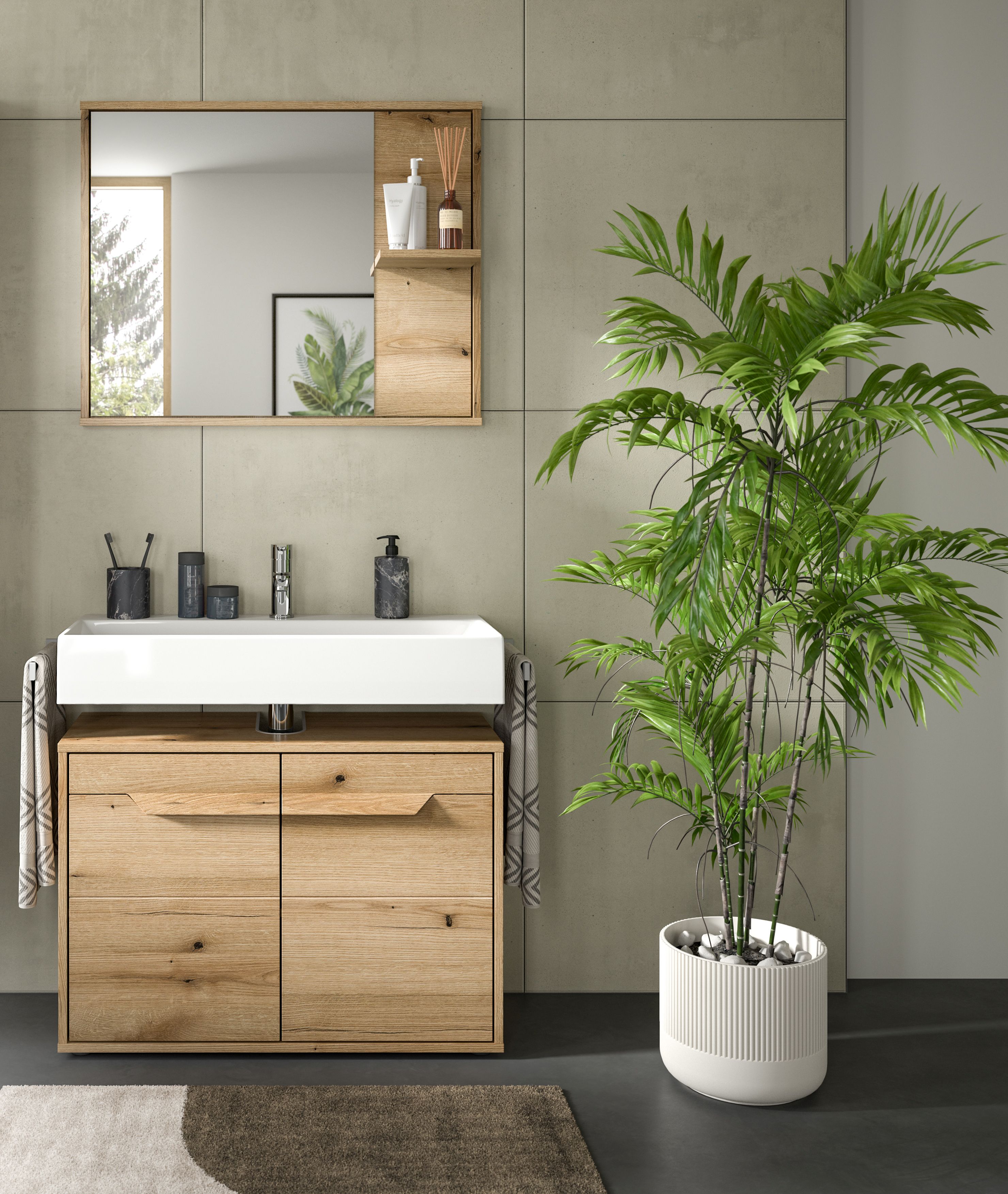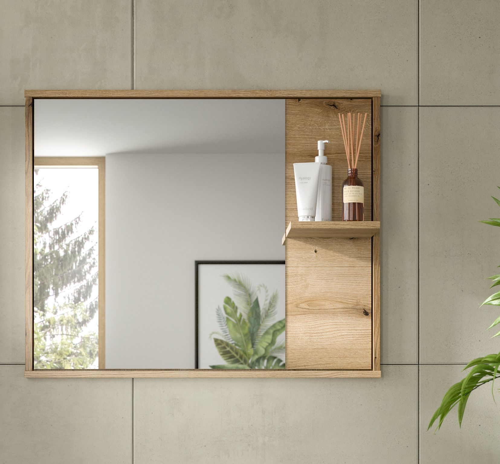 - Design/Stil: Der Spiegel in Evoke Oak Nachbildung besticht durch sein modernes und zeitgemäßes Design, das eine elegante Verbindung von Holzoptik und klaren Linien darstellt. Die warme Eiche-Nachbildung verleiht dem Raum eine gemütliche Atmosphäre und sorgt für ein harmonisches Gesamtbild.