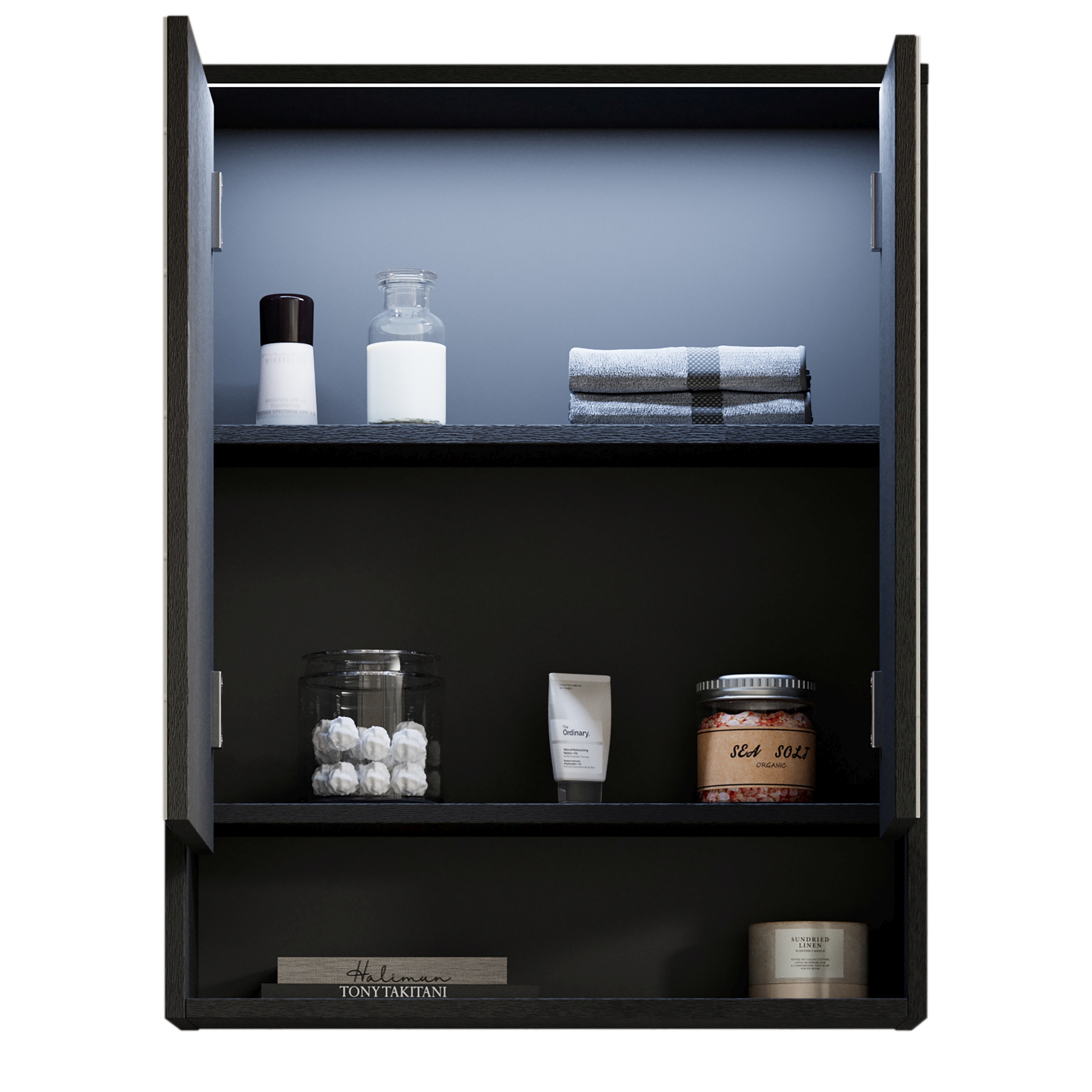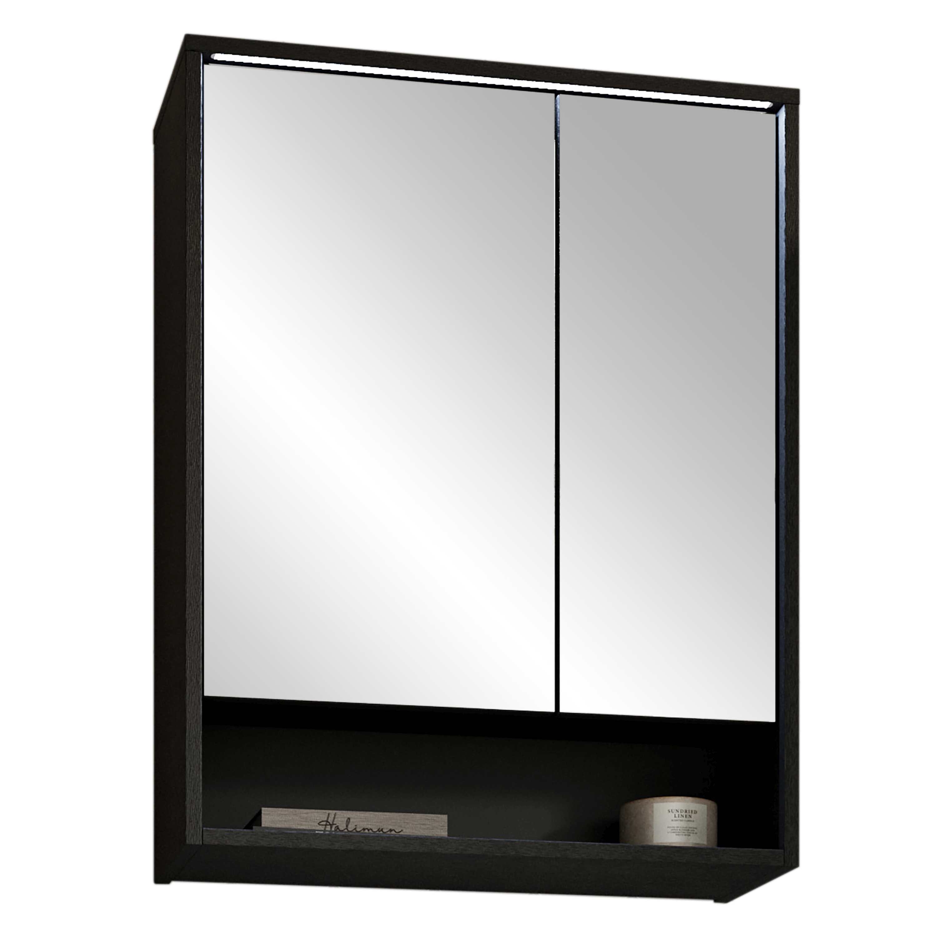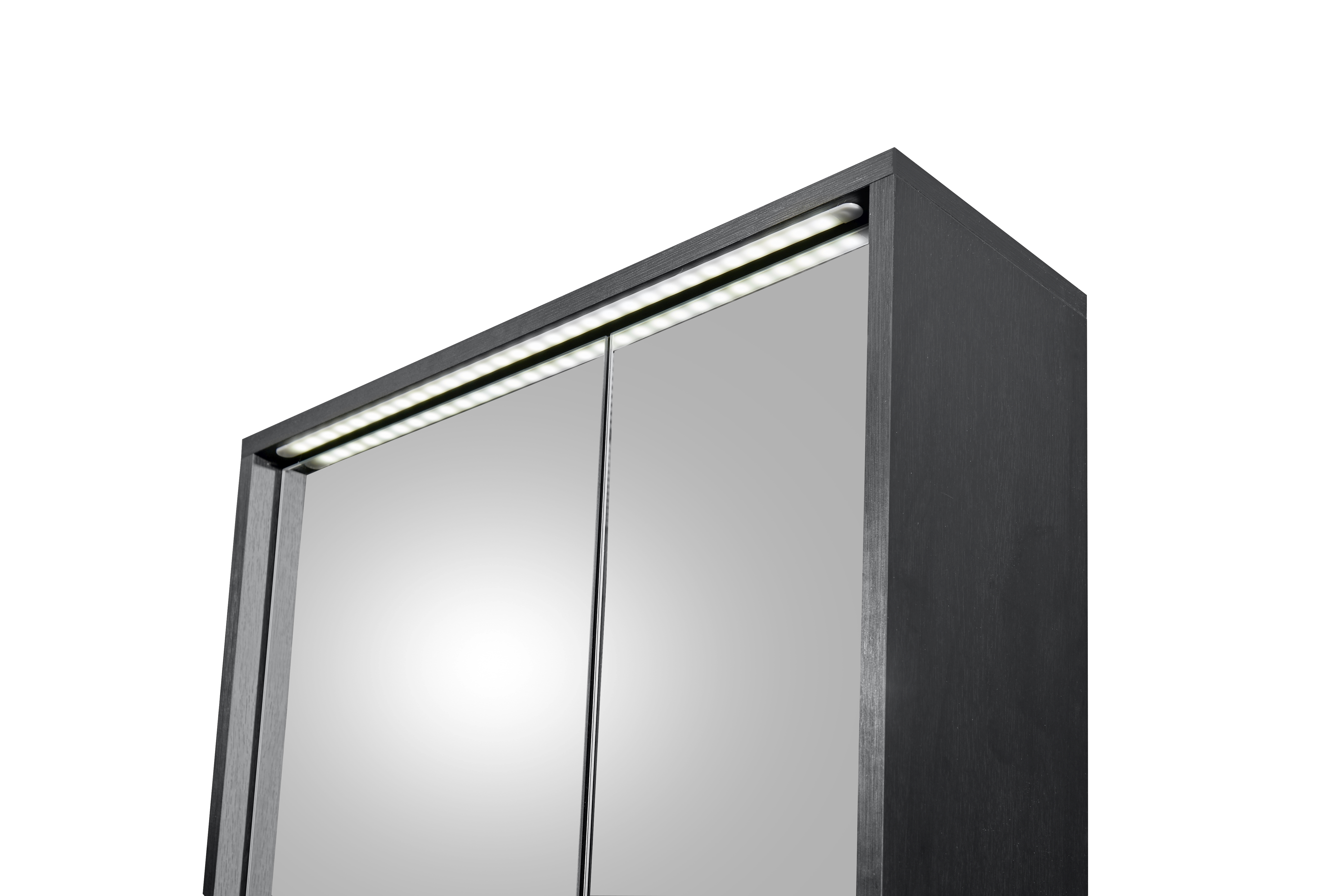 Front: Graphit Schwarz tiefzieh MDF (Mitteldichte Holzfaserplatte), Spanplatte Melaminbeschichtung / Spiegel