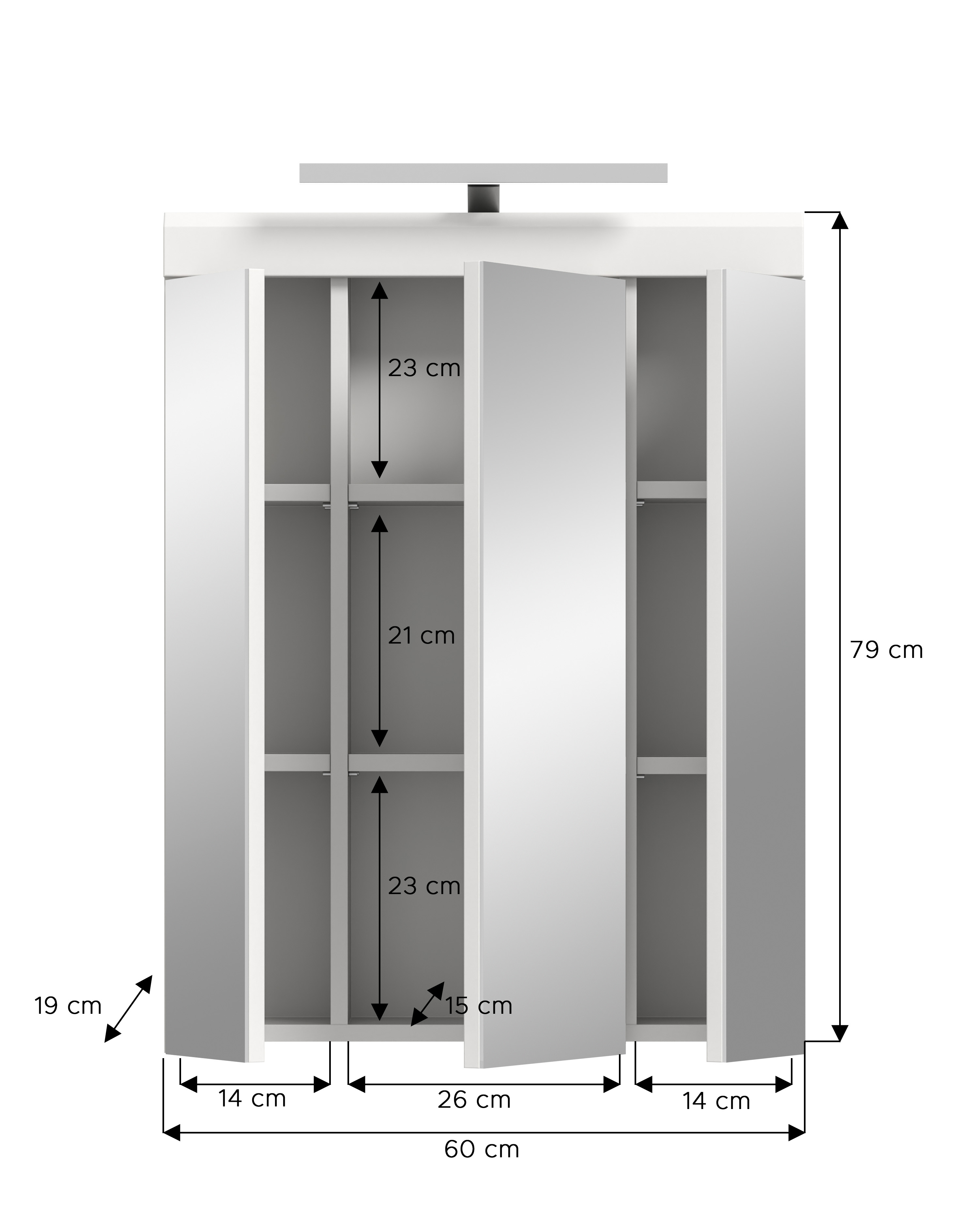 - Funktionalität: Der Spiegelschrank bietet nicht nur eine großzügige Reflexionsfläche, sondern auch ausreichend Stauraum hinter den Türen für die ordentliche Aufbewahrung von Bad- oder Hauswirtschaftsutensilien, wodurch er Funktionalität und Praktikabilität vereint.