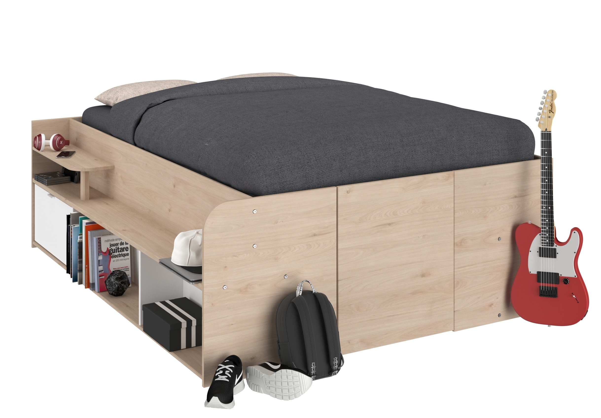 linke Bettseite: 1 Schubkasten, Regale, 1 Stufe, Kopf- und Fußteil - Soft