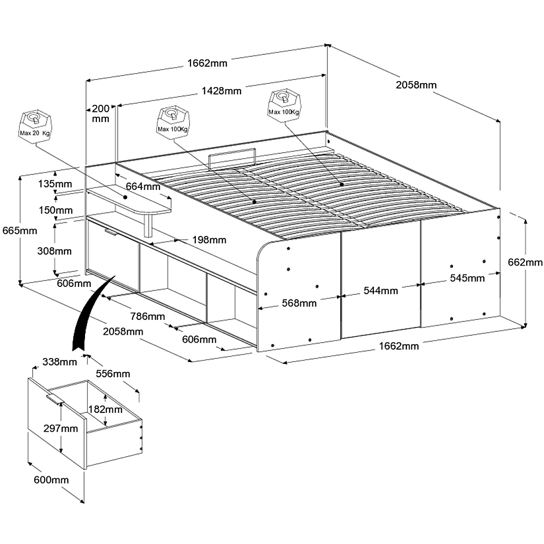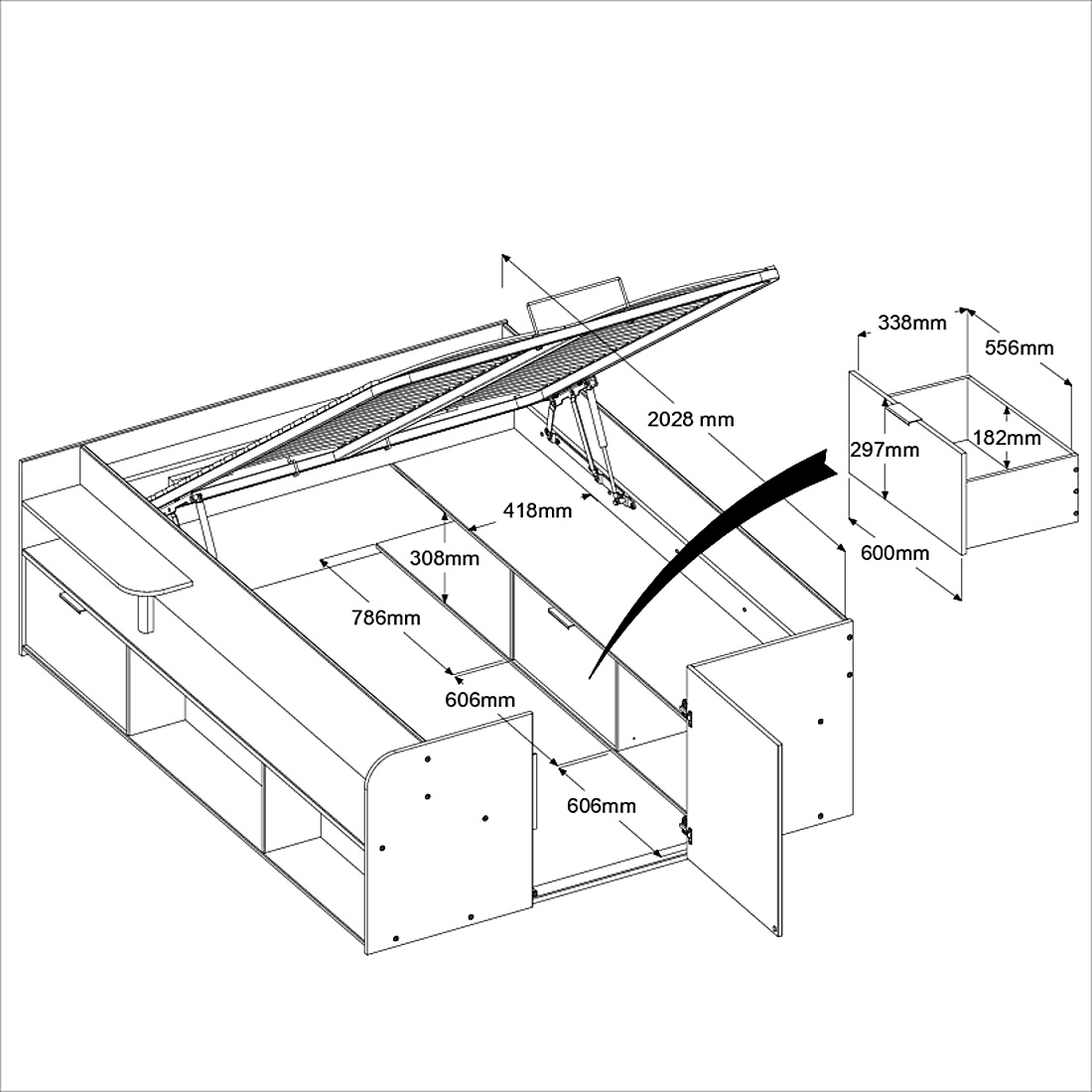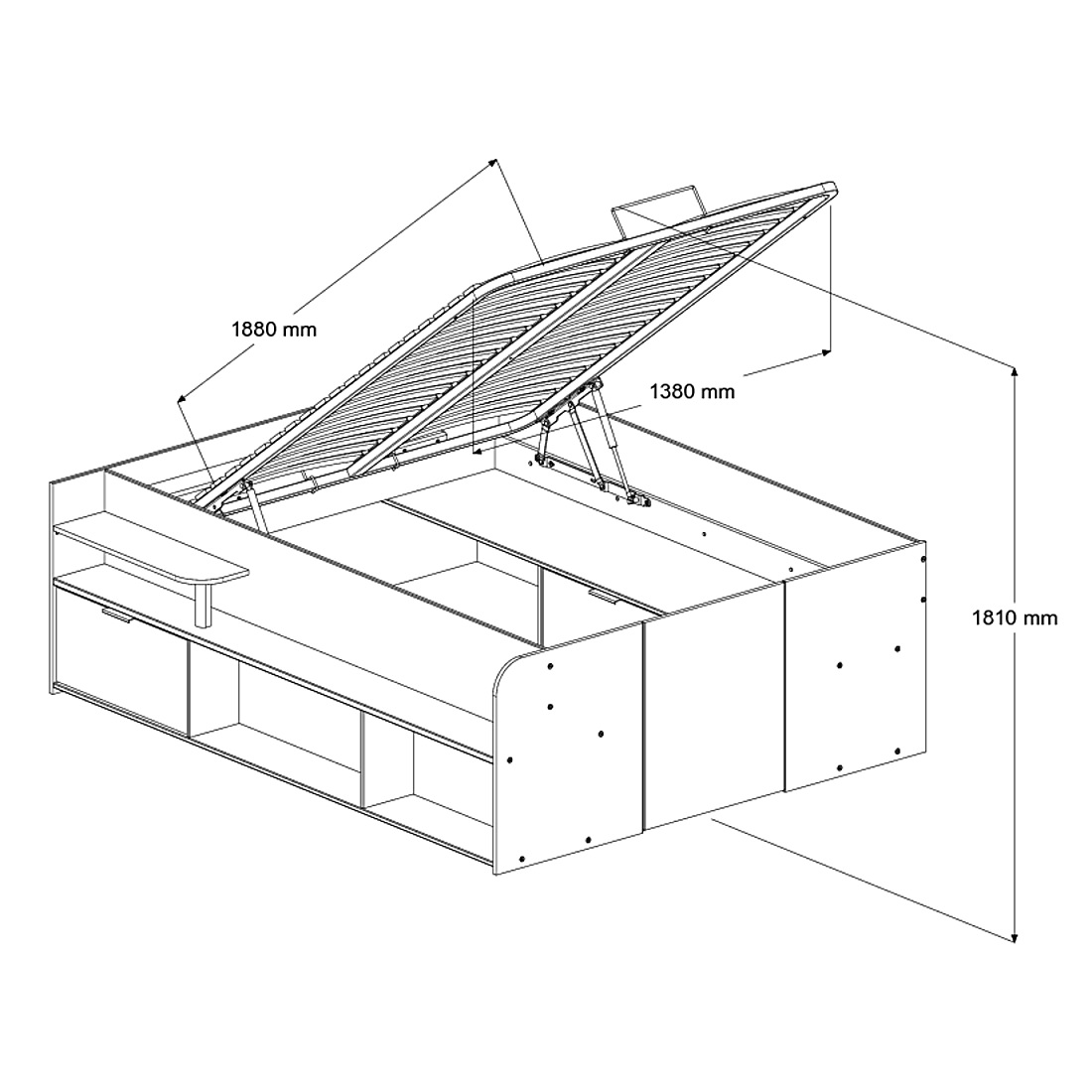 linke Bettseite: 1 Schubkasten, Regale, 1 Stufe, Kopf- und Fußteil - Soft