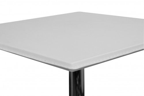 Tischplatte: MDF bezogen mit weißem Kunstleder (100% Polyurethan)