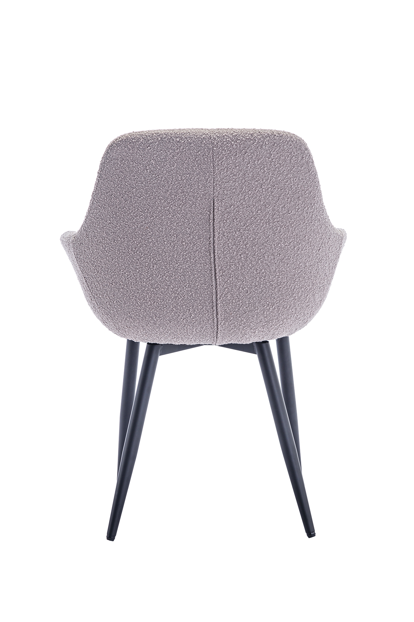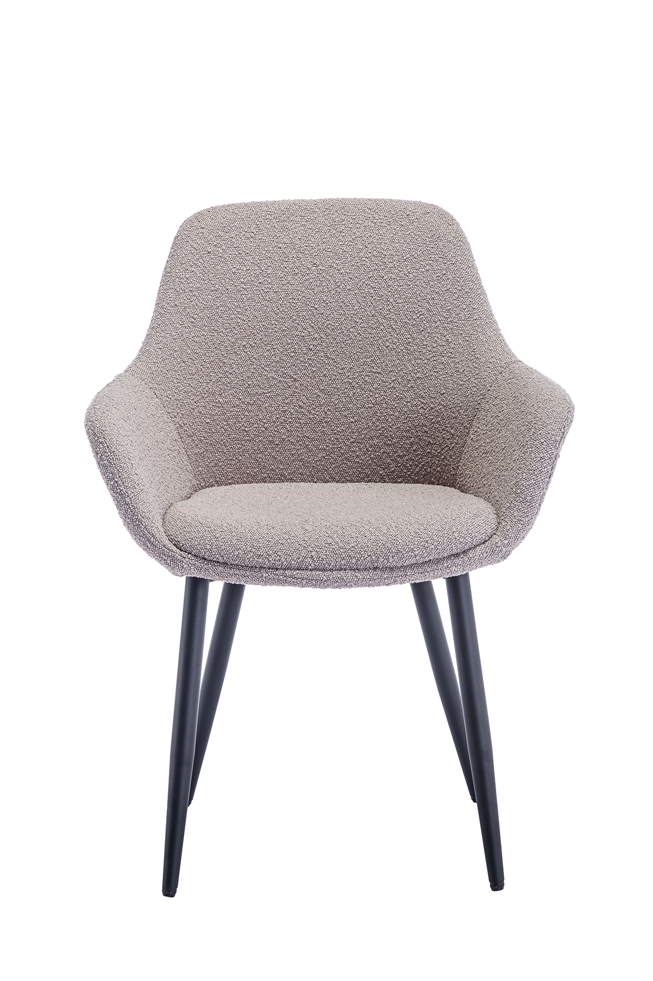 Der moderne Armlehnstuhl im 2er Set überzeugt mit seinem Texturstoff in Bouclé-Optik. Das robuste 4 Fuß Gestell aus pulverbeschichtetem Metall in matt schwarz gewährleistet einen sicheren Stand und bietet einen großartigen Kontrast zum Bezug des Stuhles. Durch die abgerundete Rückenfläche und die angenehme Polsterung entsteht ein Sitzkomfort der Extraklasse. Ein optisches Highlight sind die ausgestellten Armlehnen. Durch das stylische Design können die Stühle im Essbereich, als Sitzgelegenheit im Wartebereich oder in einem Konferenzraum eingesetzt werden. Aber auch als Einzelstuhl wird dieses Möbel zum echten Hingucker. Sie und Ihre Gäste werden Ihre neue Sitzgelegenheit lieben.