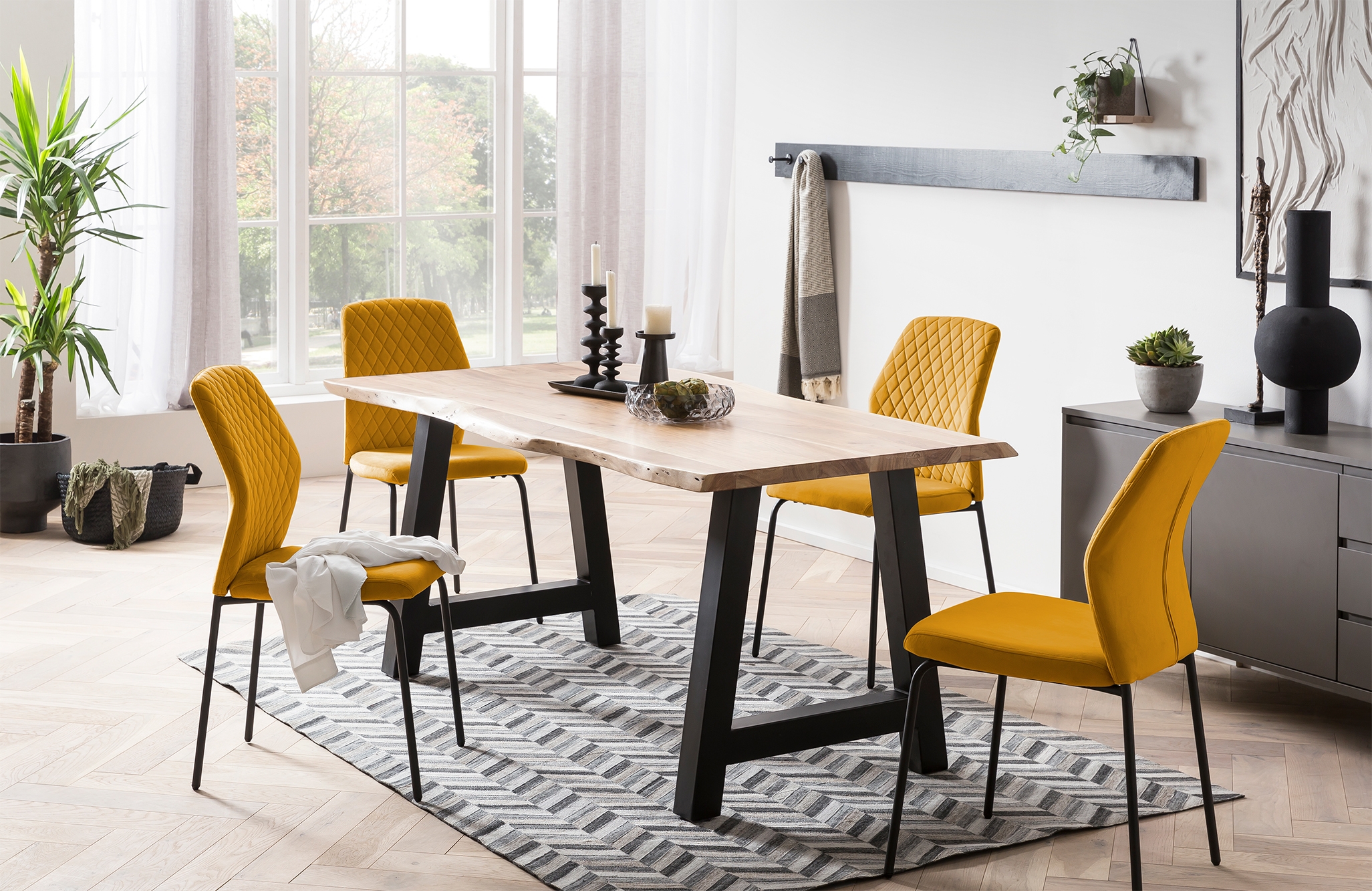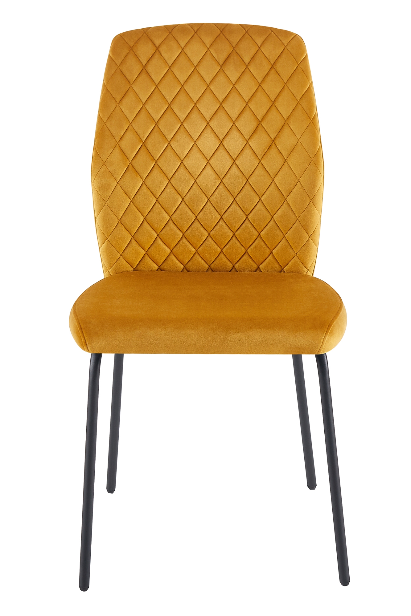 Dieser Esszimmerstuhl im reduzierten Design macht garantiert überall eine gute Figur. Die Rückenlehne mit aufwändiger Rautensteppung gibt dem Stuhl das gewisse Etwas und macht optisch richtig etwas her. Die leicht angeknickte Rückenlehne macht nicht nur den Look des Stuhls interessanter, sie sorgt auch für angenehmen Sitzkomfort. Bezogen ist der Stuhl mit standfestem, klassischen 4-Fuß Gestell mit einem Bezug in glamouröser Samt-Optik. Der Verkauf im 2er Set macht ein spannendes Mix & Match von verschiedenen Farben am Esstisch zum Kinderspiel. Mit diesem Stuhl machen Sie garantiert nichts falsch – Egal ob am Esstisch oder als Sitzgelegenheit am Schreib- oder Schminktisch.