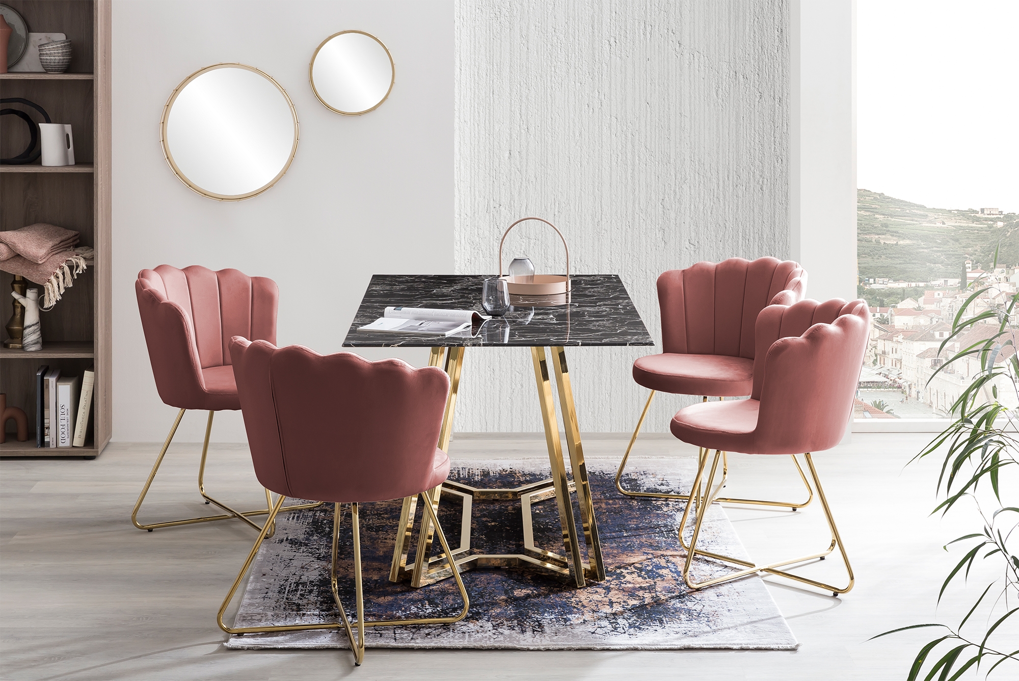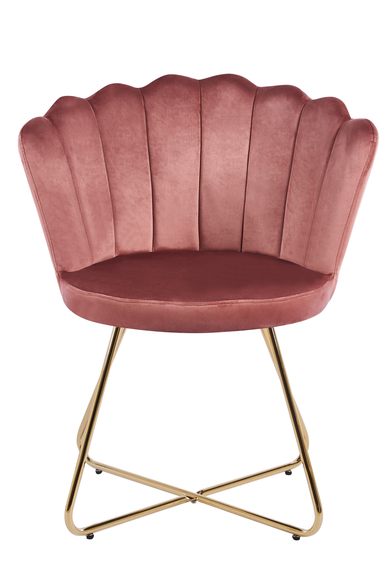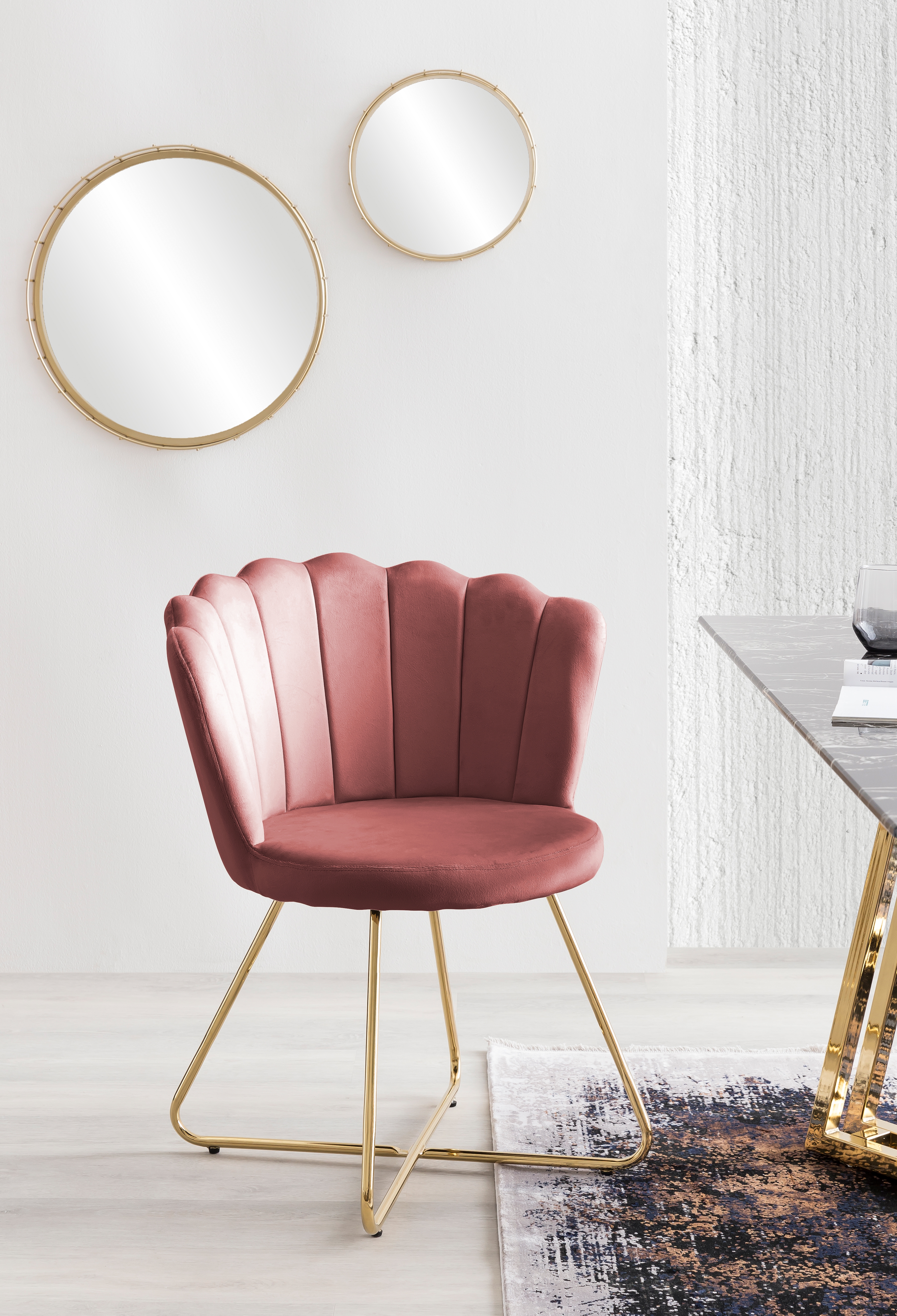 Entfliehen Sie dem Alltag und genießen Sie eine kleine Auszeit. Das moderne Stuhl-Set im Muschel-Design besticht durch seinen Bezug aus Samt und überzeugt mit seinem abgerundeten Sitz- und Rückenbereich. Das überkreuzte Design-Gestell aus vergoldetem Metall gewährleistet nicht nur einen sicheren Stand, sondern bietet auch einen großartigen Kontrast zum Bezug des Stuhls. Durch die Polsterung an Sitz- und Rückenfläche und die stylische Form erleben Sie erstklassigen Sitzkomfort. Die abgerundete Form sorgt für einen weichen Look. Der Stuhl kann im Speisezimmer als Esszimmerstuhl oder zum Beispiel als Sitzgelegenheit am Schminktisch dienen. Egal wo er platziert wird, dieser Muschelstuhl ist ein echter Blickfang.