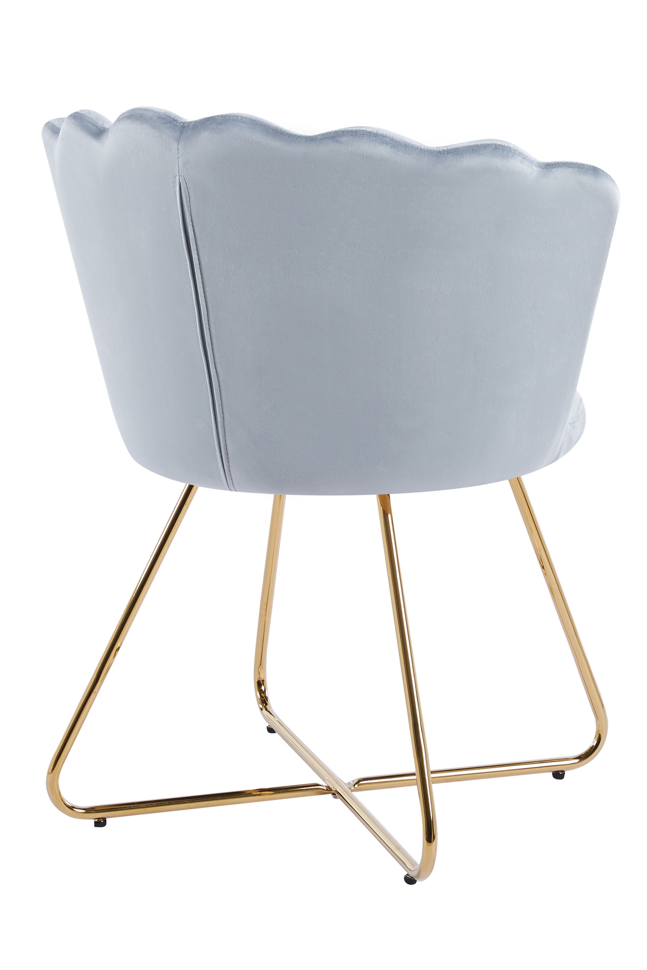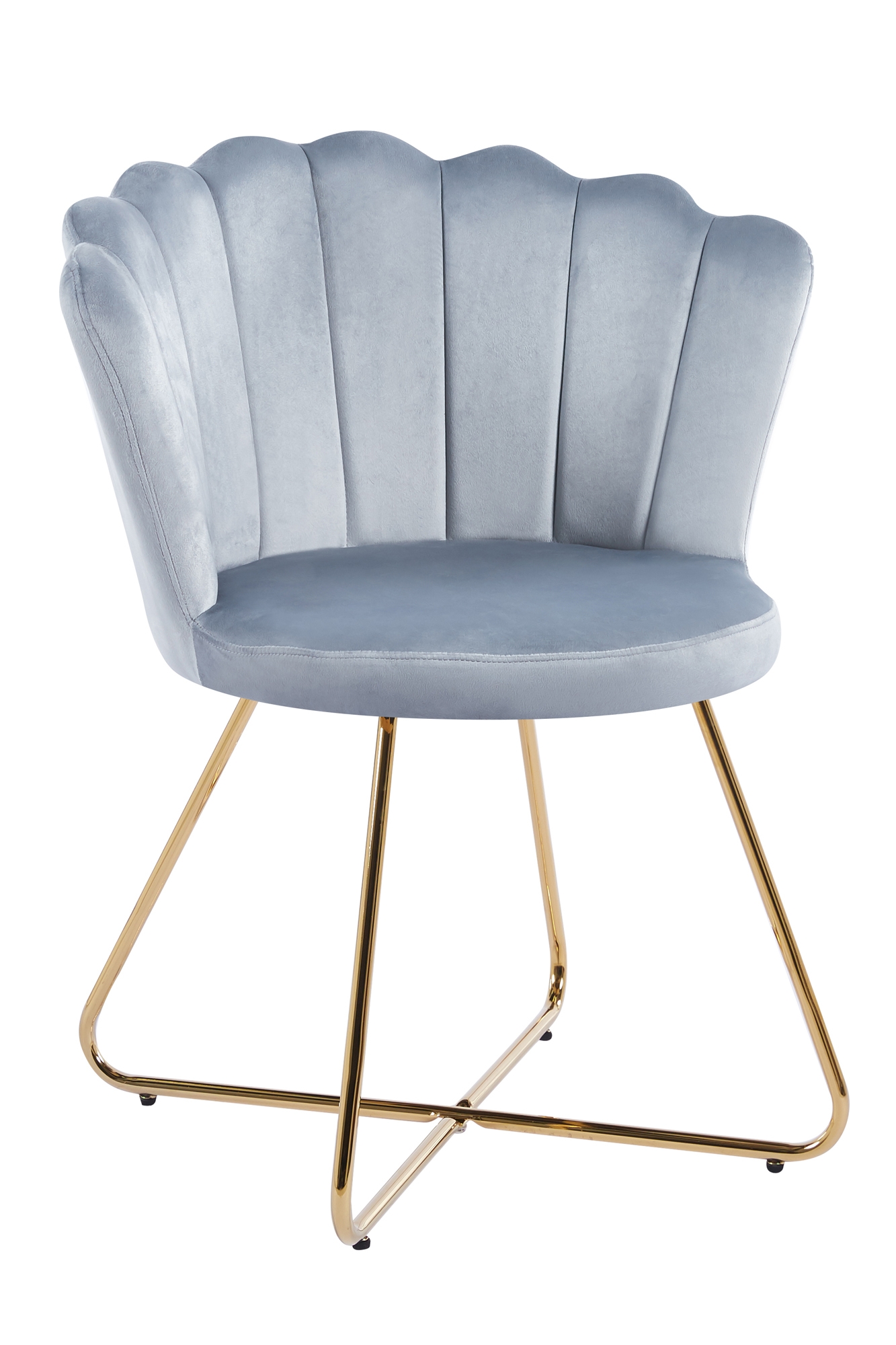 Entfliehen Sie dem Alltag und genießen Sie eine kleine Auszeit. Das moderne Stuhl-Set im Muschel-Design besticht durch seinen Bezug aus Samt und überzeugt mit seinem abgerundeten Sitz- und Rückenbereich. Das überkreuzte Design-Gestell aus vergoldetem Metall gewährleistet nicht nur einen sicheren Stand, sondern bietet auch einen großartigen Kontrast zum Bezug des Stuhls. Durch die Polsterung an Sitz- und Rückenfläche und die stylische Form erleben Sie erstklassigen Sitzkomfort. Die abgerundete Form sorgt für einen weichen Look. Der Stuhl kann im Speisezimmer als Esszimmerstuhl oder zum Beispiel als Sitzgelegenheit am Schminktisch dienen. Egal wo er platziert wird, dieser Muschelstuhl ist ein echter Blickfang.