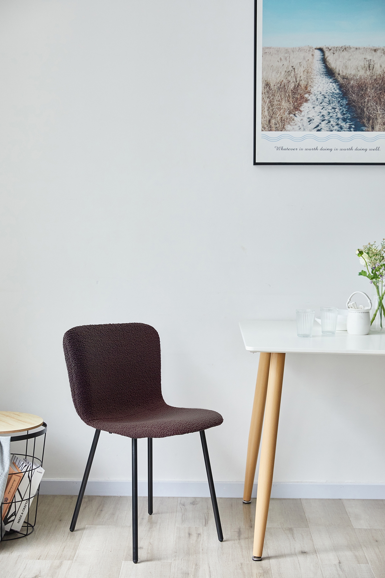 Schlichtes Design mit Scandi Flair zu einem unschlagbaren Preis. Dieses 4-teilige Stuhl Set besticht durch reduzierte Formsprache, klare Linien und einen topaktuellen Bouclé-Bezug. Der Bouclé Stoff, der schon lange Einzug in unsere Wohn- und Esszimmer gehalten hat, vermittelt Wärme und Geborgenheit. Außerdem spiegelt der Stoff mit seiner wolligen Optik die Essenz des beliebten Scandi Styles gekonnt wider. Die ergonomisch geformte Sitzfläche und Rückenlehne sorgen für optimalen Sitzkomfort. Das 4-Bein-Gestell aus pulverbeschichtetem Metall garantiert einen wackelfreien Stand. Mit dem praktischen 4er Set sind Sie direkt komplett eingerichtet, was das Sitzmobiliar im Essbereich betrifft. Erhältlich ist der Stuhl in angesagten Neutral-Tönen, die sich überall harmonisch einfügen und an jeder Stelle einen Platz finden.
