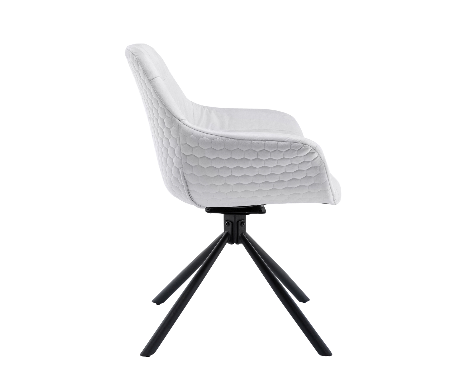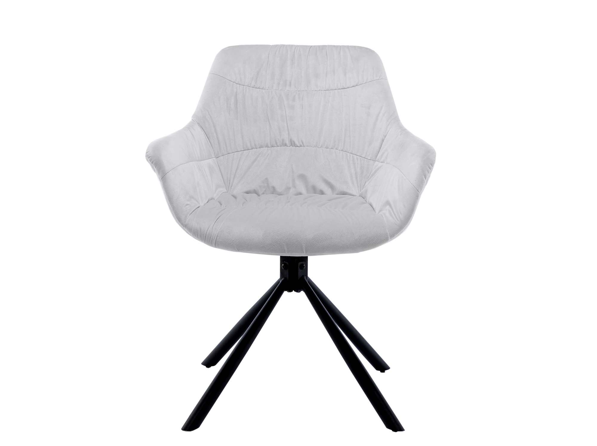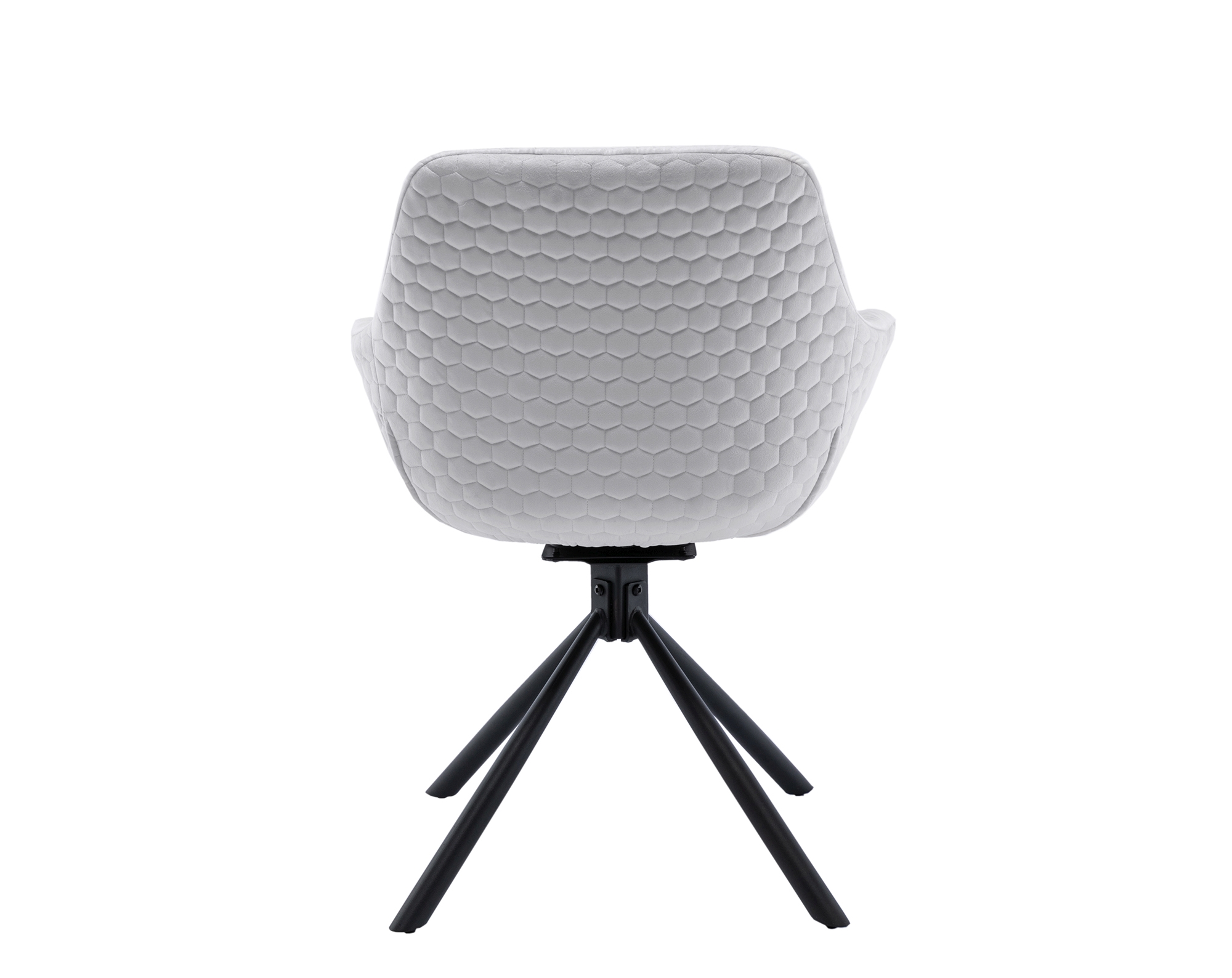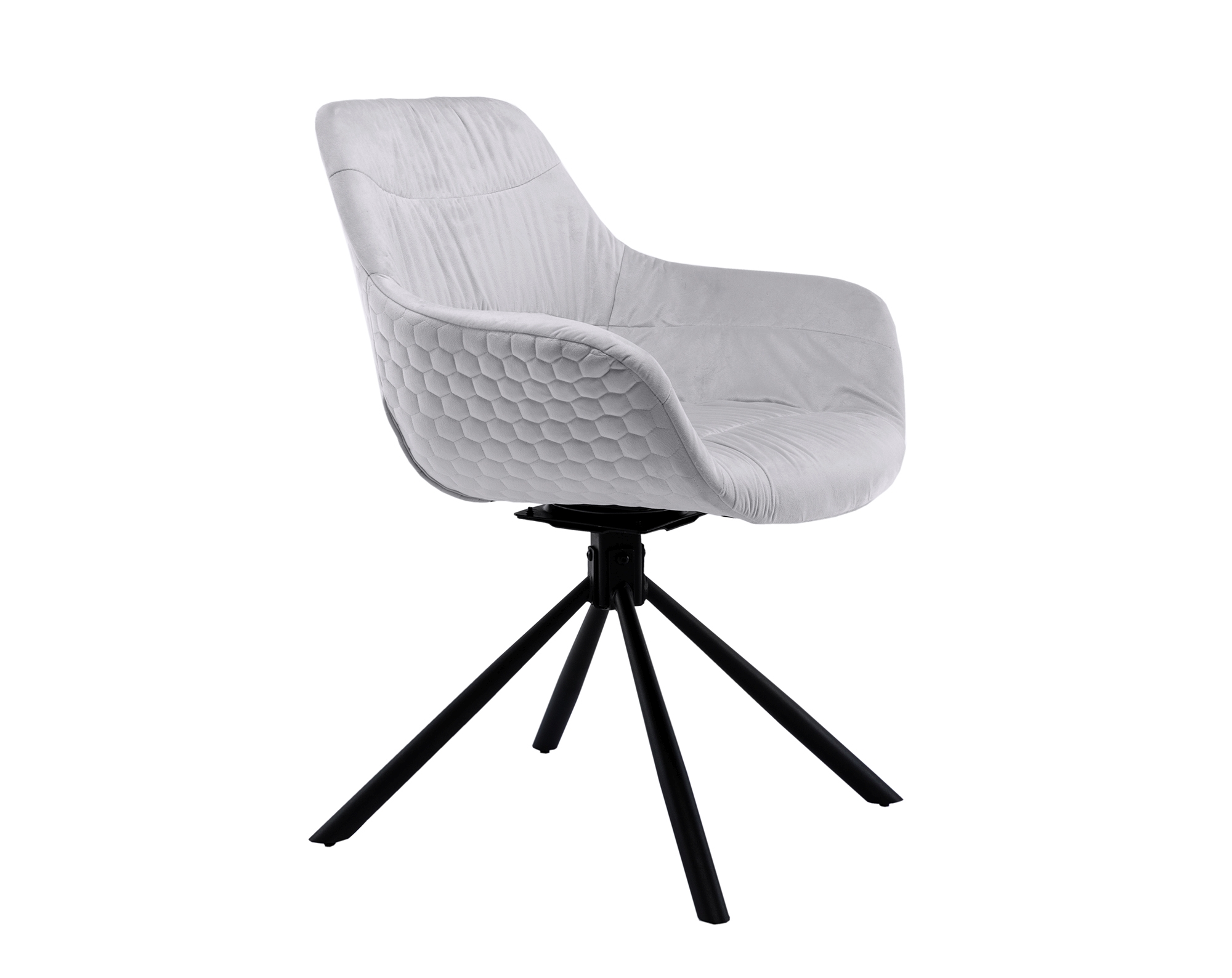 Der trendige Armlehnstuhl besticht durch seinen Stoffbezug in Samt-Optik und seinem Baseball-Gestell mit 360° Drehfunktion aus schwarz pulverbeschichtetem Metall. Die Metallbeine gewährleisten nicht nur einen sicheren Stand, sondern harmonisieren auch perfekt mit dem Bezug des Stuhles. Durch die bequeme Sitzschale mit Armlehnen erhalten Sie einen angenehmen Sitzkomfort der Extraklasse. Die Quersteppung an dem inneren Sitz- und Rückenbereich, sowie die Wabensteppung, die den äußeren Bereich schmückt, sind ein absoluter Blickfang in Ihrem Wohnraum. Durch seine extravagante Formgebung kann dieser Polsterstuhl auch als Konferenzstuhl genutzt werden. Egal wo er zum Einsatz kommt, Sie und Ihre Gäste werden diesen Sitzkomfort lieben.