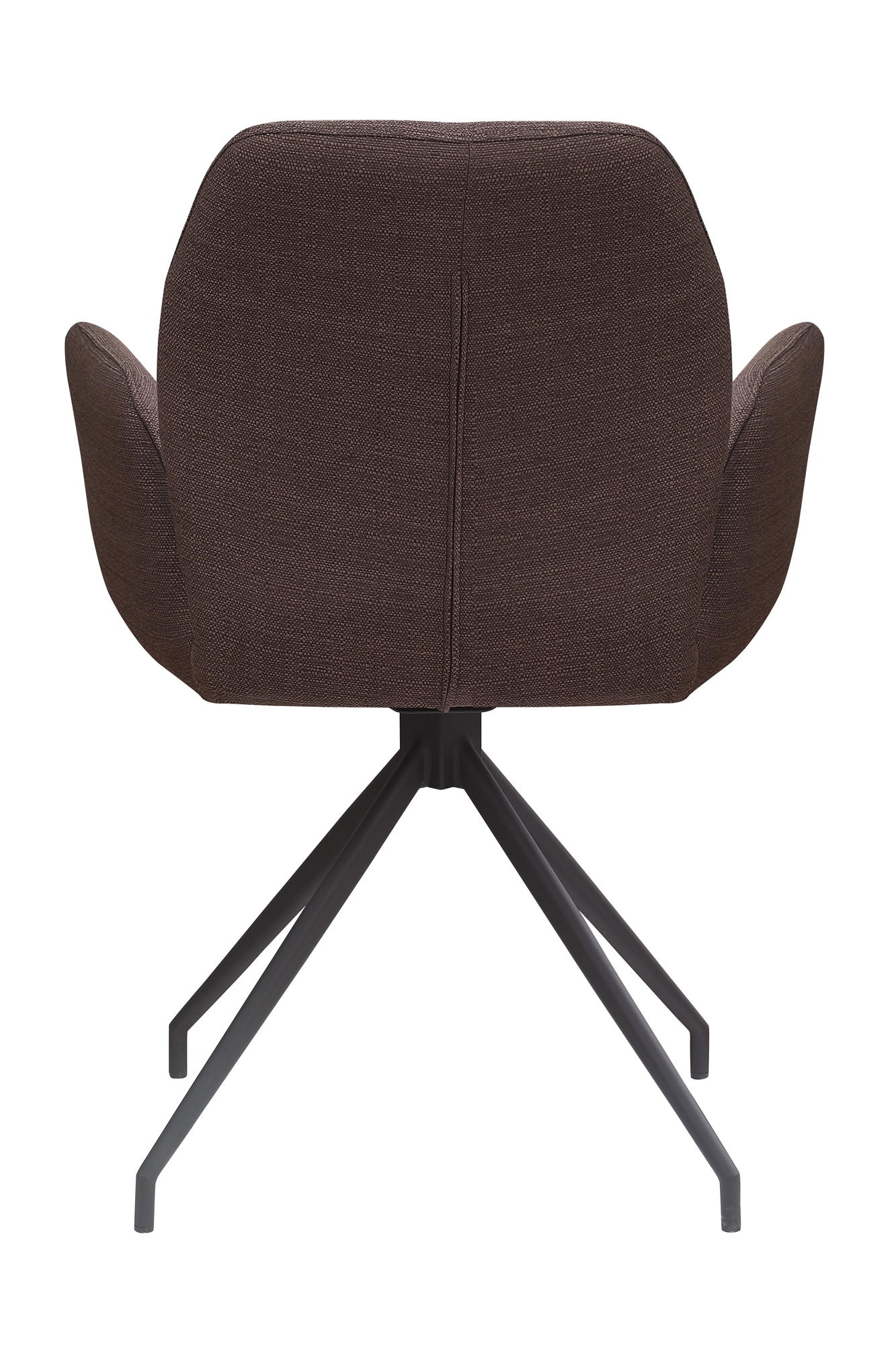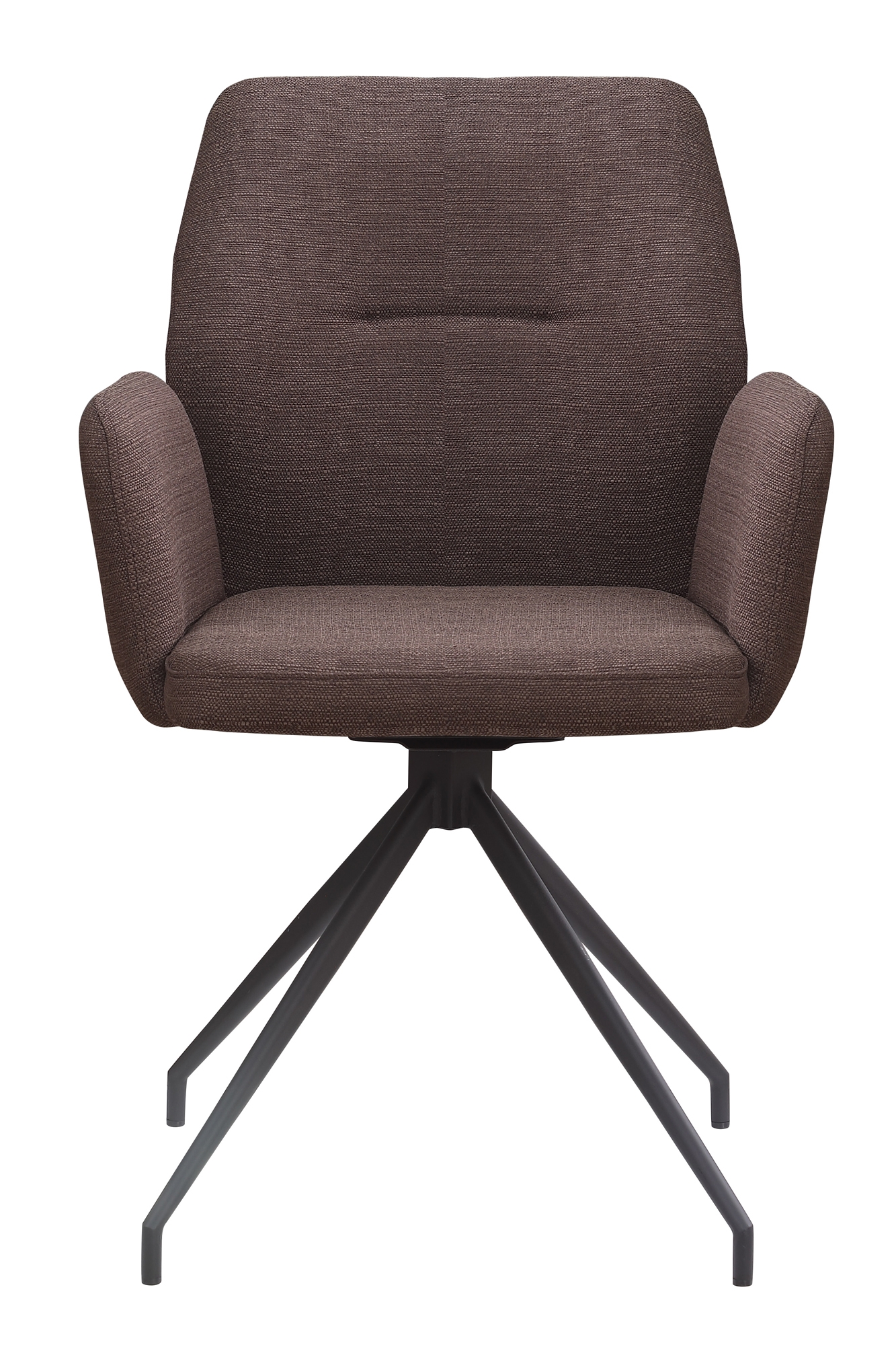 Besticht durch seine moderne Optik und die hohe Verarbeitungsqualität: Im modernen Design fügt sich der Armlehnstuhl mit 180° Drehfunktion in Ihr Zuhause ein. Dabei kann dieser vielseitig als Esszimmerstuhl, für den Schminktisch oder das Homeoffice eingesetzt werden. Der Polsterstuhl besticht durch seine trendige Formensprache mit ergonomisch geformter Rückenlehne mit Ziernaht, gerader Sitzfläche und leicht ausgestellten Armlehnen. Alle Bereiche weisen eine angenehme Polsterung für einen hohen Sitzkomfort auf. Bezogen ist das Sitzmöbel mit einem edlen Strukturstoff, der über strapazierfähige Eigenschaften verfügt und in vielen attraktiven Unifarben zur Auswahl steht. Ein weiteres Highlight stellt das filigran wirkende Design-Gestell aus pulverbeschichtetem Metall dar. Durch den integrierten Drehmechanismus ermöglicht der Sessel ein dynamisches Sitzen.