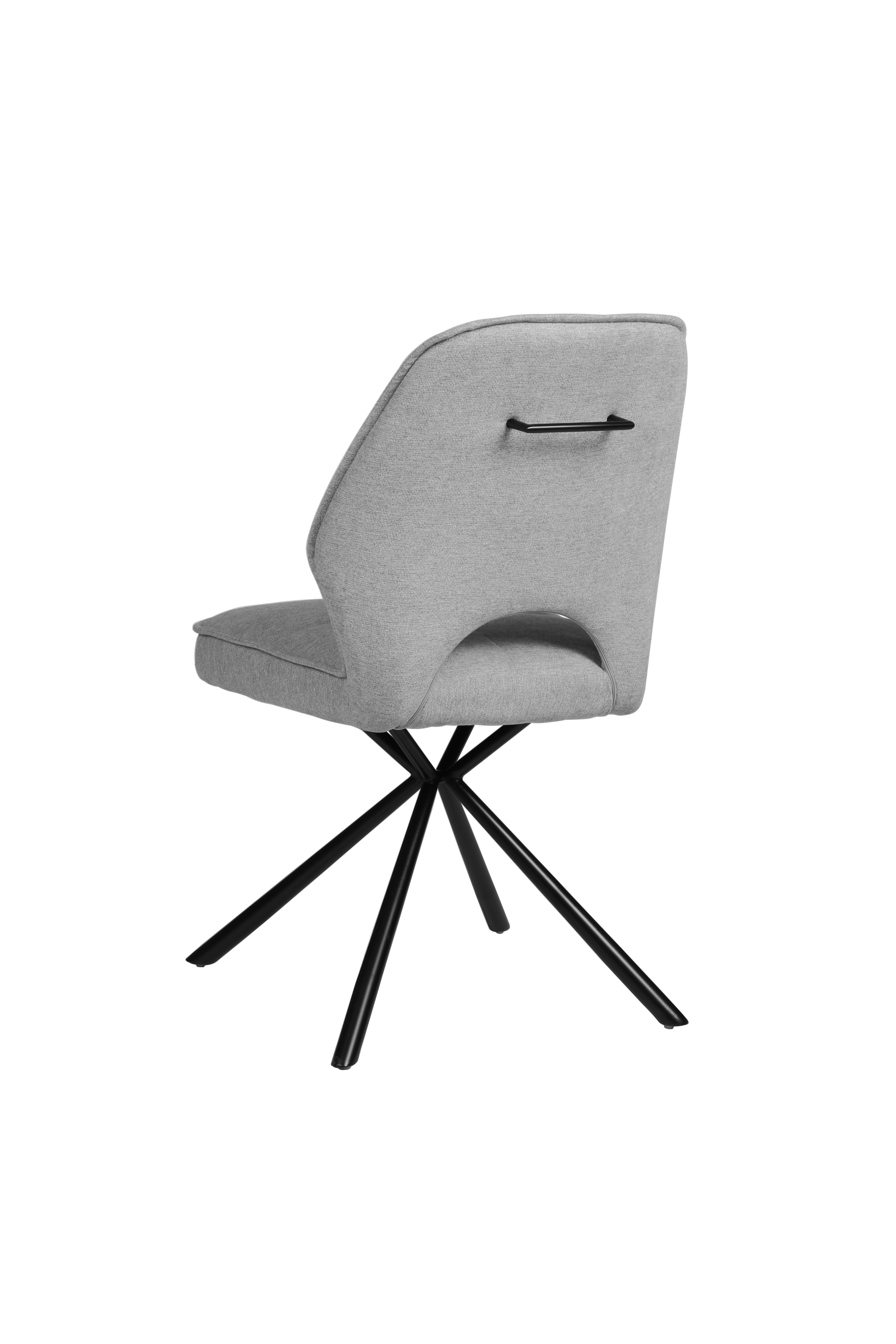 Die ergonomisch geformte Sitzschale mit weichem Bezugsstoff sorgt für angenehmen Sitzkomfort, während das stabile Metall-Gestell in Schwarz für robusten Stand und Langlebigkeit sorgt. Dank seiner drehbaren Funktion mit 180°-Bewegung bleibt der Stuhl flexibel und bequem in der Nutzung.