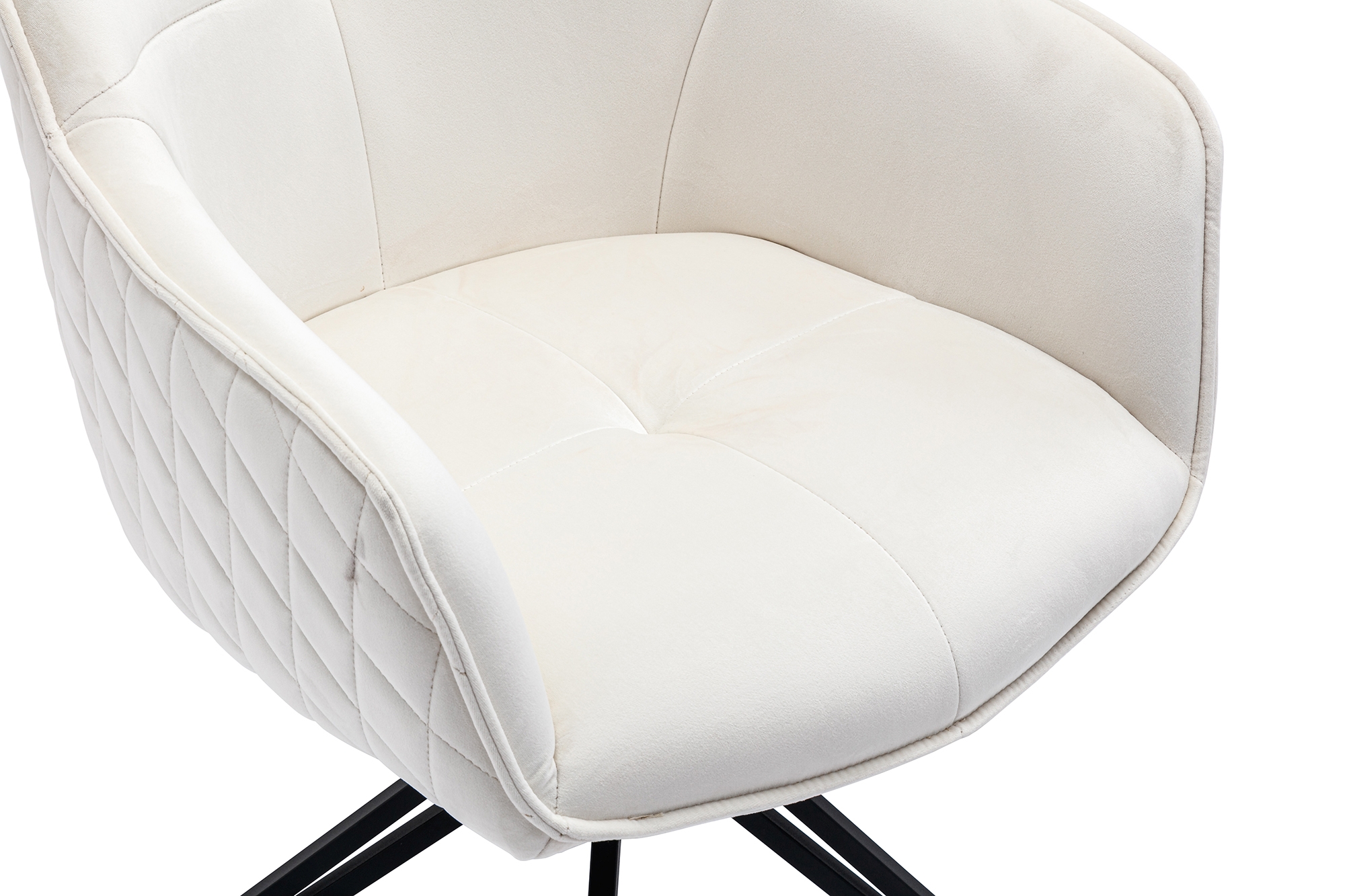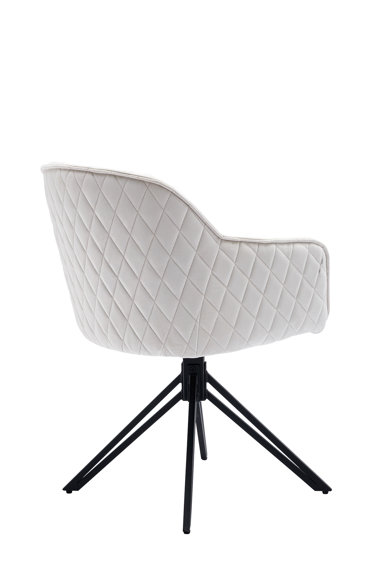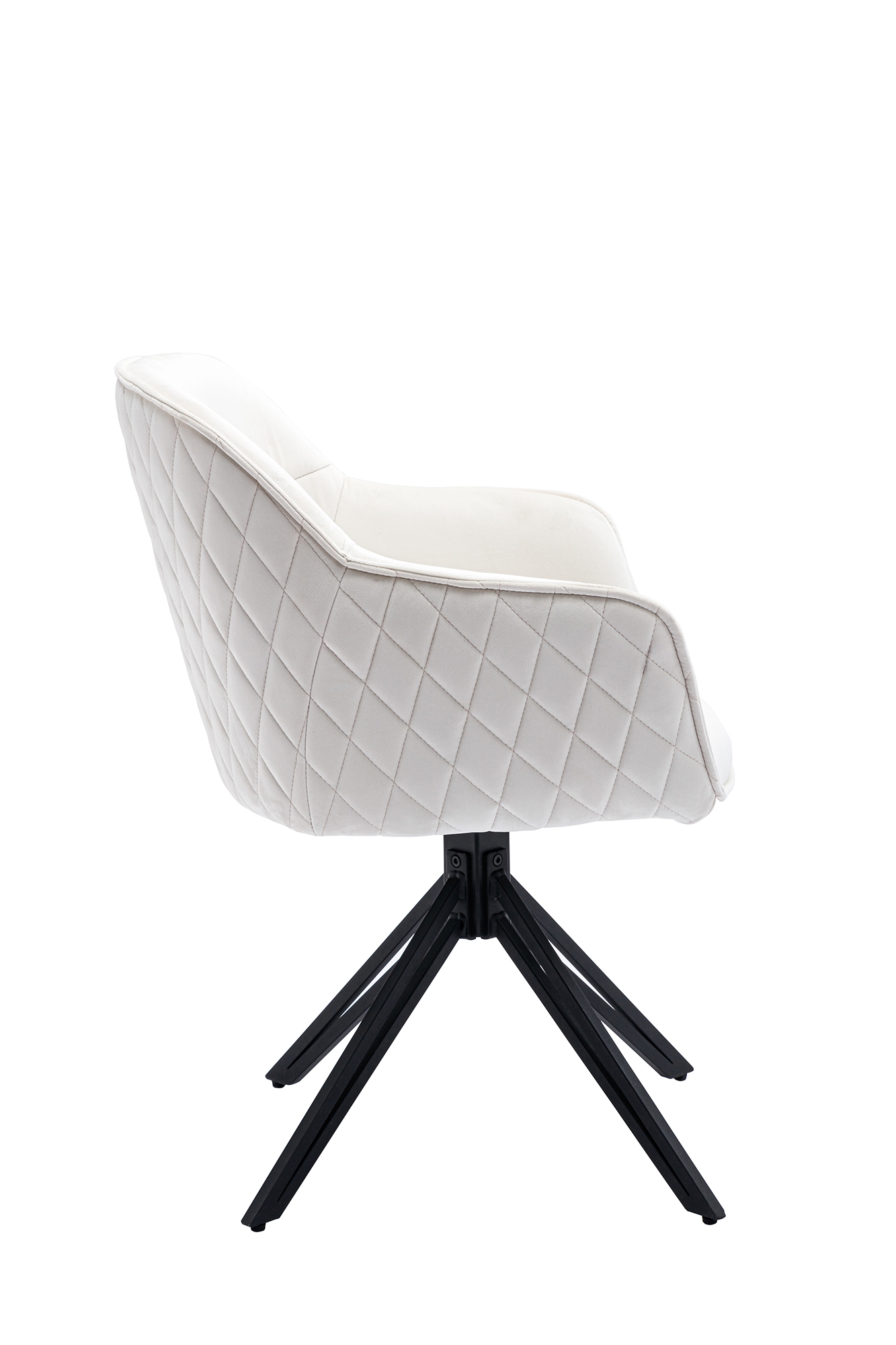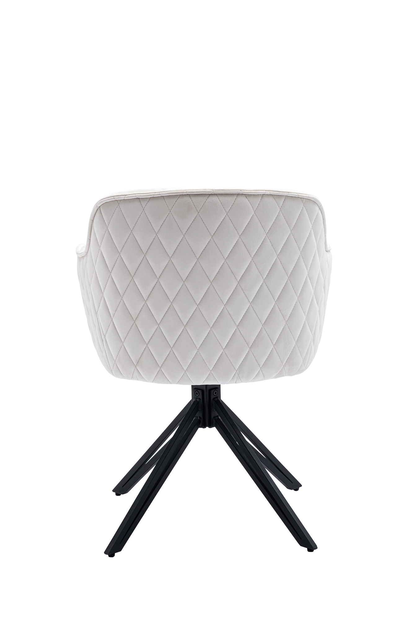 Der stylische Armlehnstuhl mit 360°-Drehfunktion bereichert mit besonders flexiblem Sitzkomfort Ihr Zuhause. Die Sitzschale lässt sich um 360° drehen. Der besondere Retro-Look des bequemen Stuhls macht das Sitzmöbel zum absoluten Hingucker. Das außergewöhnliche Design-Gestell aus schwarzem Metall und die hochwertig Wabensteppung im Rücken sind dabei nur zwei der hochwertigen Details des Polsters. Die schwarzen Metallbeine bilden einen interessanten Kontrast zu dem edlen Samt-Bezug der Sitzschale und sorgen für einen sicheren Stand. Ein Rundum besonderer Stuhl für Ihr Zuhause!