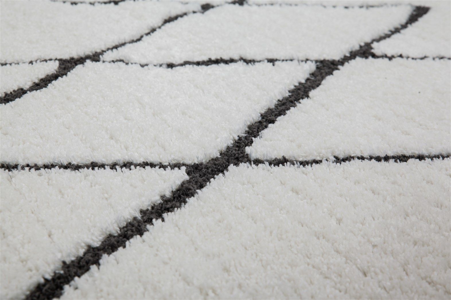 Bringen Sie mit diesem Hochflorteppich frischen Wind in Ihr Zuhause. Das moderne schwarze Ethno-Muster verziert den hellen Teppich ideal und wird durch die dekorativen und weichen Fransen an den Teppichenden noch unterstrichen. Die schlichten Farben in aufregendem Design aus geometrischen Formen werten nicht nur moderne Einrichtungen auf, sondern auch klassische oder rustikale Wohnstile. Statten Sie Ihre Wohnräume mit Ihrem neuen Hochflorteppich aus und schaffen Sie eine gemütliche Atmosphäre, egal ob in Wohnzimmer, Schlafzimmer oder Eingangsbereich. Mit modernen Teppichen von Kayoom holen Sie sich Blickfänge nach Hause. Damit für jede Wohnsituation ein passendes Exemplar dabei ist, ist der Teppich in verschiedenen Größen erhältlich.