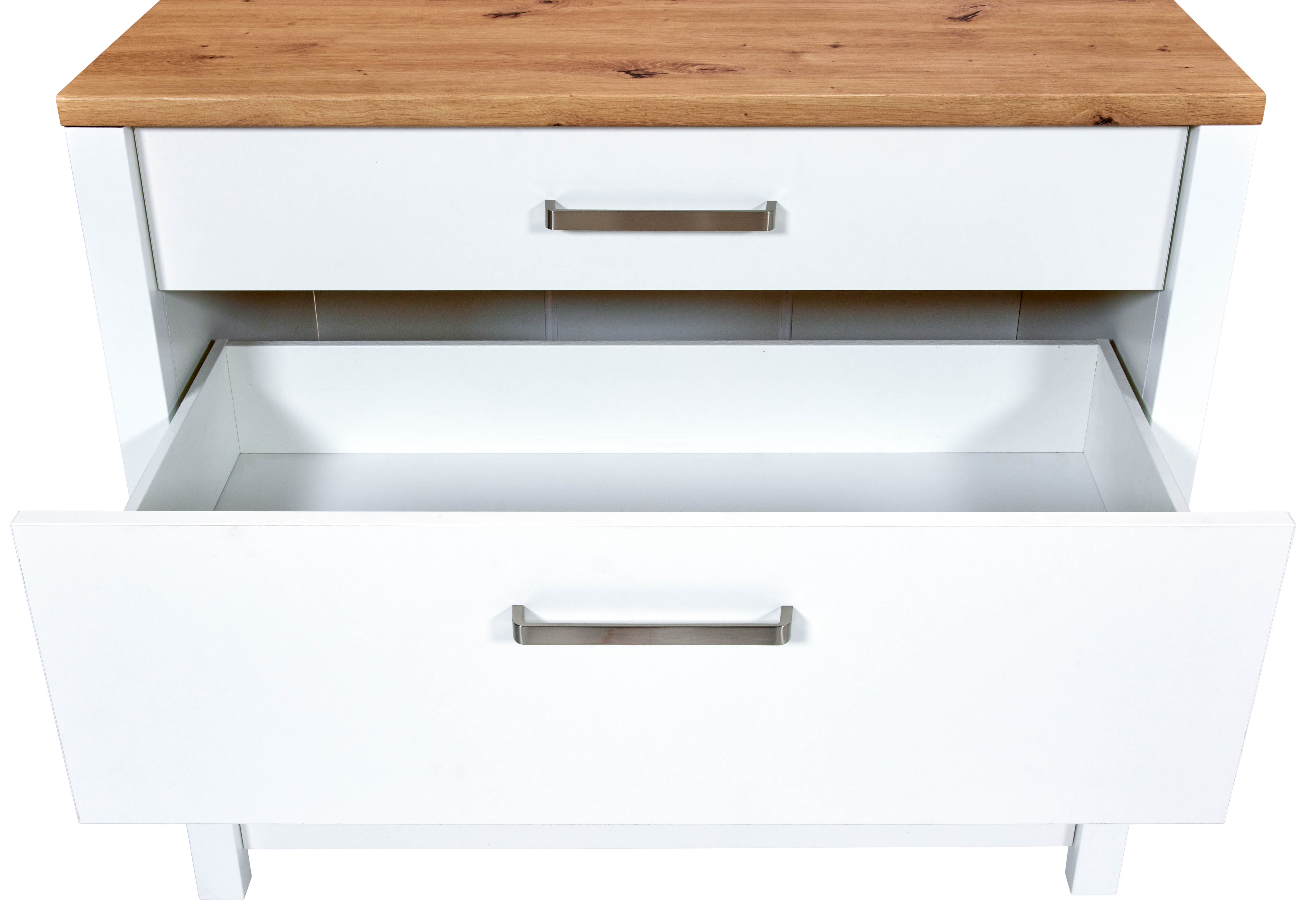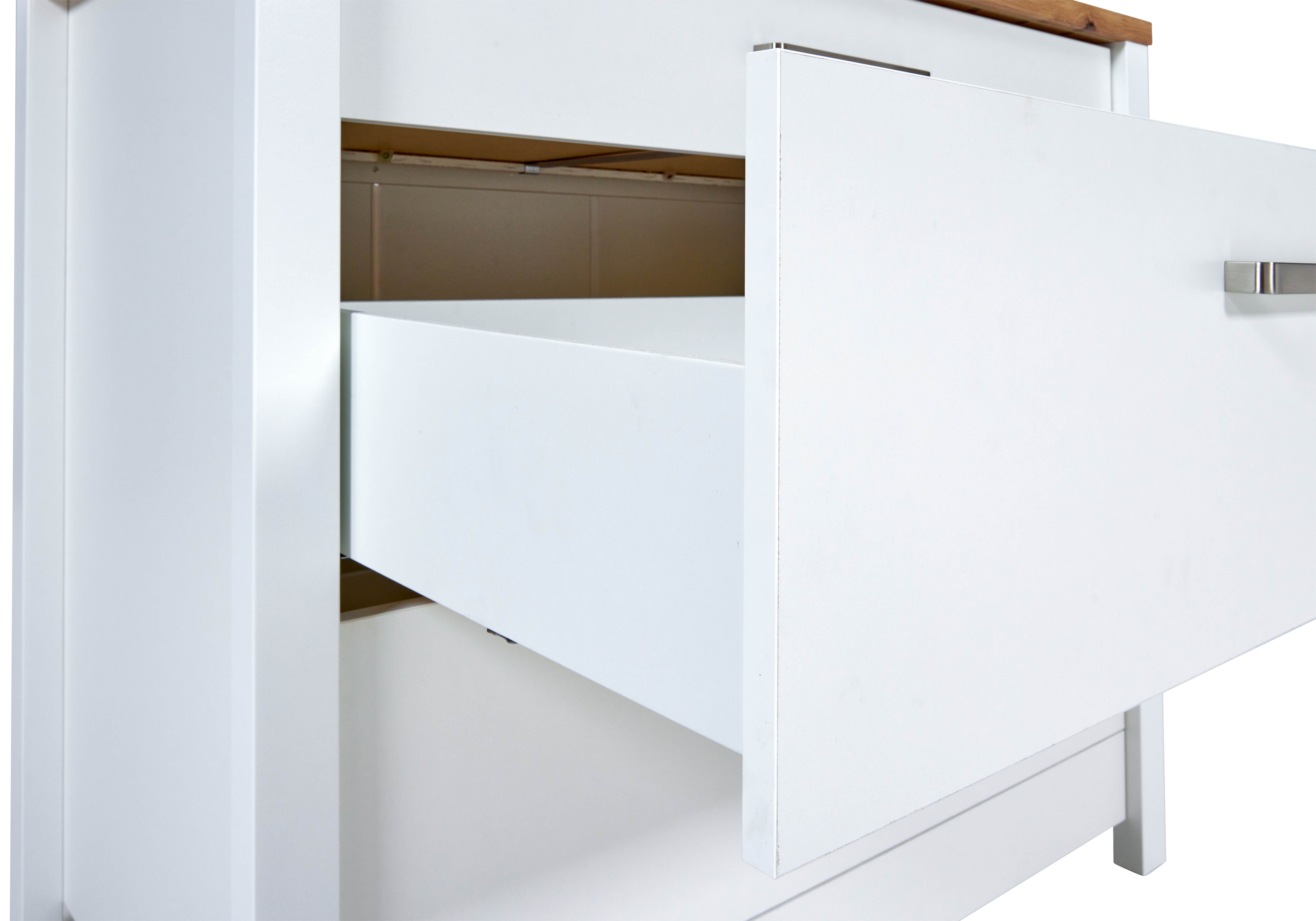 Front und Korpus: MDF (Mitteldichte Holzfaserplatte) Spanplatte Weiß
