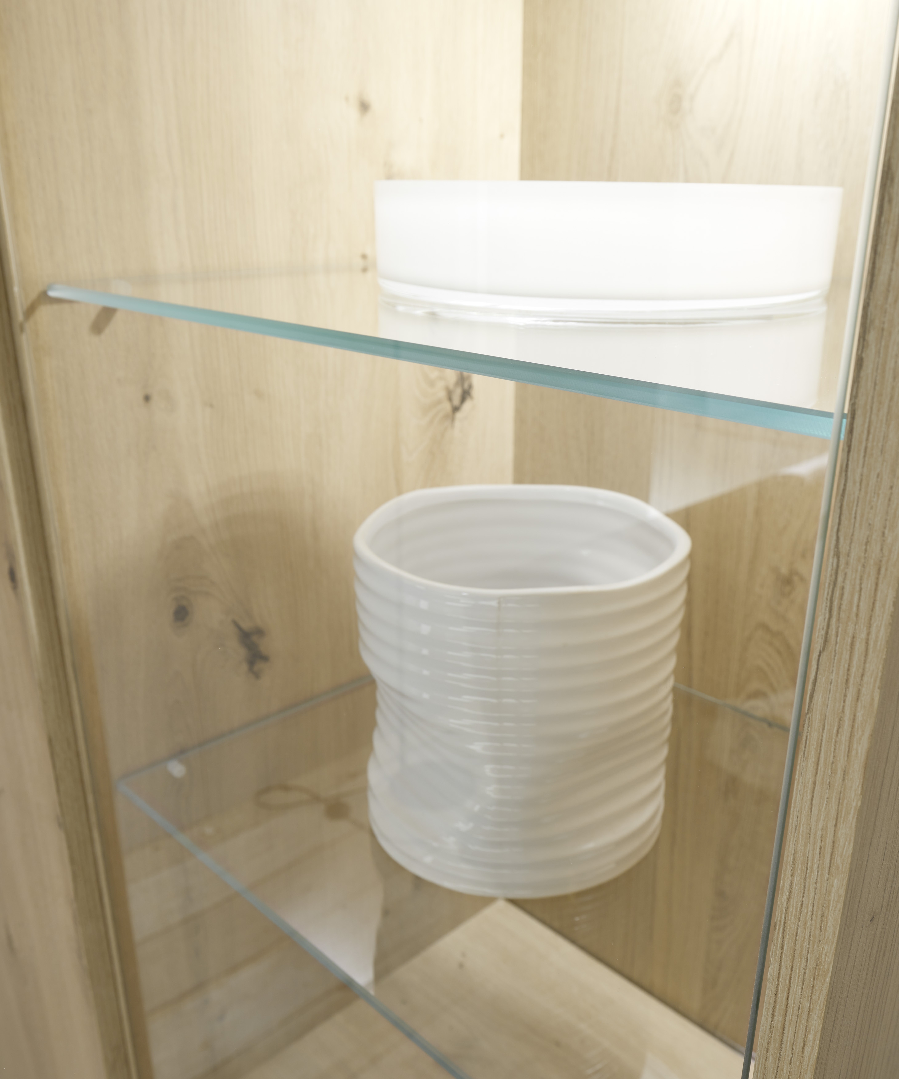 Front: Artisan Eiche Holznachbildung / Spanplatte foliert / Glas
