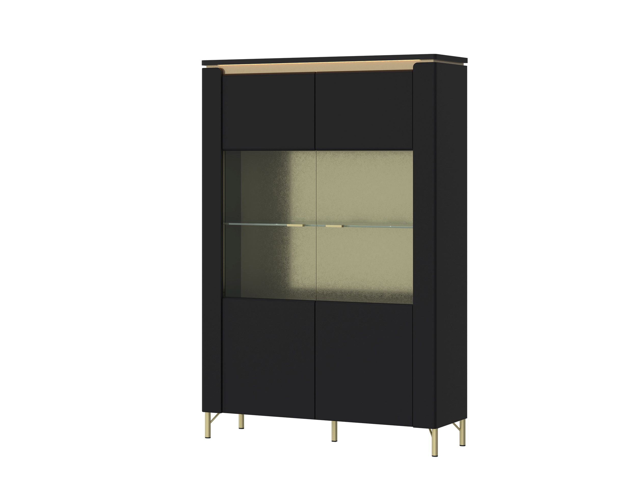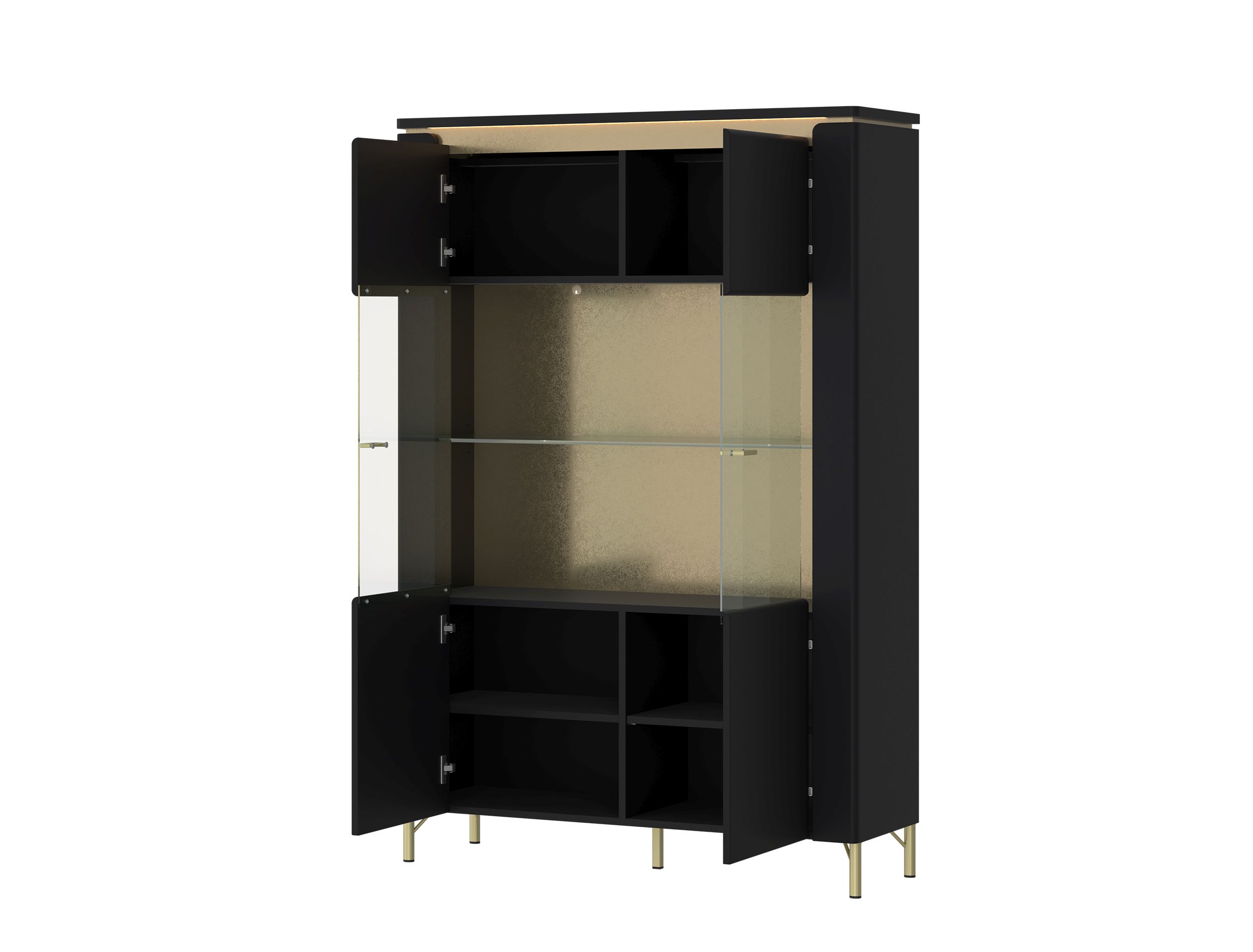 Korpus: Schwarz matt kombiniert mit Absetzungen in goldfarben, MDF Platte, Spanplatte mit Melaminharzbeschichtung