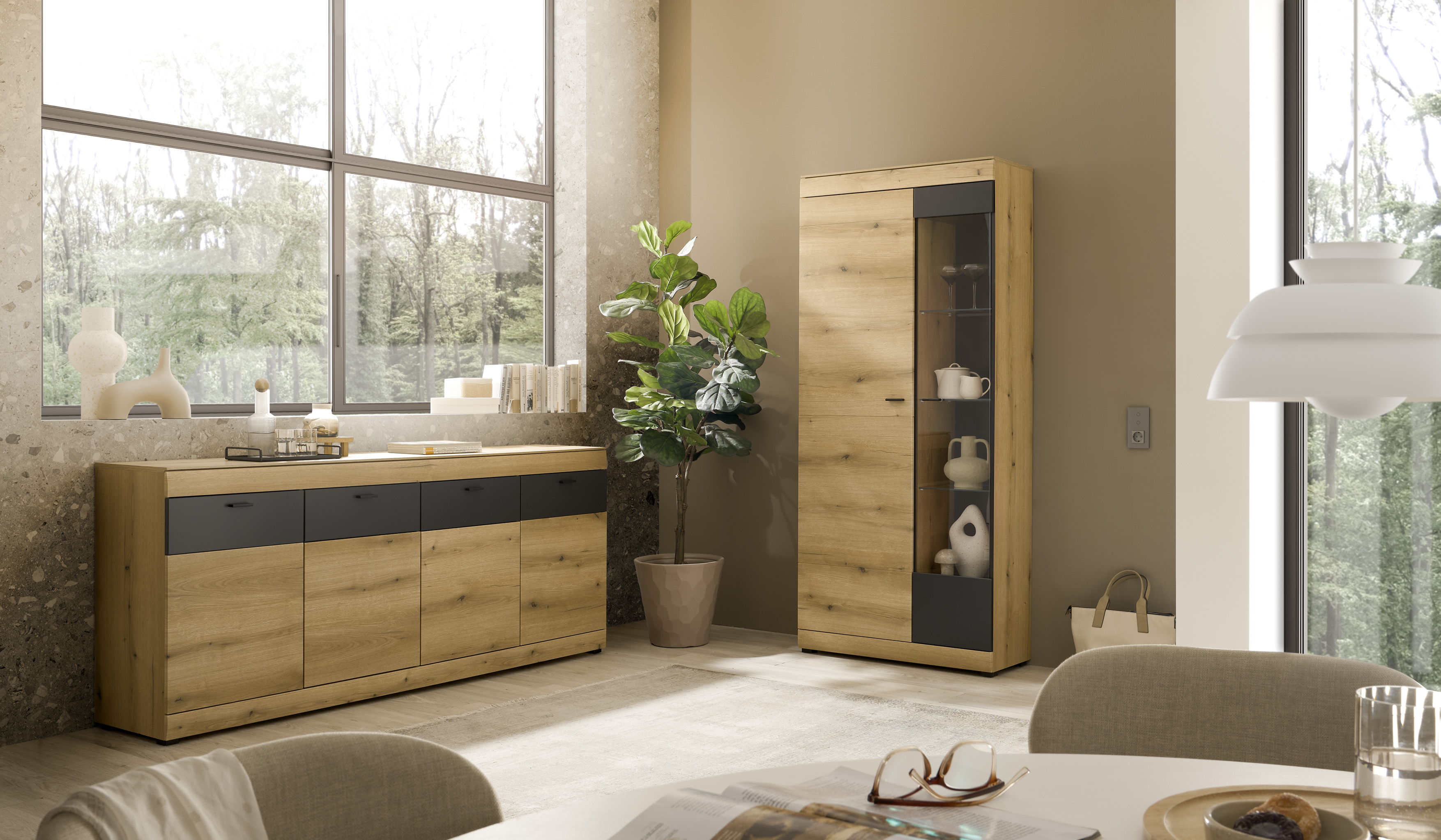 - Zeitloses Design mit Eiche-Fronten und graphitmatten Akzenten