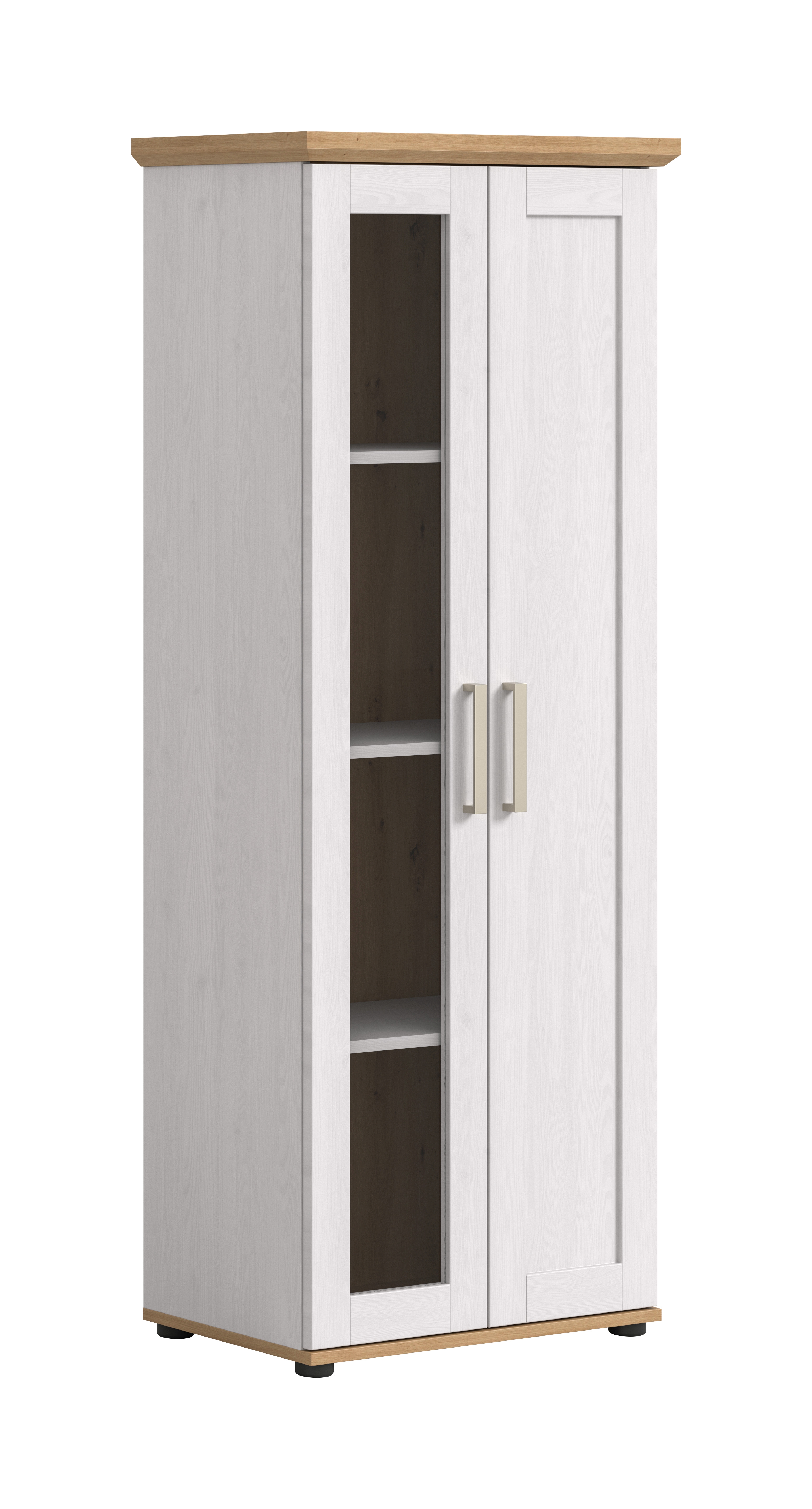 - 1 Holztür, 1 Glastür, 3 herausnehm- & höhenverstellbare Einlegeböden, 4 Fächer
