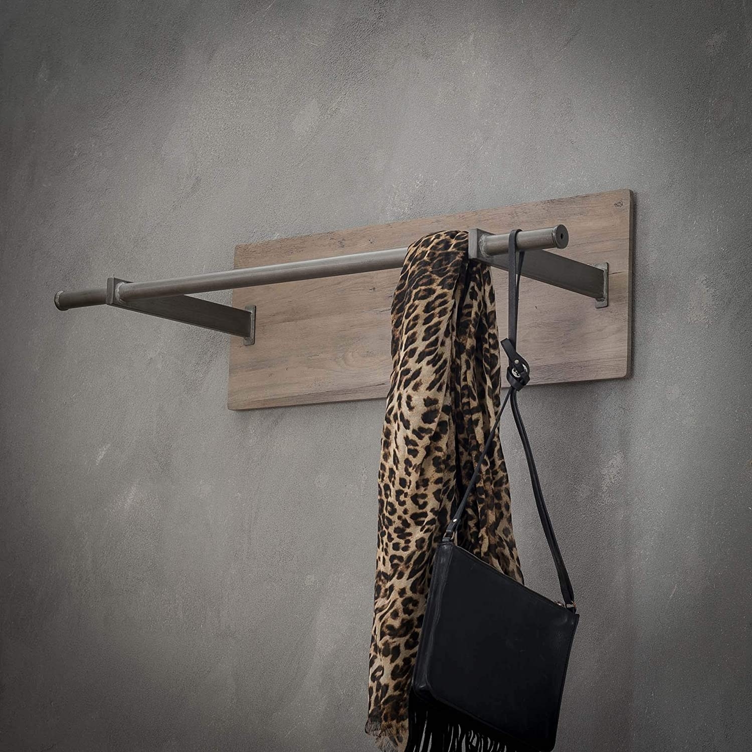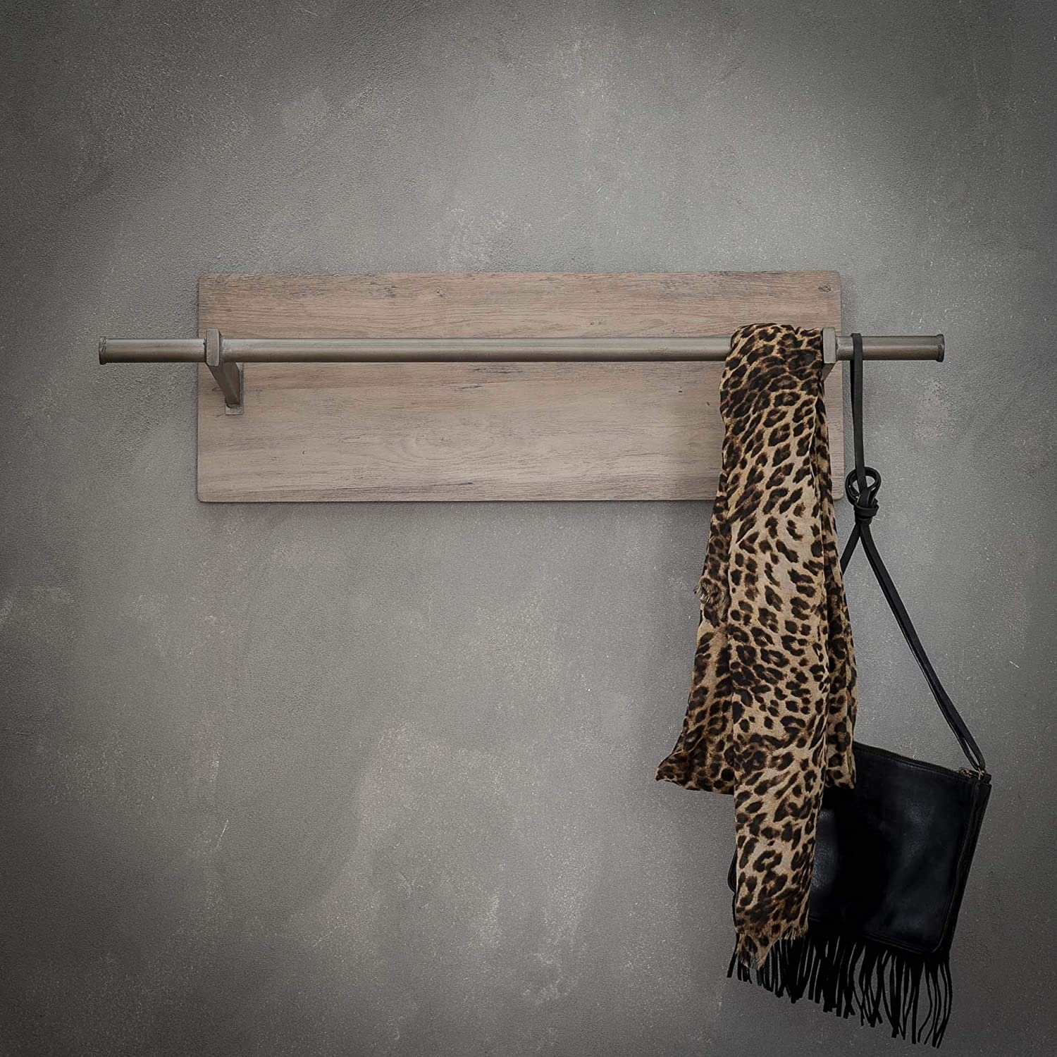 Praktischer Helfer – Im Flur möchte alles seinen festen Platz haben, damit das Ordnunghalten leicht von der Hand geht. Mit der Wandgarderobe haben Jacken & Mäntel ihren festen Verwahrungsort. Die Diele ist das Aushängeschild der Wohnung. Hier werden Gäste empfangen und der erste Eindruck des Wohnstils geprägt. Logisch, dass hier nicht auf Design verzichtet wird. Die Garderobe Stacker besteht aus MDF in Eiche Holznachbildung und einer Stange aus pulverbeschichtetem Stahl. Eine schlichte Optik, die sich optimal in viele Einrichtungen einfügt. Die Rückwand in Eichenoptik harmoniert ideal mit der kühlen Stahlstange, so werden warme und kühle Materialien optimal miteinander verbunden.