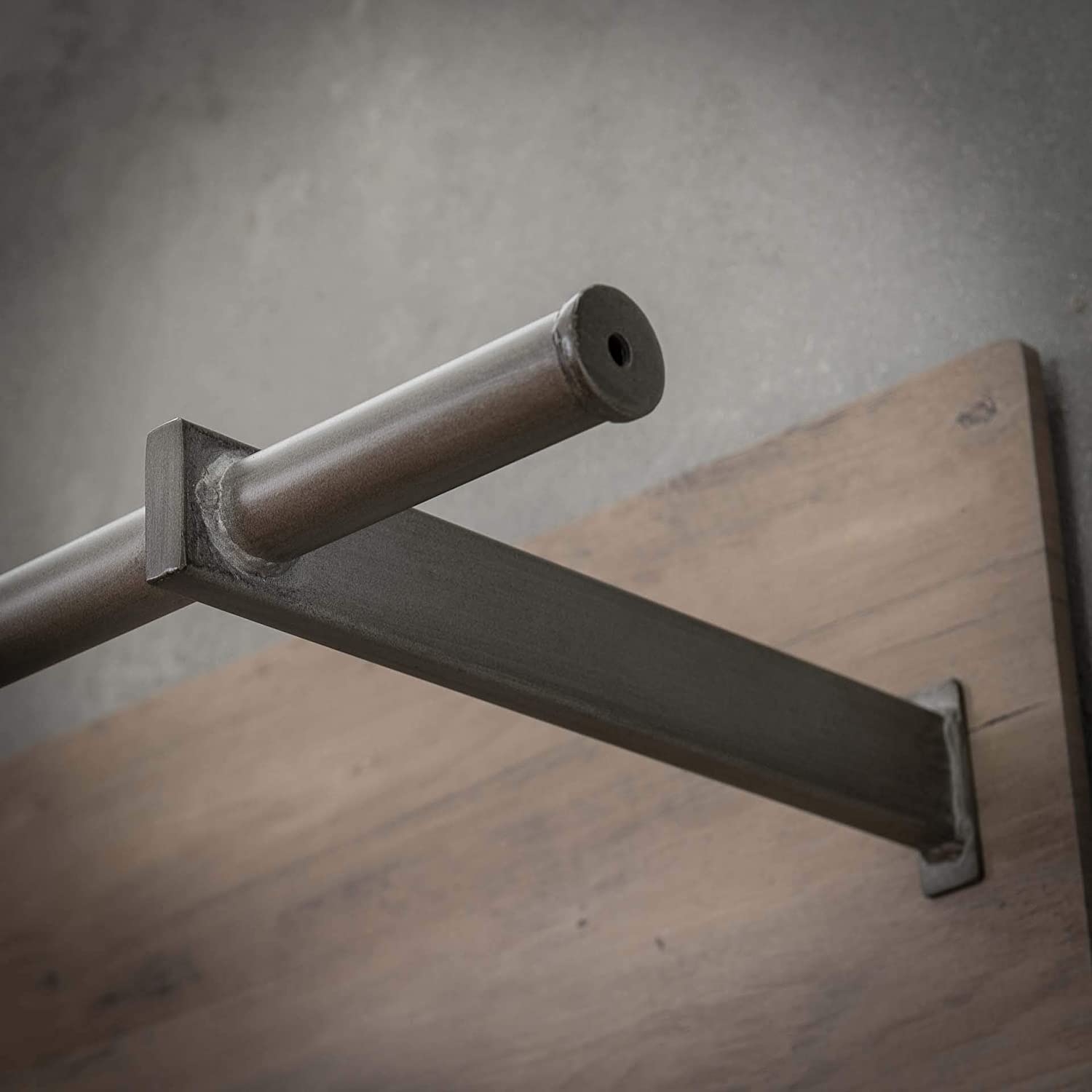 MDF (Mitteldichte Holzfaserplatte) in Eiche Holznachbildung kombiniert mit einer Kleiderstange aus pulverbeschichtetem Stahl