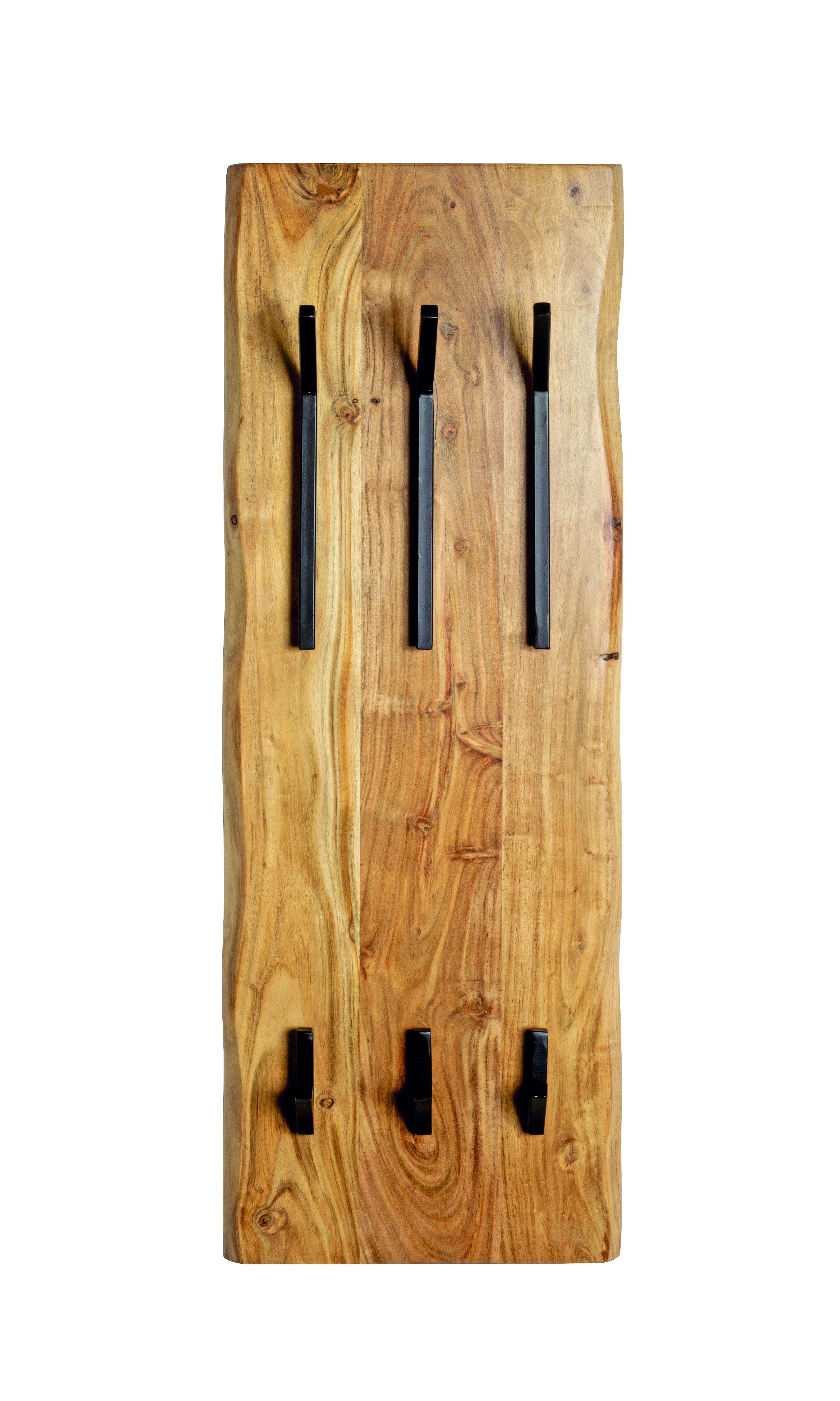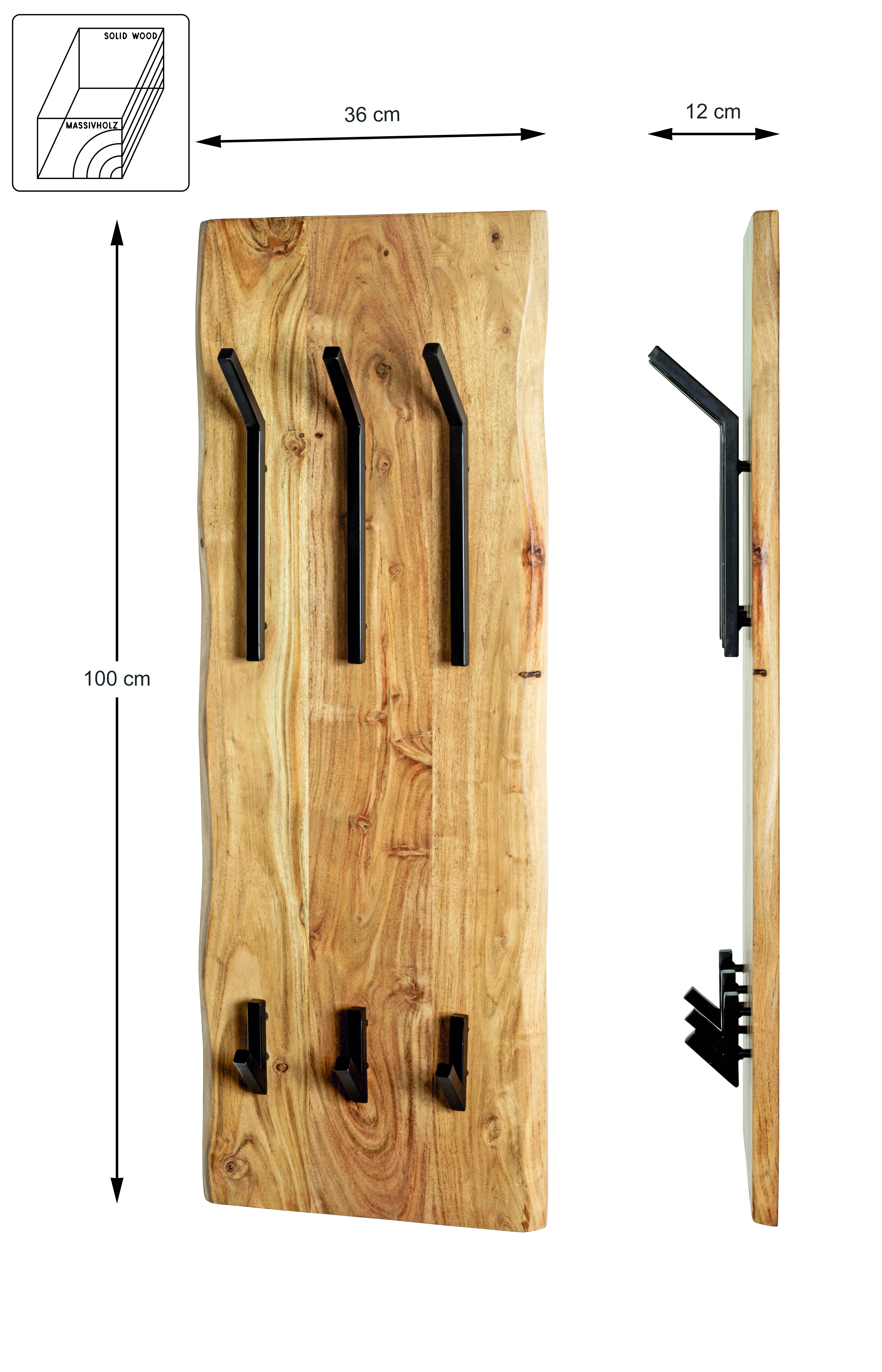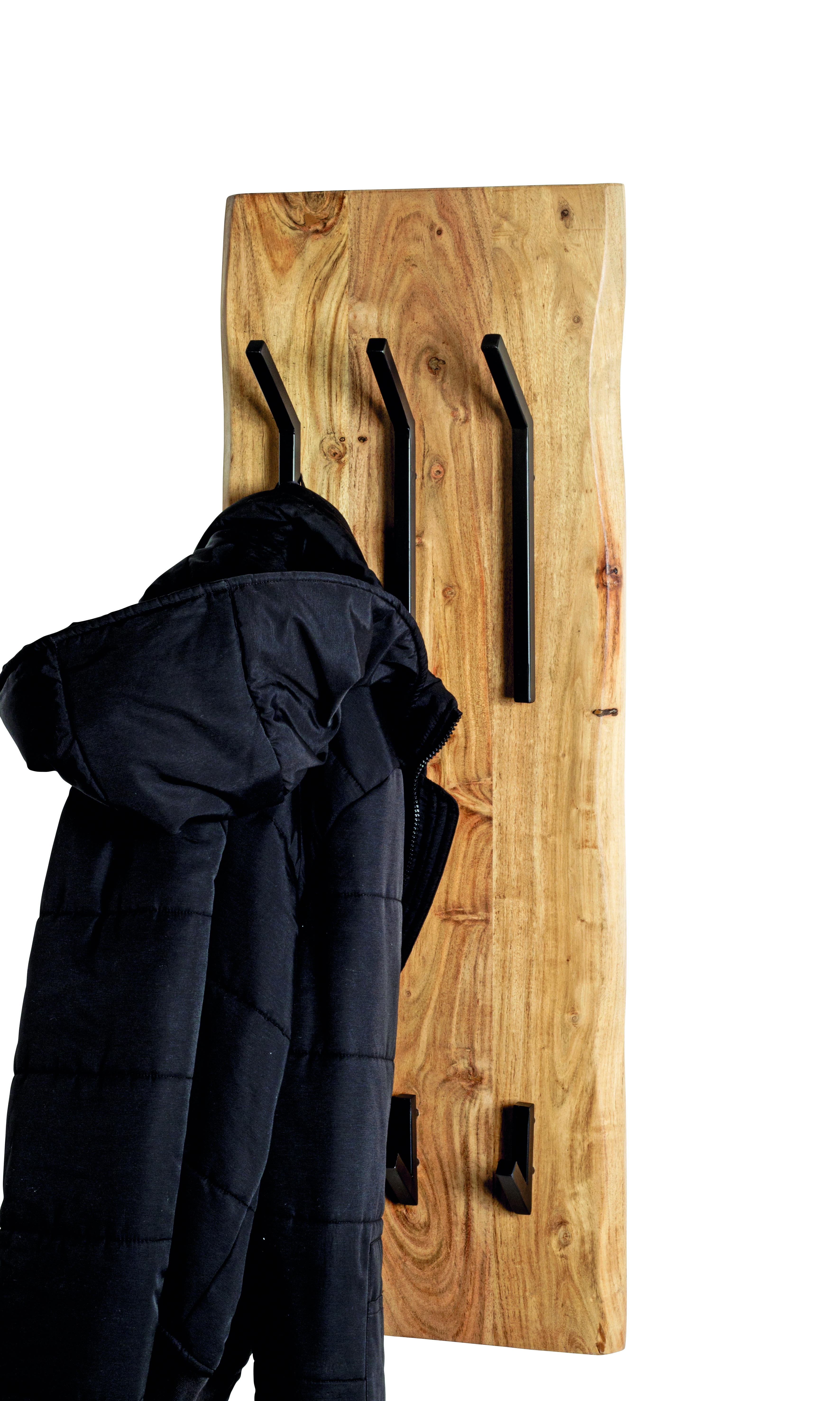 aus Massivholz Akazie naturbelassen mit Haken aus Metall in schwarz pulverbeschichtet