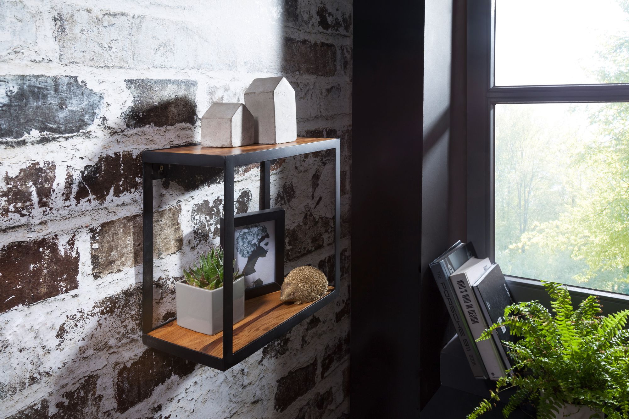 - MATERIAL & FARBE ✔ Das Wandregal besteht aus Sheesham Massivholz, das Gestell aus schwarz lackiertem Metall. Bei dem Holz handelt es sich um FSC® zertifizierte Ware aus verantwortungsvollen Quellen. Es wird besonderen Wert auf die Nachhaltigkeit bei den verwendeten Materialien gelegt.