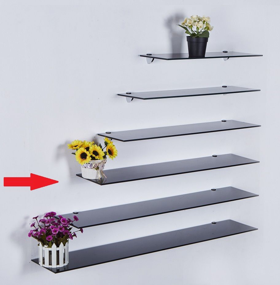 Sicherheitsglas in schwarz kombiniert mit 2 Halterungen aus Chrom