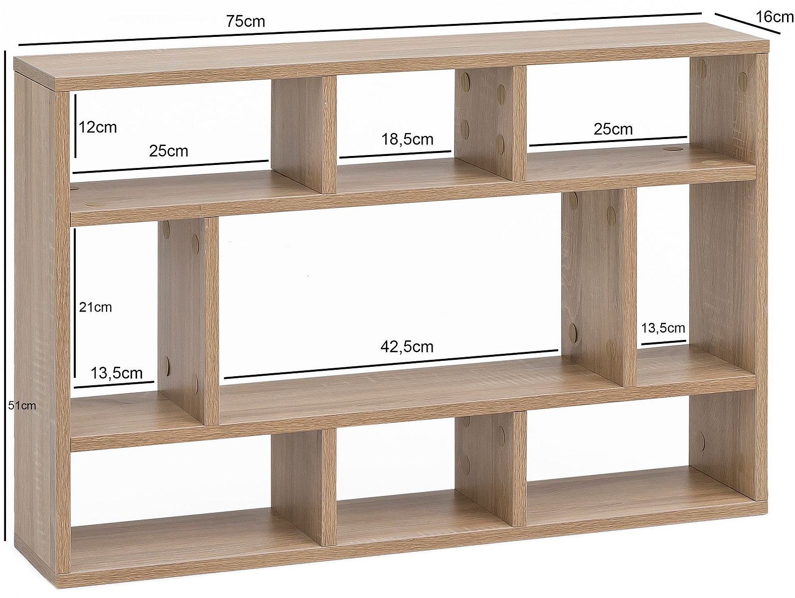 - Neun Regalfächer in verschiedenen Größen