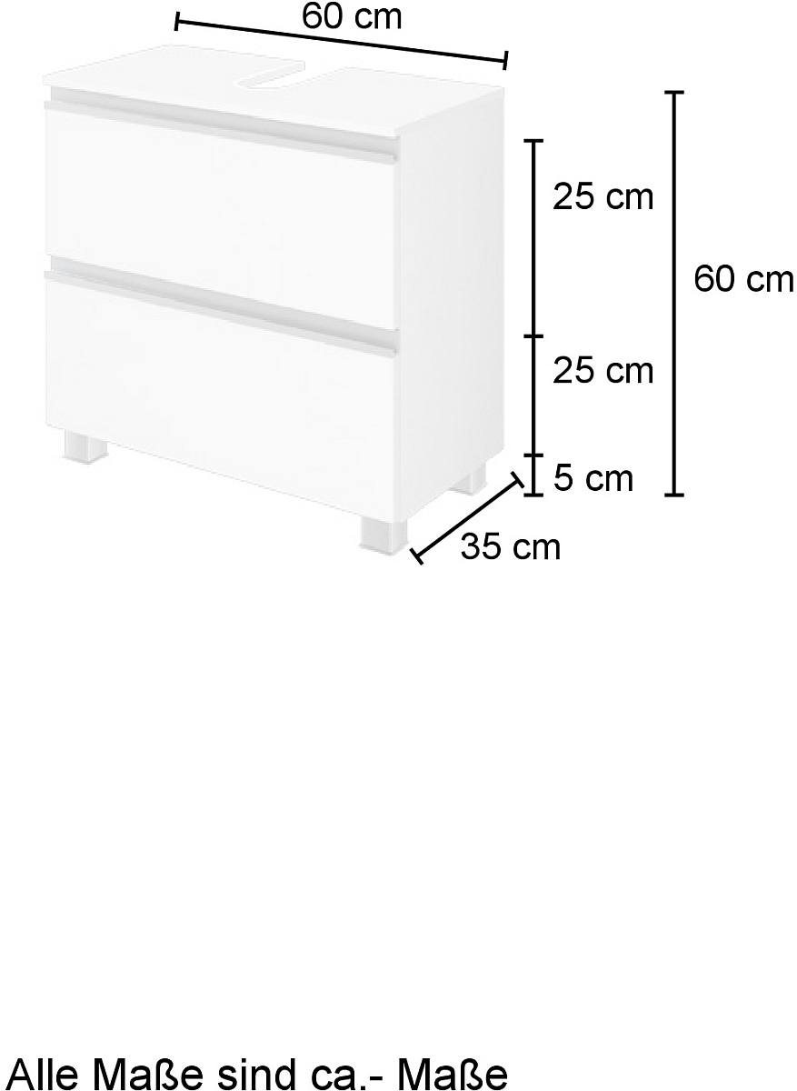 | Waschbeckenunterschrank | 60 | 54 (Höhe ohne Möbelfüße) | 35 |
