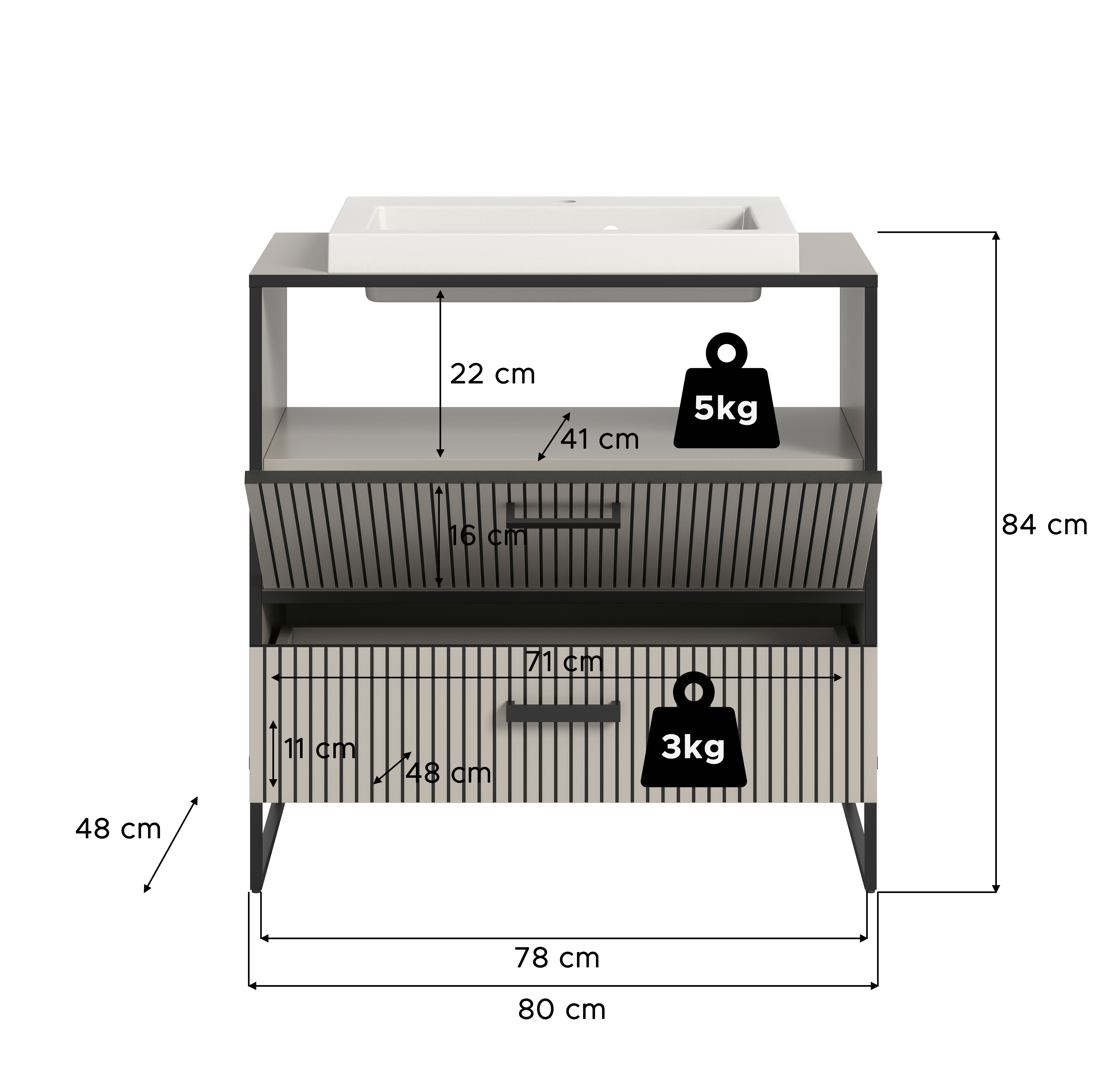 | Waschbeckenunterschrank mit Waschbecken | 80 | 84 | 48 |
