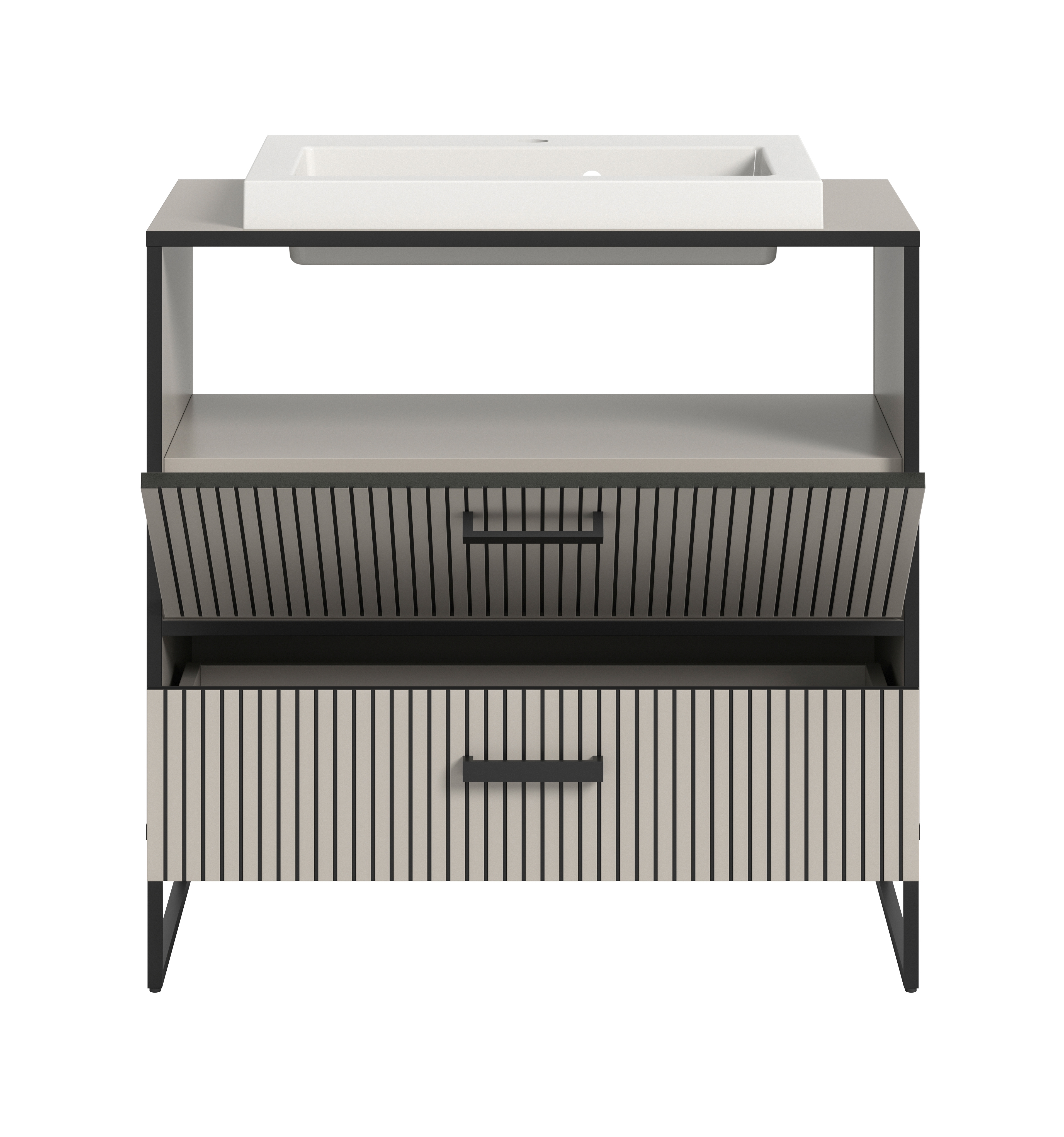 - hochwertig verarbeitete, pflegeleichte Oberfläche, mit Front in trendiger Rillenoptik