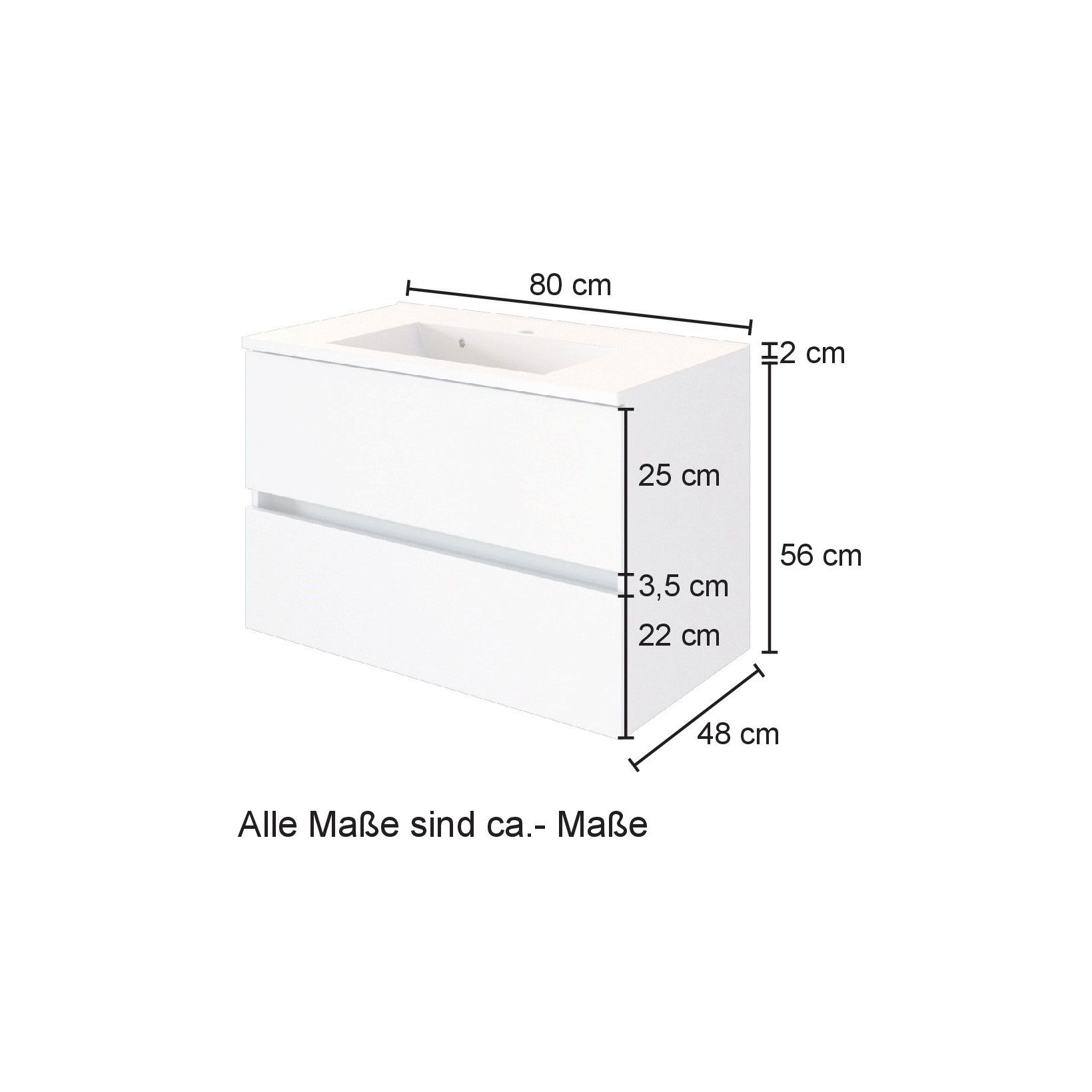 | Waschbeckenunterschrank mit Waschbecken | 80 | 56 | 47 |