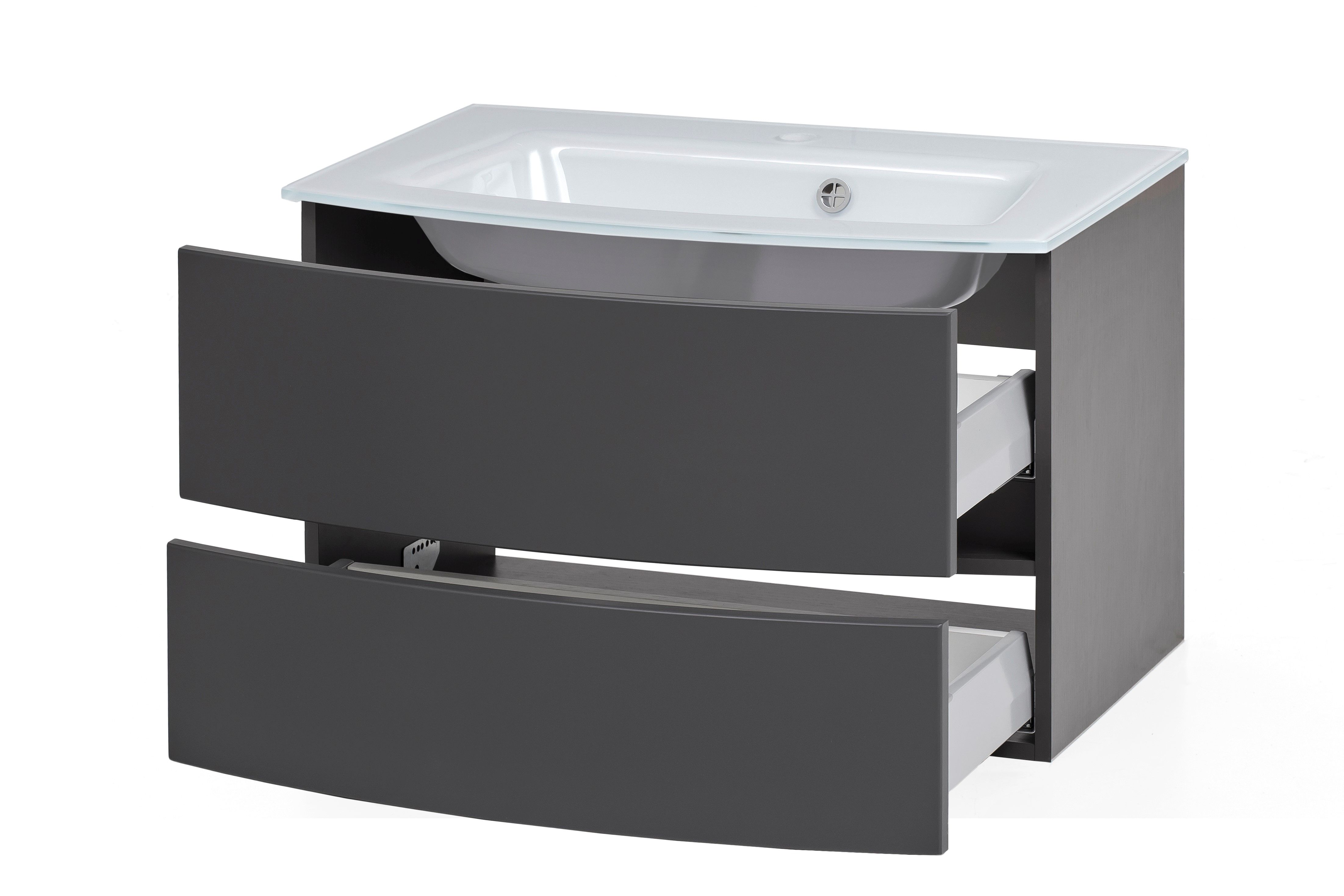 1 Waschbeckenunterschrank mit 2 Metall-Vollauszügen mit Softclose-Funktion, inklusiv gebogenen Fronten