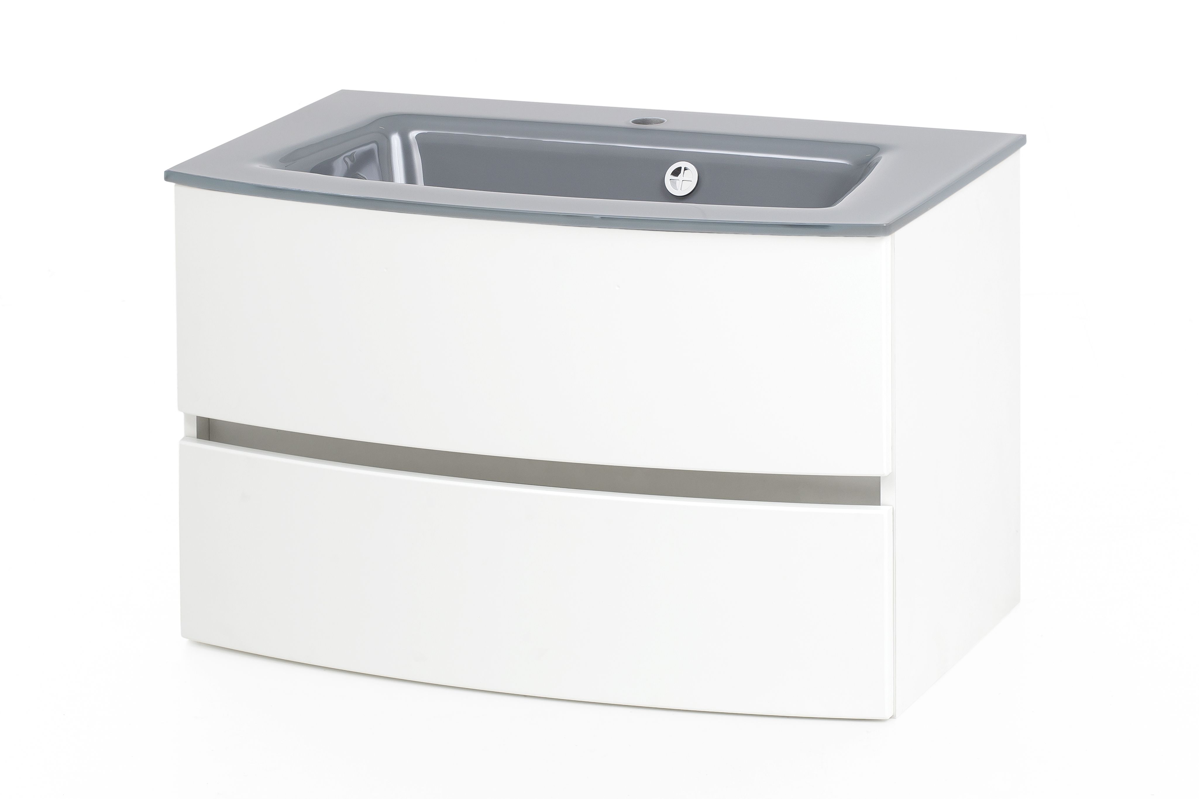 1 Waschbeckenunterschrank mit 2 Metall-Vollauszügen mit Softclose-Funktion, inklusiv gebogenen Fronten