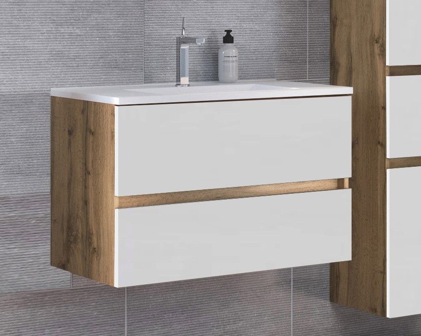1 Waschbeckenunterschrank mit 2 Metallauszügen mit Softclose-Funktion und Reling, grifflos