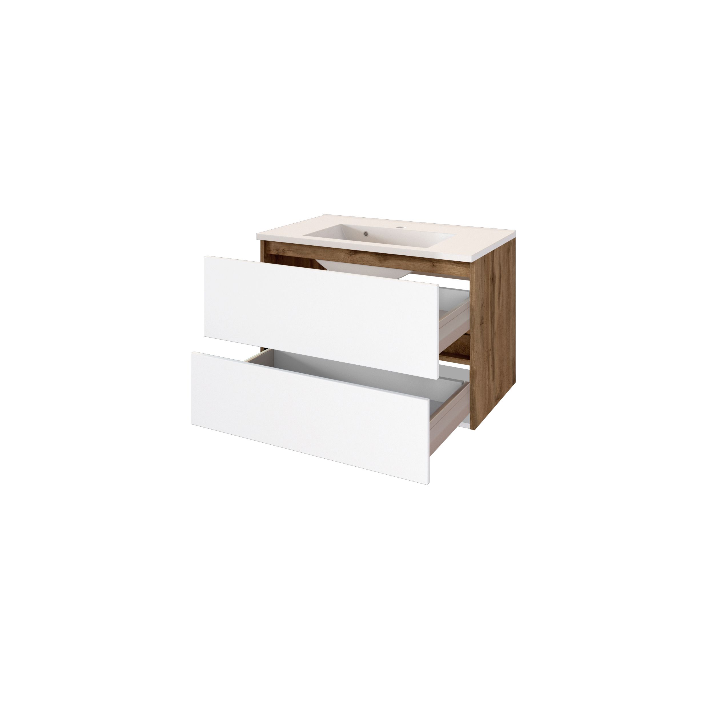 1 Waschbeckenunterschrank mit 2 Metallauszügen mit Softclose-Funktion und Reling, grifflos