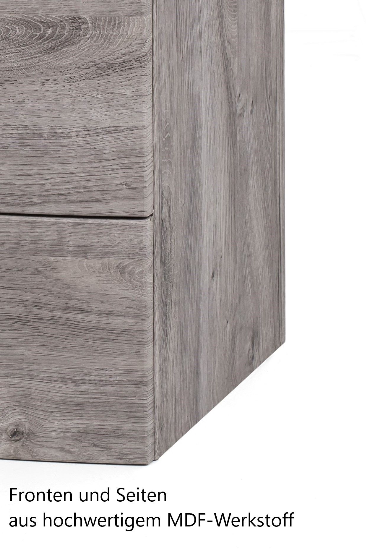 Front und Korpus: MDF (Mitteldichte Holzfaserplatte) in Eiche Ribbeck Holznachbildung