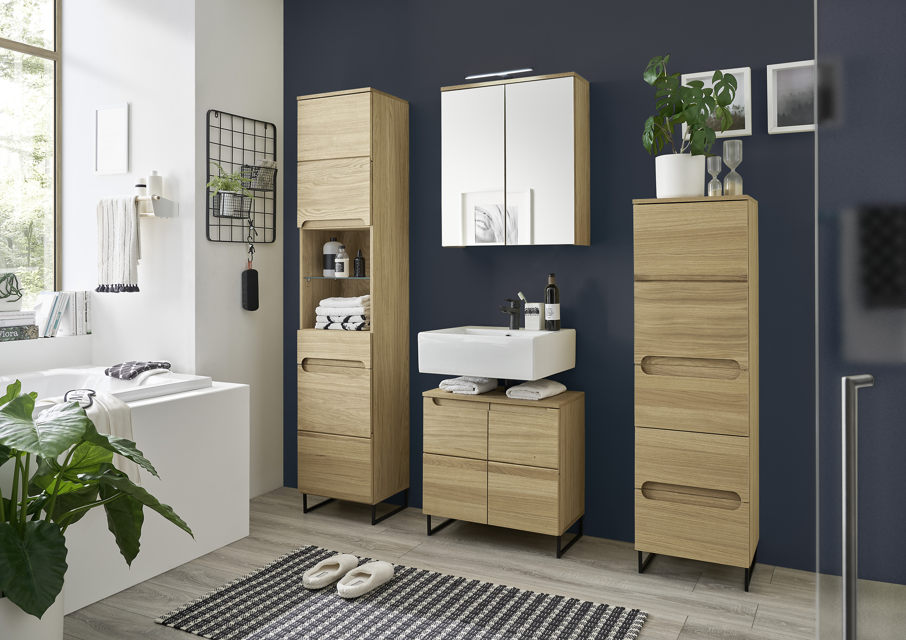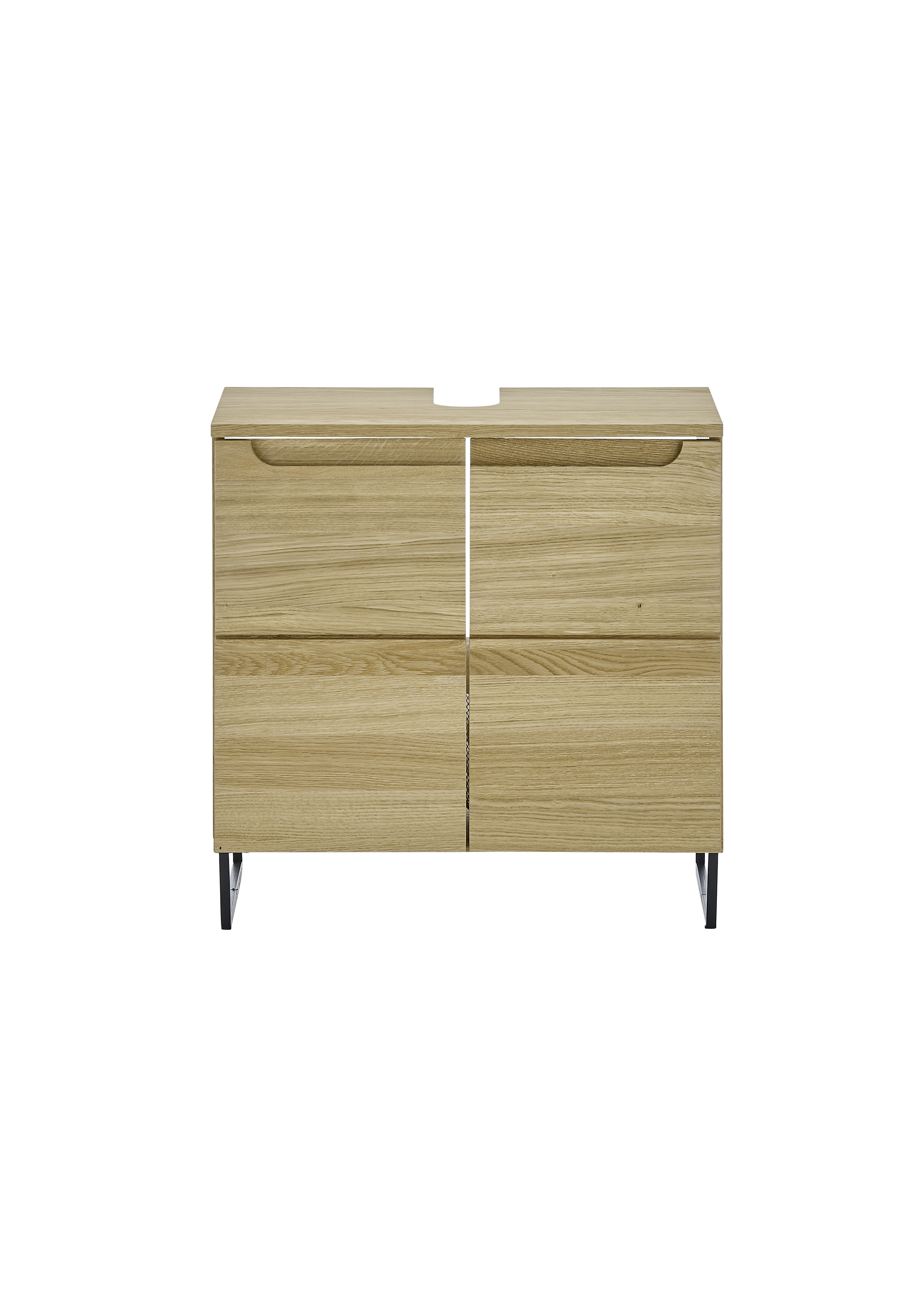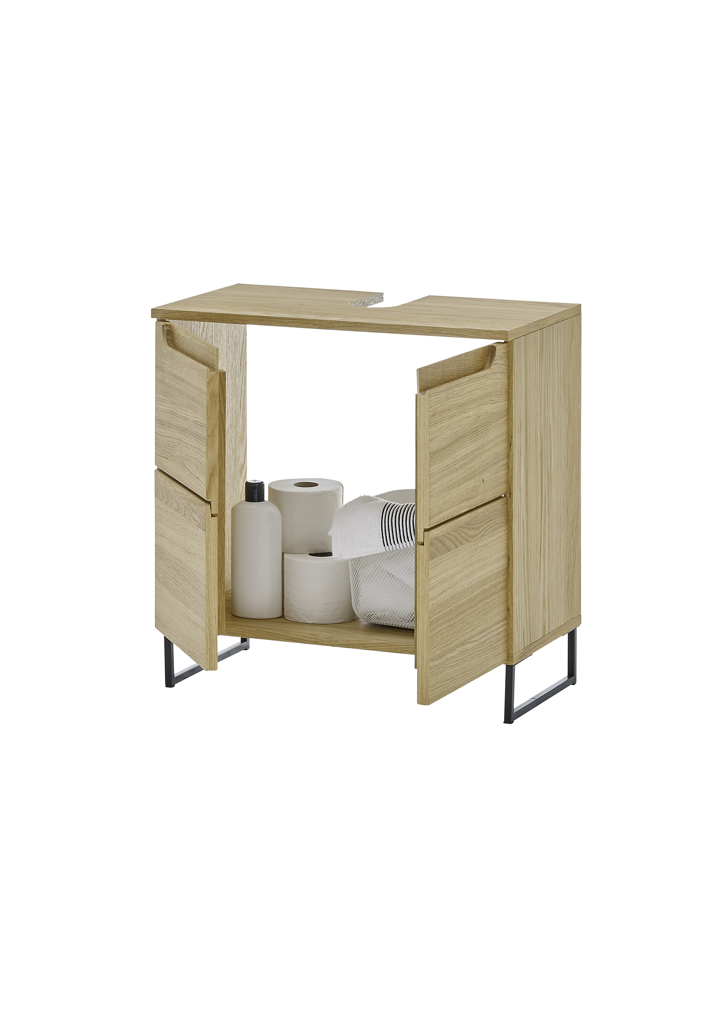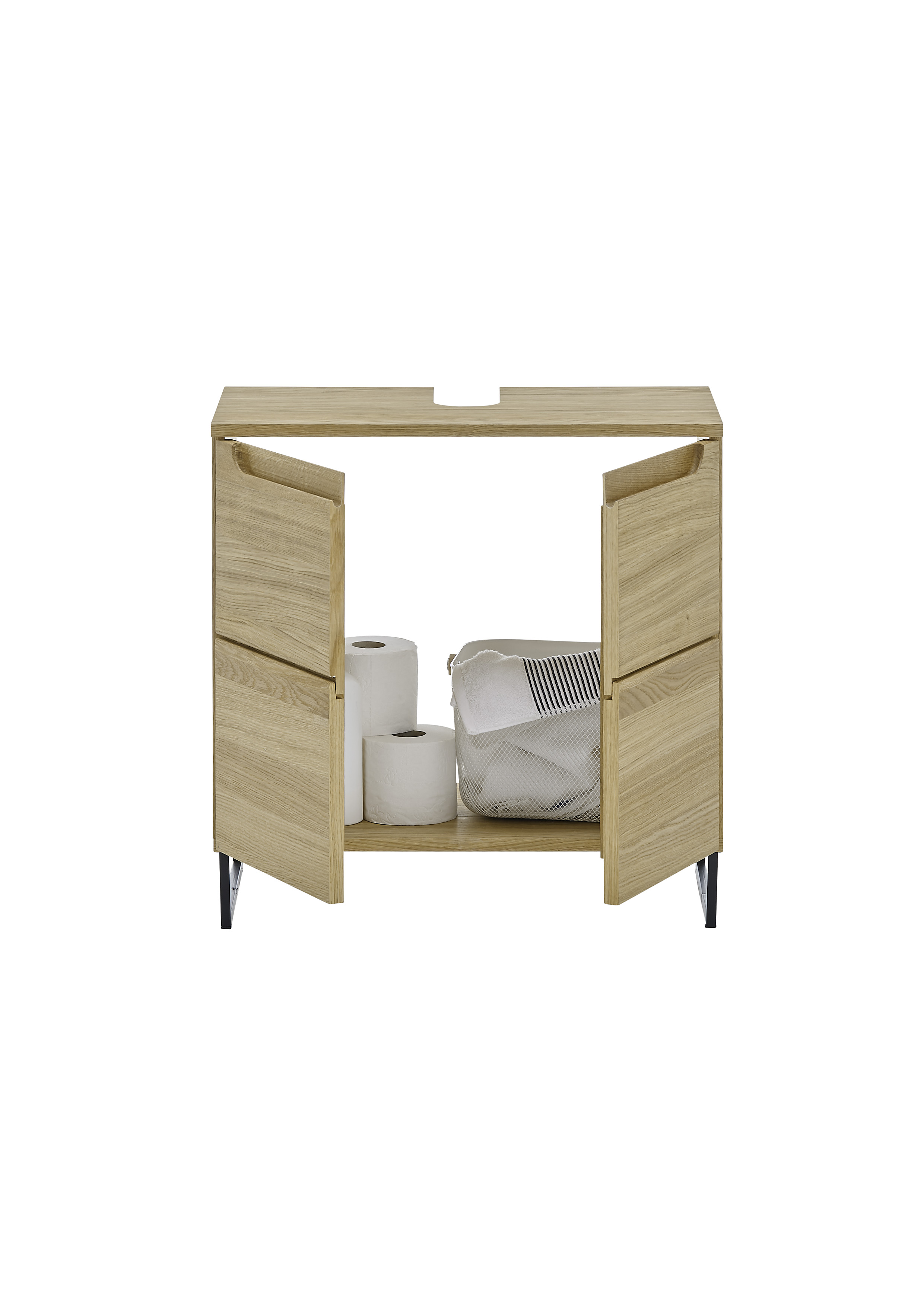 Dank integriertem Siphonausschnitt eignet sich der Unterschrank ideal für den Einsatz unter dem Waschbecken und bietet praktischen Stauraum für Badutensilien.