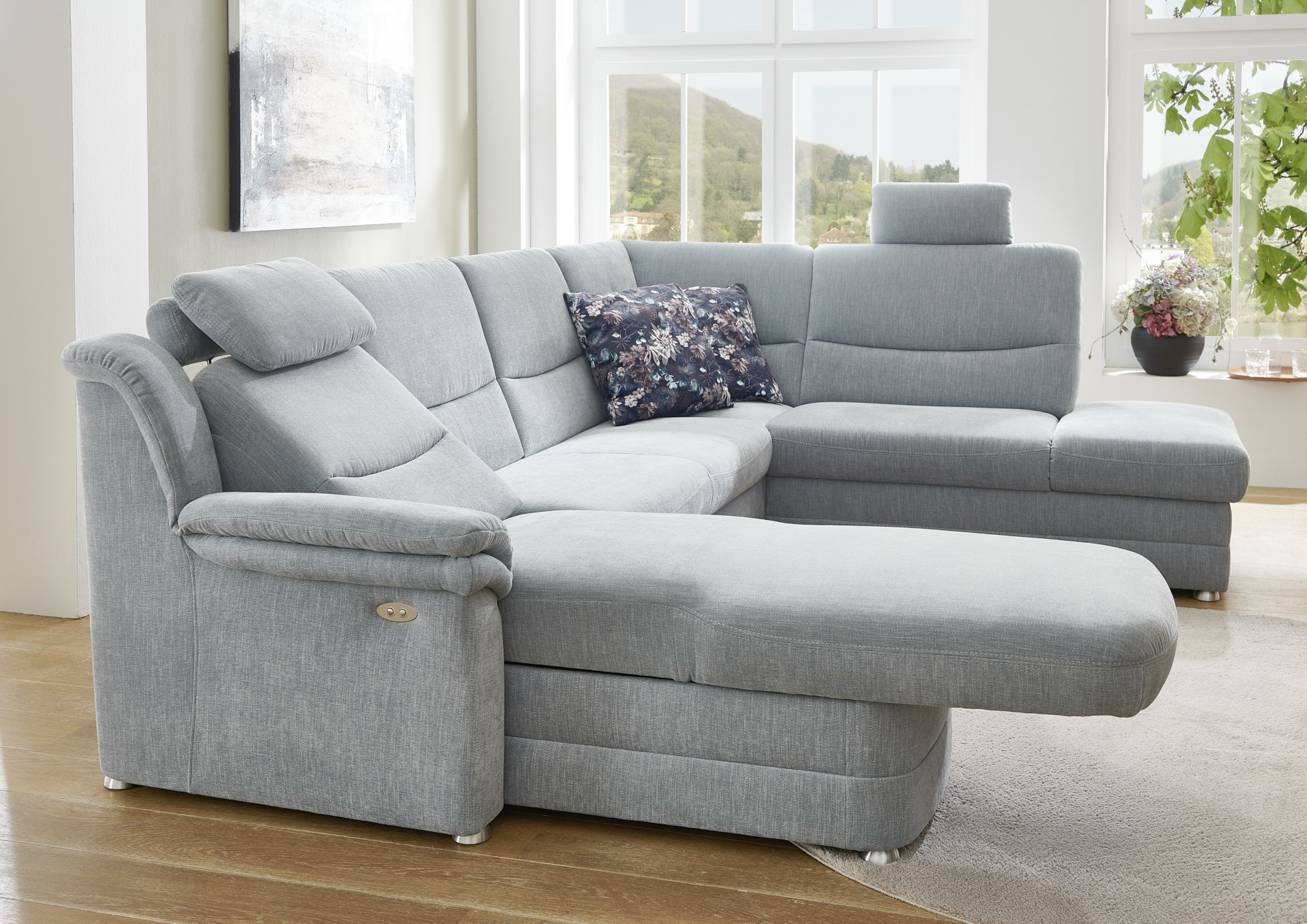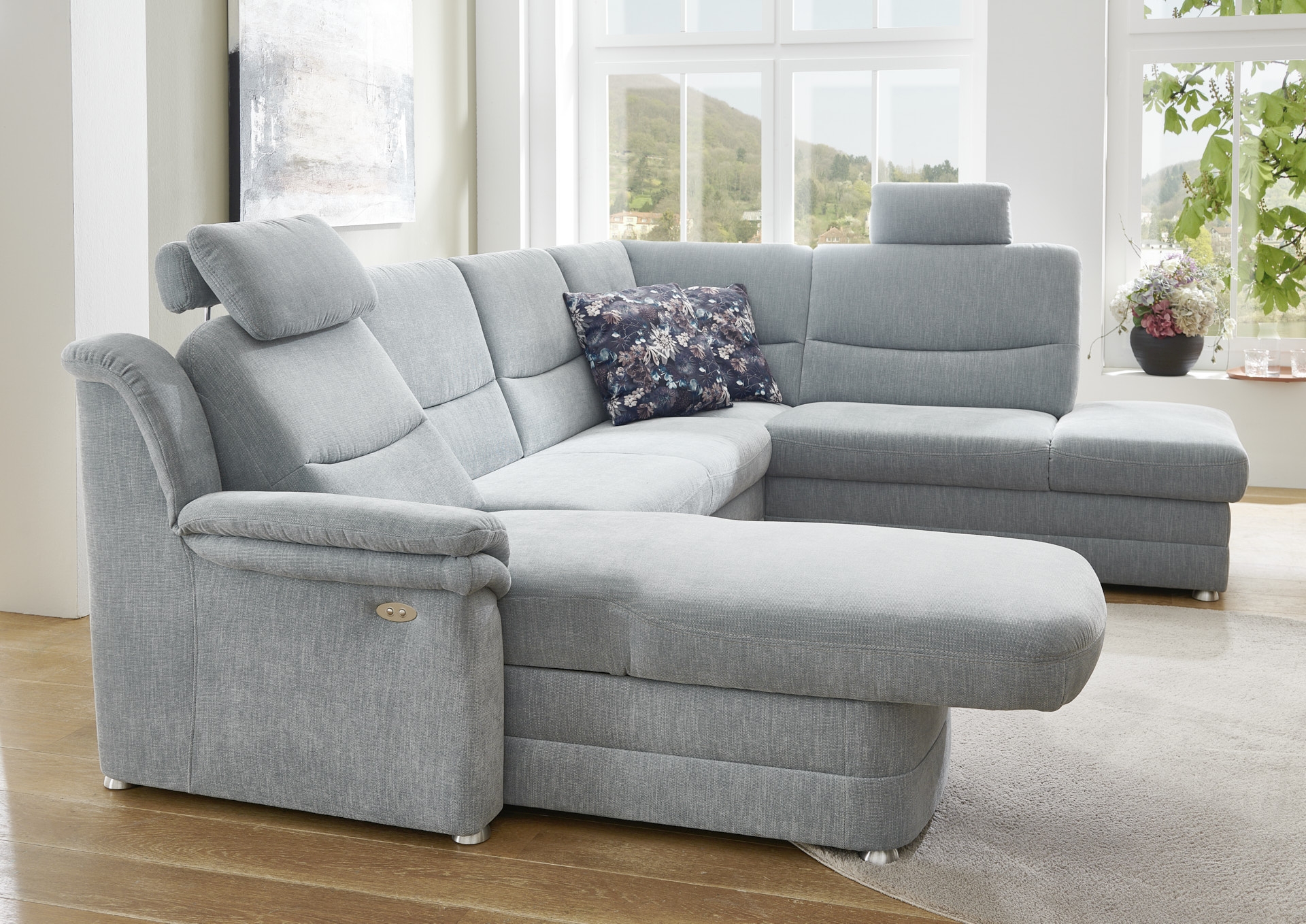 1 Canape mit Motor und Armlehne links; Bedienung per Taste; Tiefe verstellbar bis Liegeposition ca. 199 cm