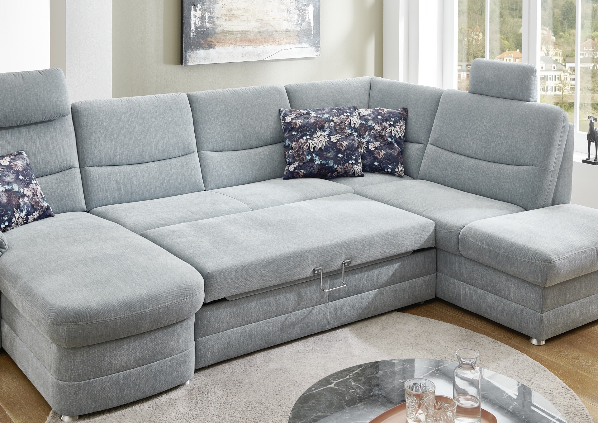 | Ausstattung Polster: | Ottomane links, Rücken echt, inkl. Bettkasten | ||