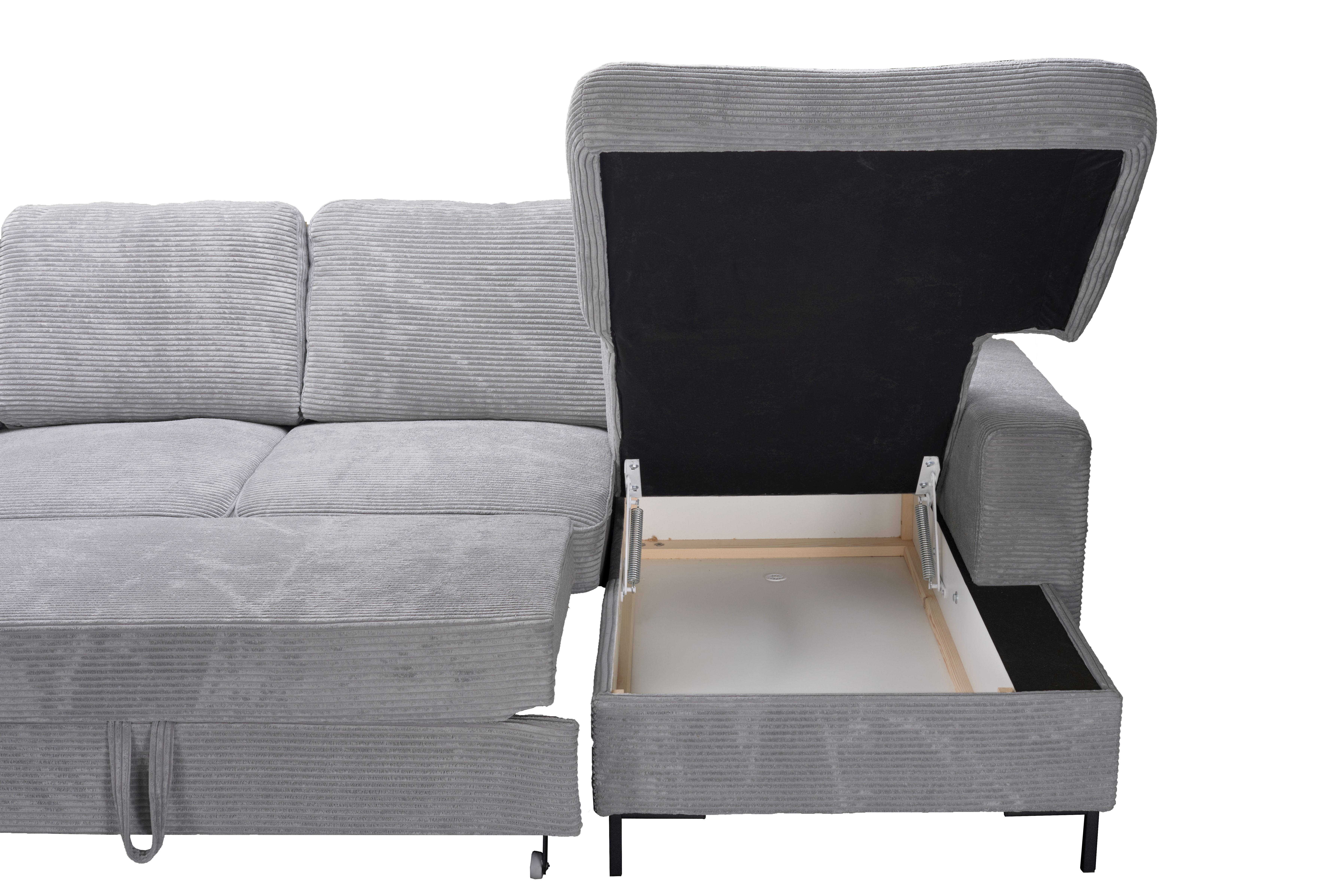 | Ausstattung Polster: | Ottomane rechts, inkl. Bettkasten | ||