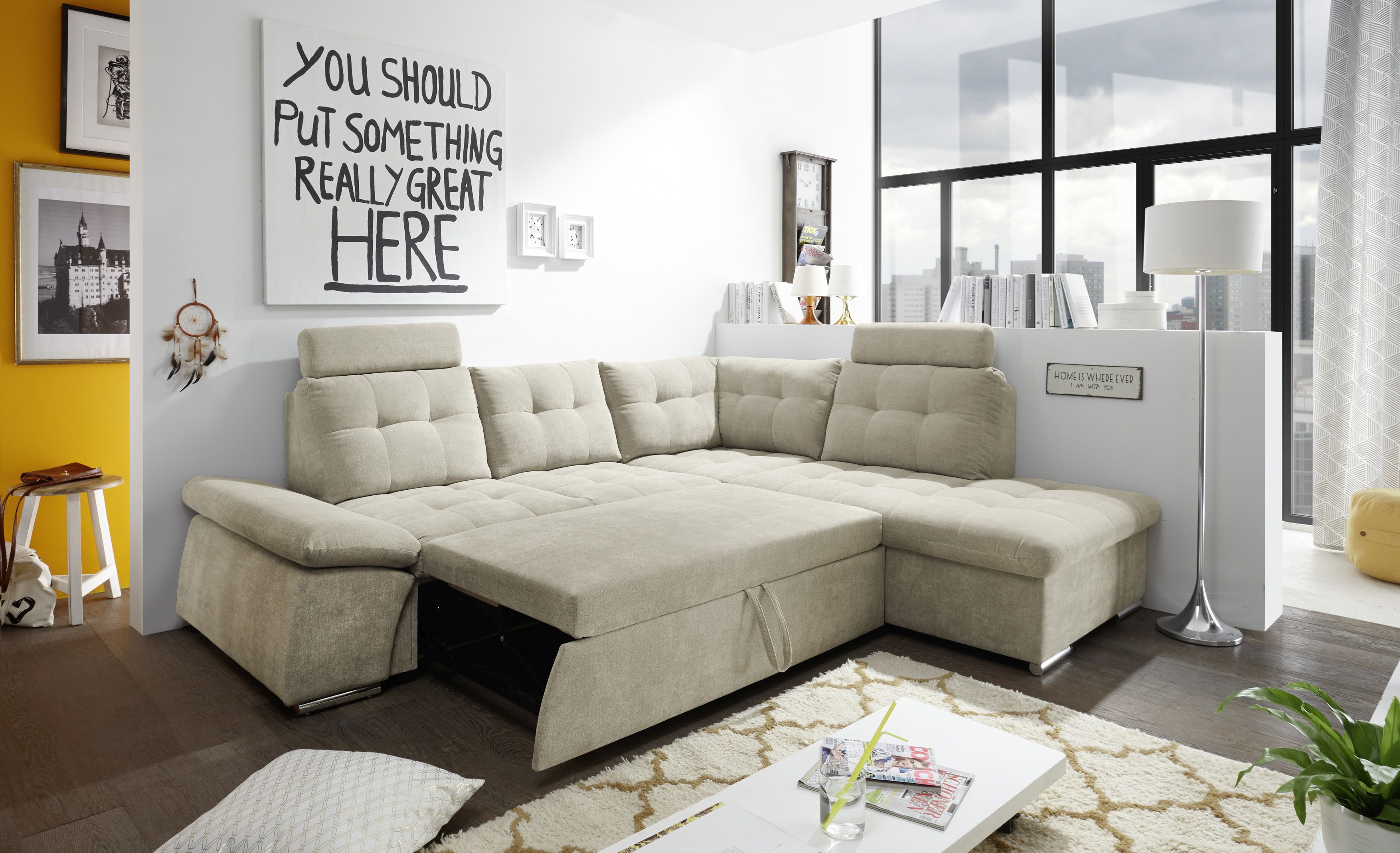 | Ausstattung Polster: | Kopfstützen, Ottomane rechts, Rücken echt, inkl. Kissen | ||