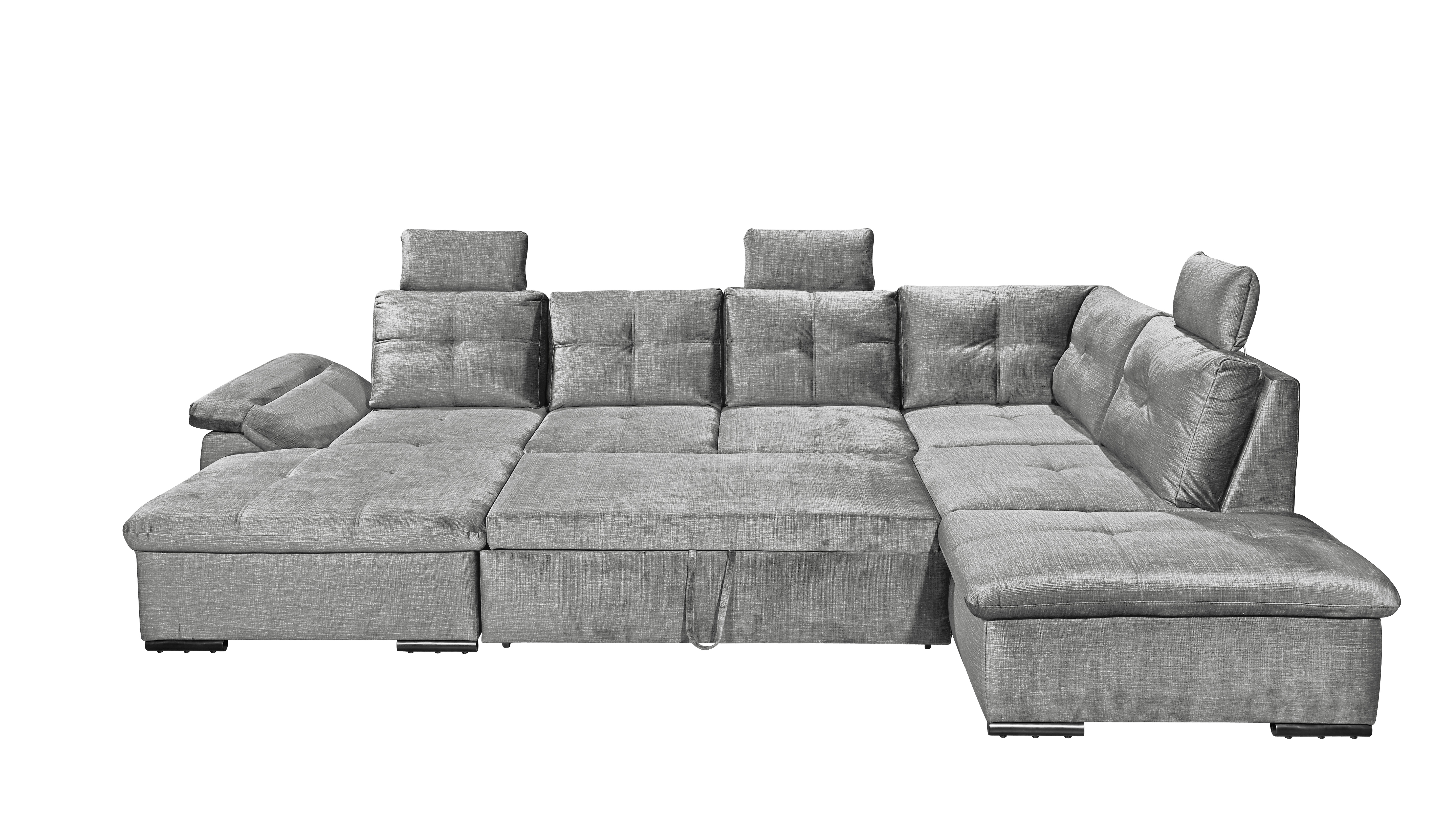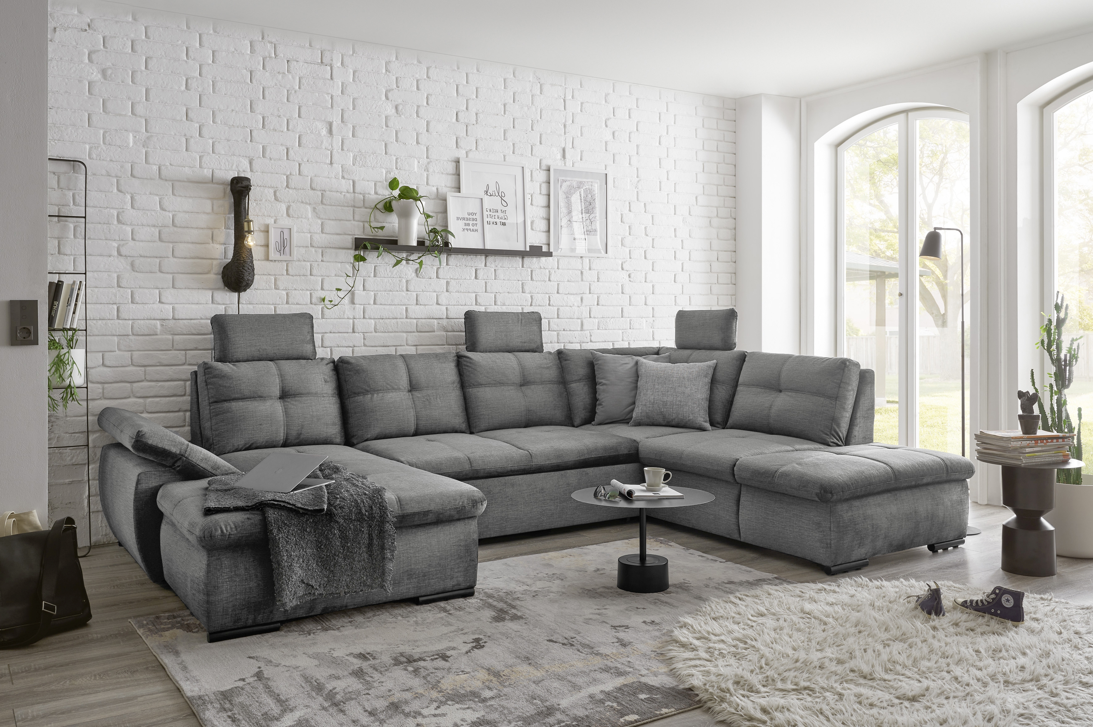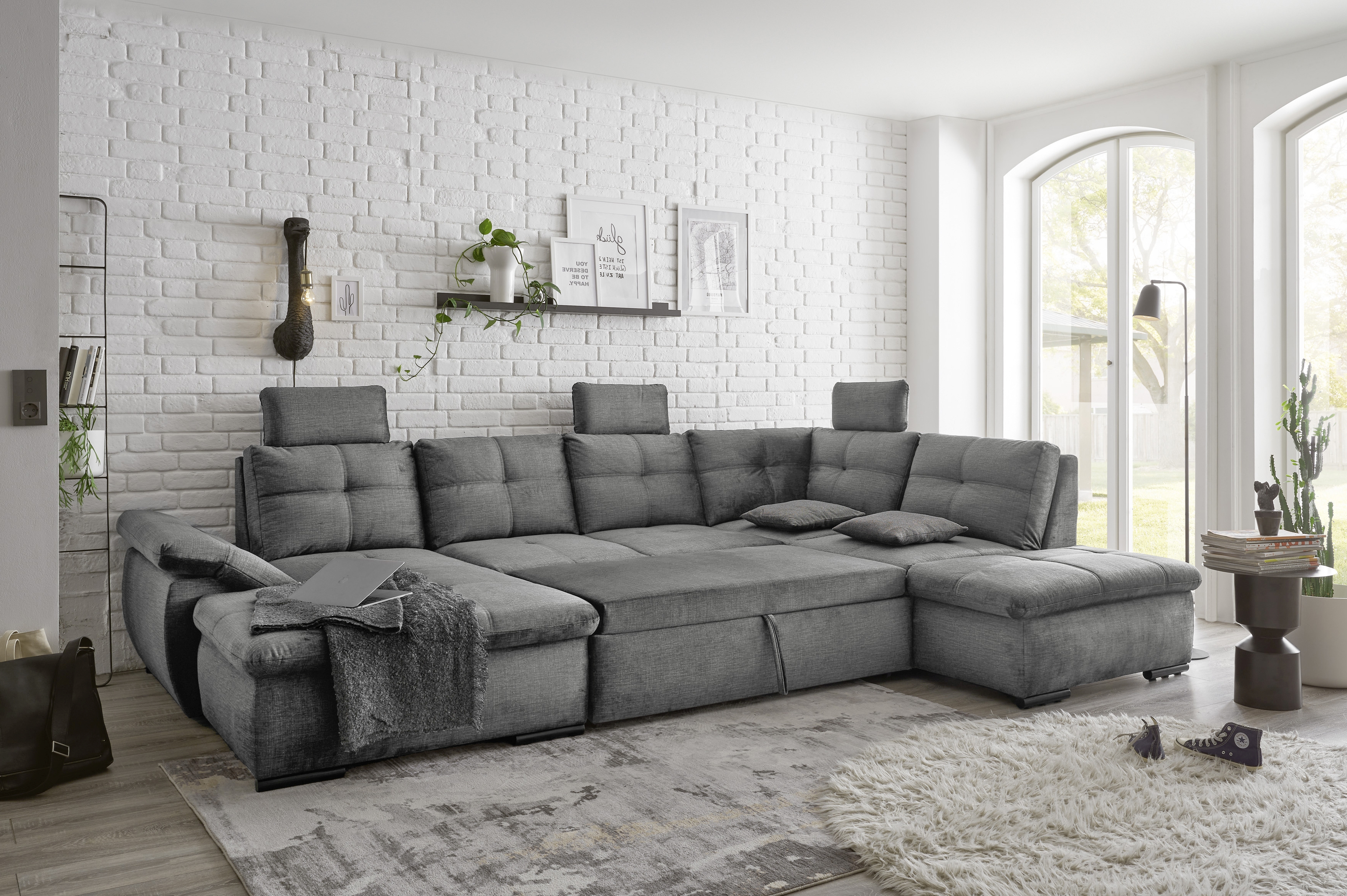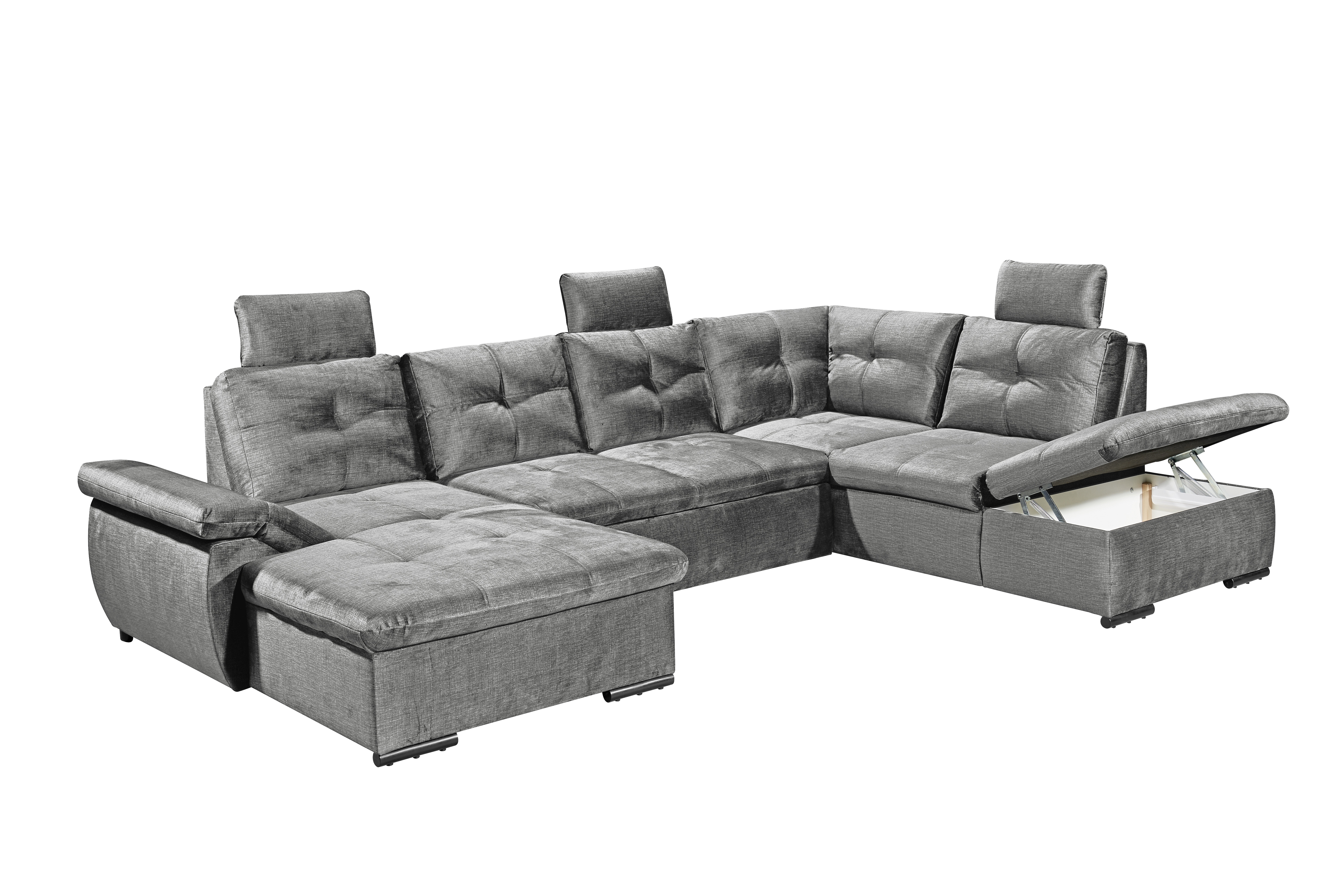 | Ausstattung Polster: | Kopfstützen, Ottomane rechts, Rücken echt, inkl. Bettkasten | ||